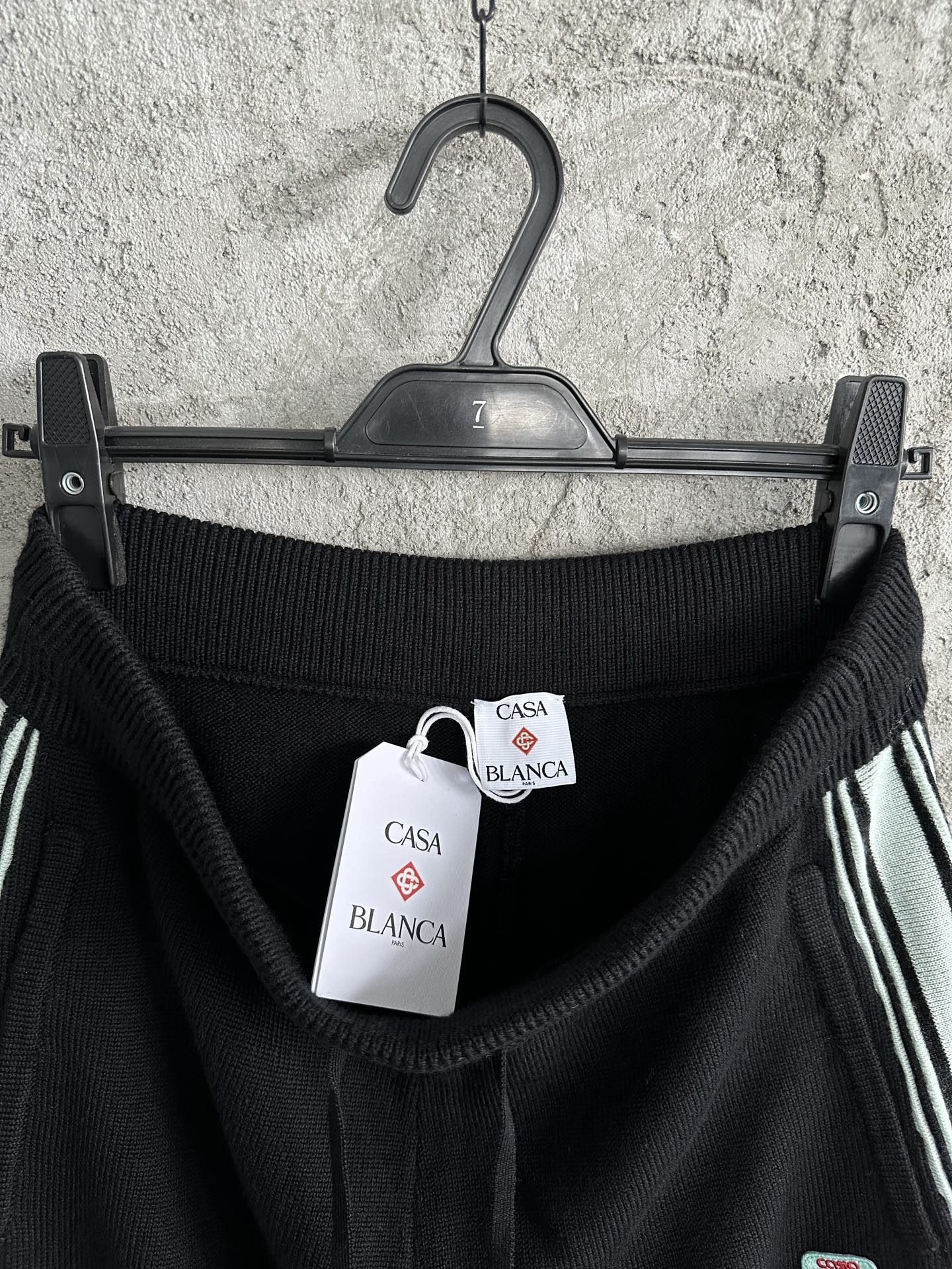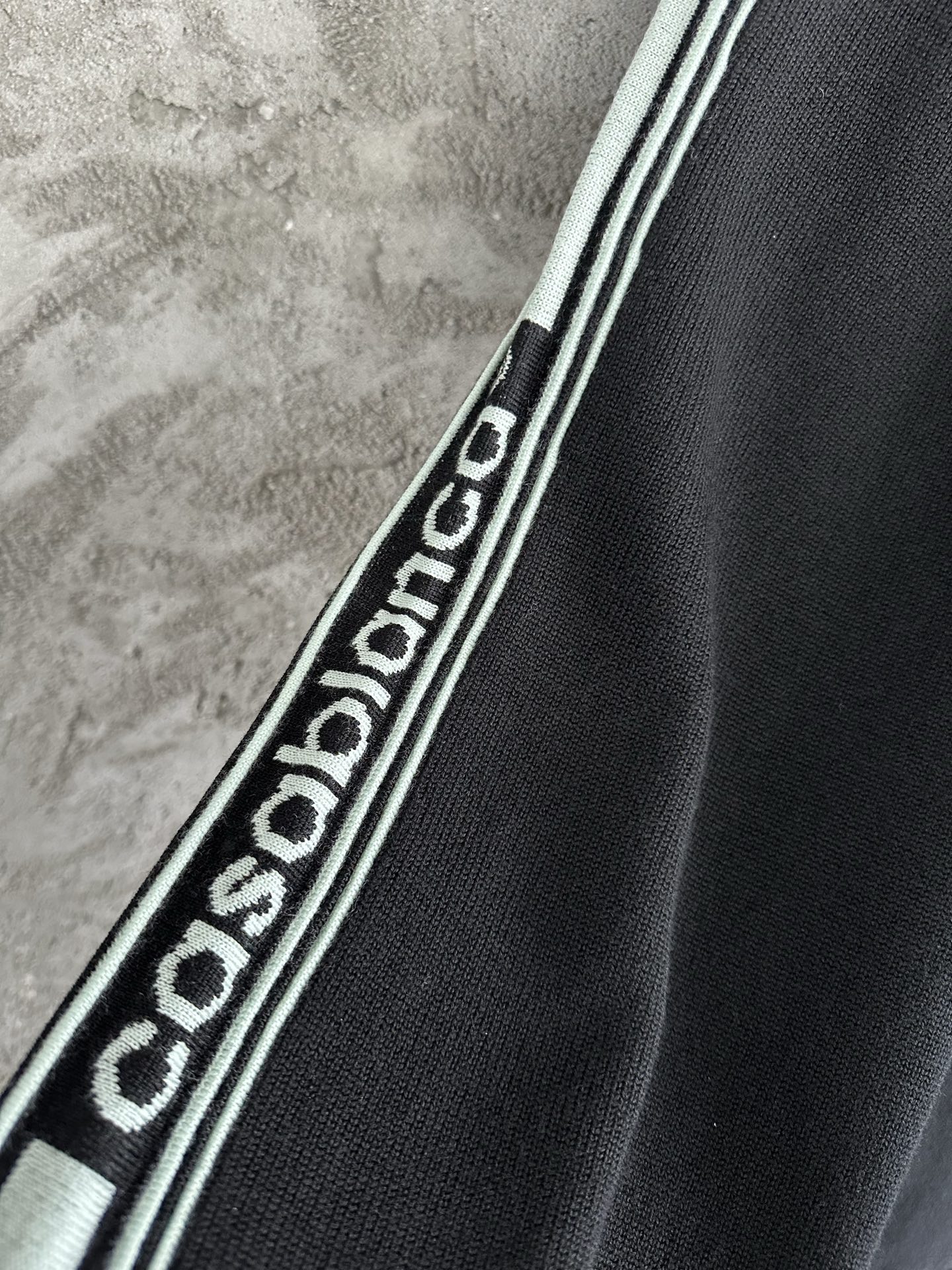 CASA BLANCA 2025SS side-striped knit wool trousers. Custom pure wool fabric with high-density knitting on imported machines. Custom-made embroidered badges.
