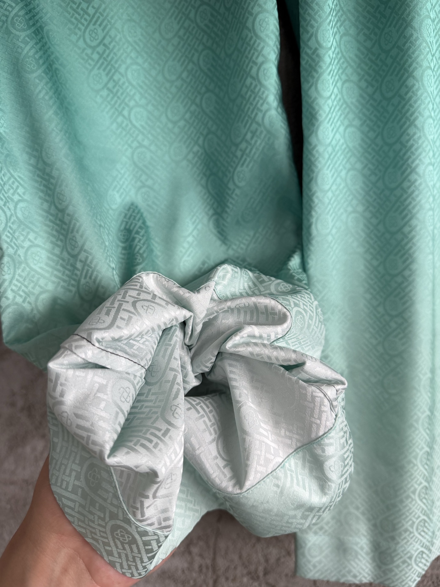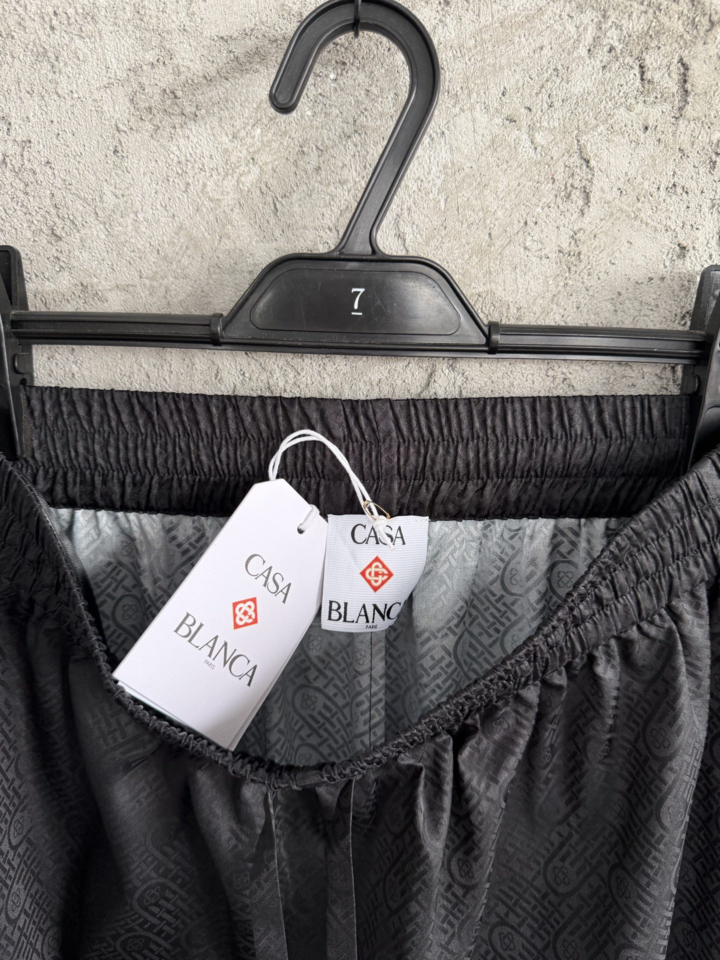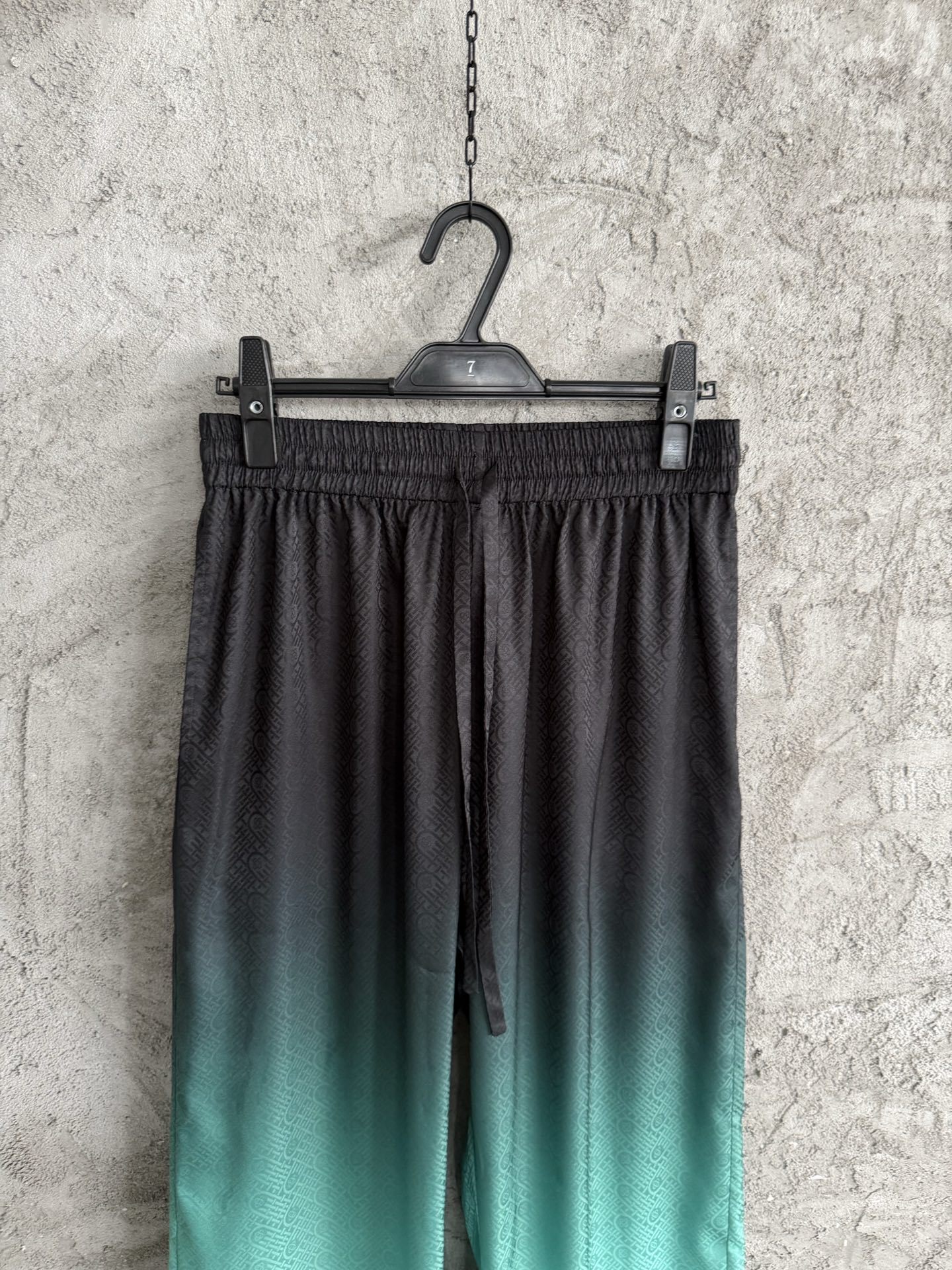 CASABLANCA 2026SS Gradient Jacquard Silk Trousers. Custom silk fabric, imported HD digital printing, laser cutting. Dry clean recommended. Size: S, M, L, XL.