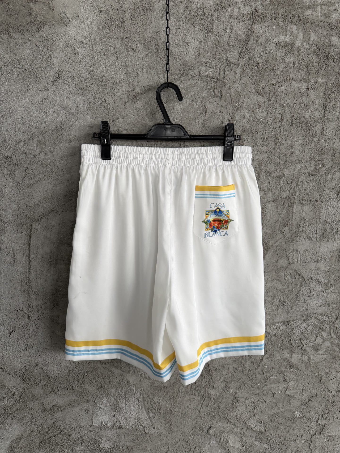 CASABLANCA 2026SS Planet Pattern Silk Shorts. Custom silk fabric, imported high-definition digital direct spray printing, laser positioning cutting. Recommend dry clean or hand wash. Size: S, M, L, XL. Ready to ship.