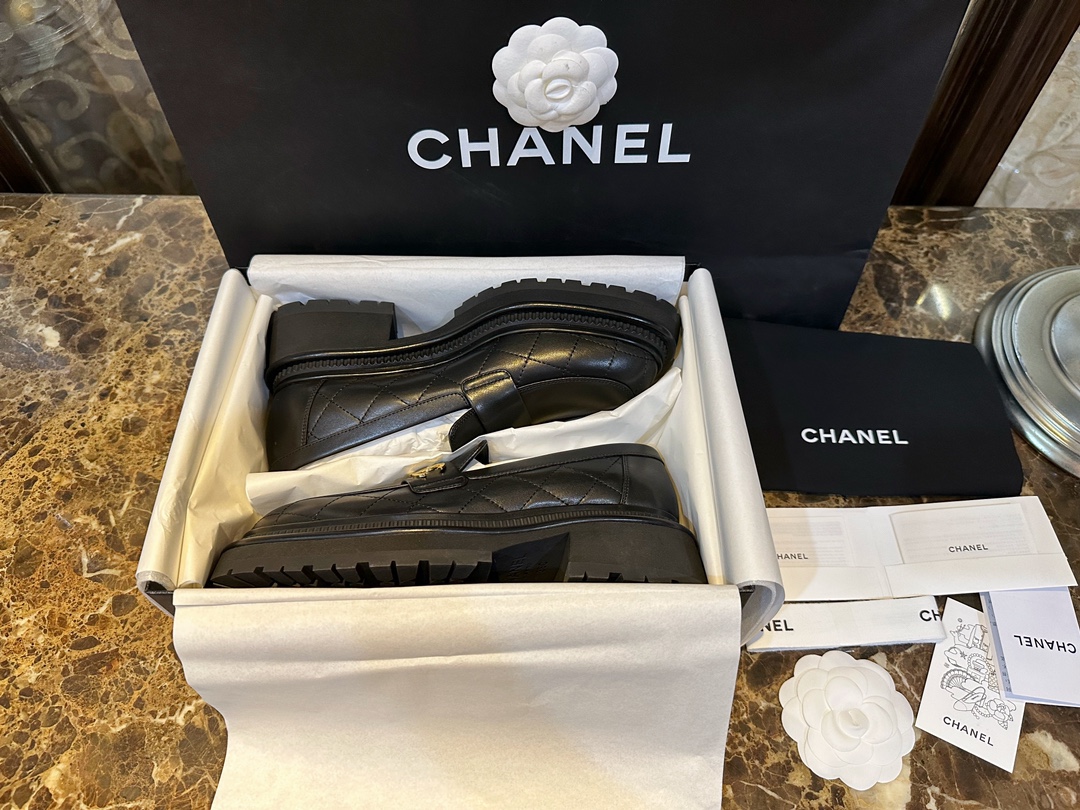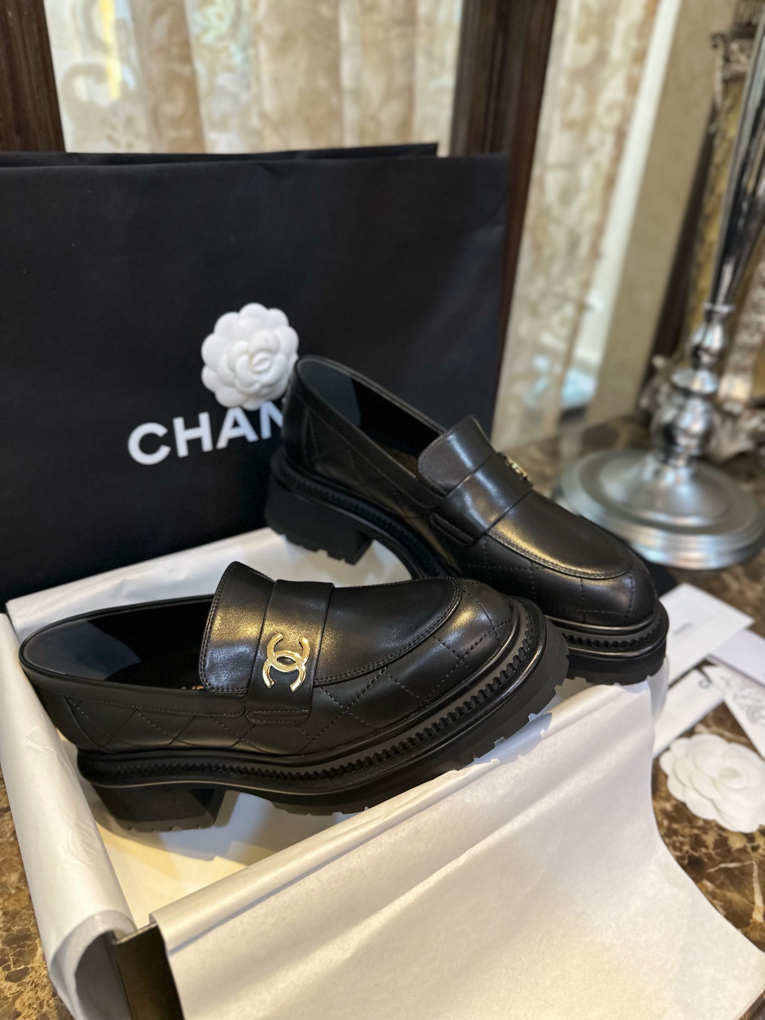 Chanel 23A Vintage Platform Loafers. Retro-inspired platform loafers from the iconic 23A collection. Premium leather with signature Chanel detailing. Sizes 35-40.