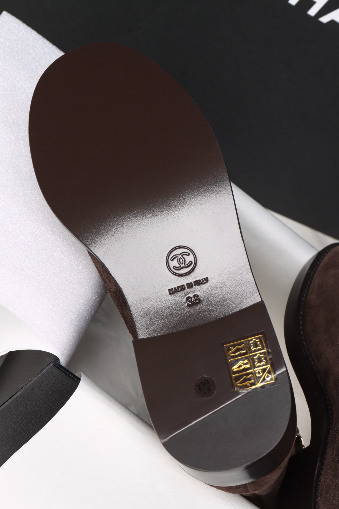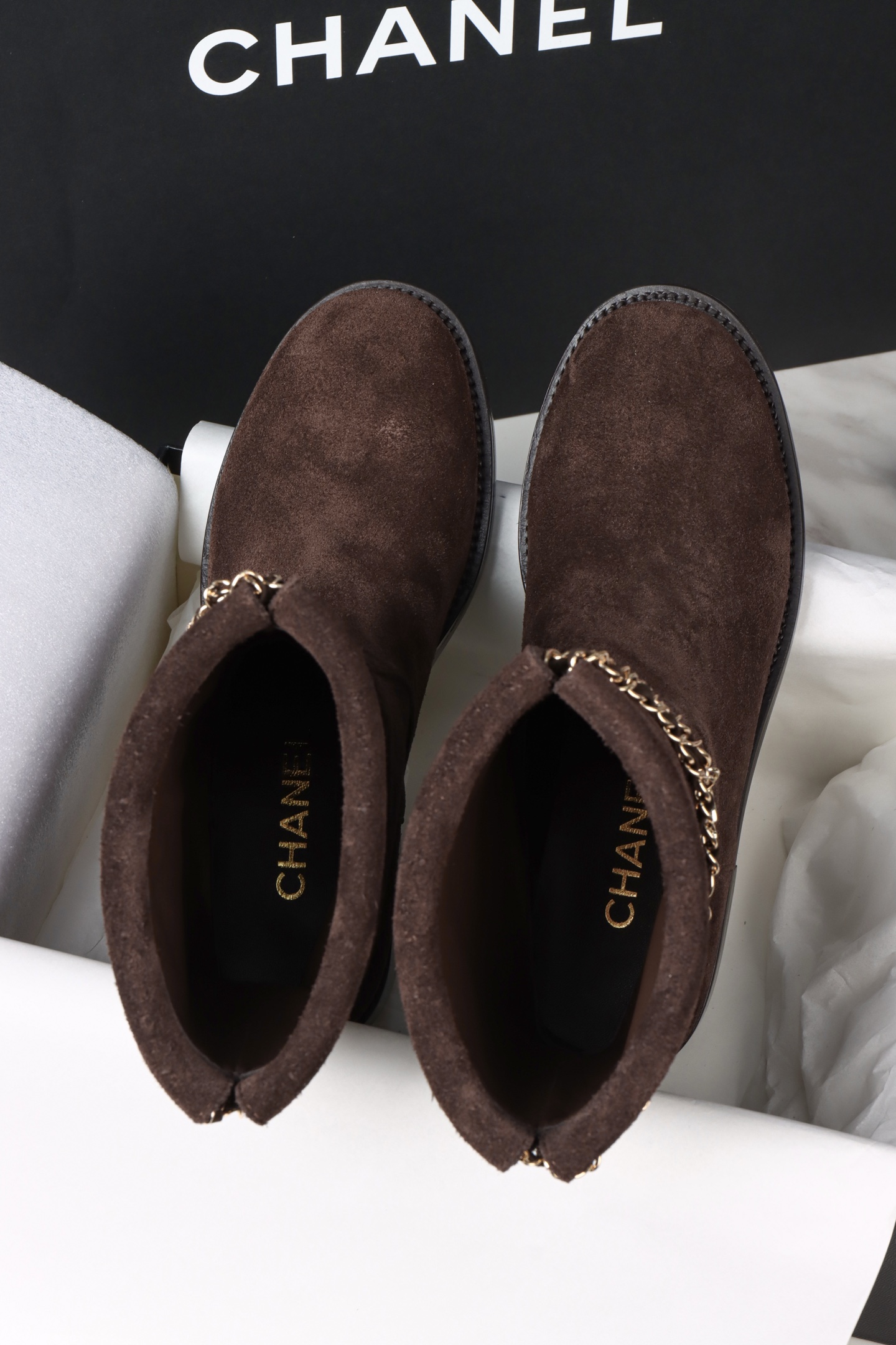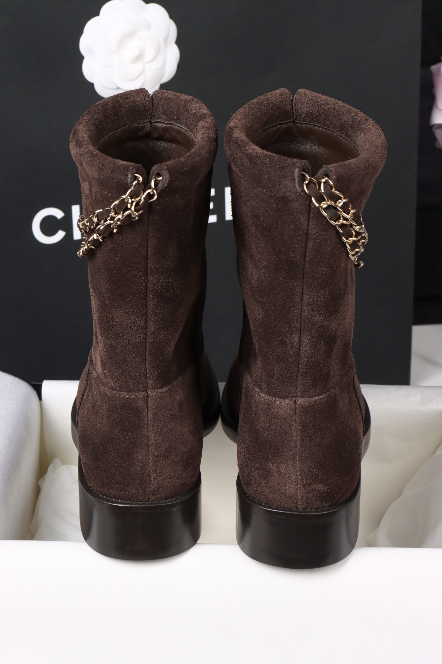 Chanel 25N Clover Chain Suede Short Boots. Elegant clover chain decorated suede short boots from the exclusive 25N collection. Sizes 35-41.