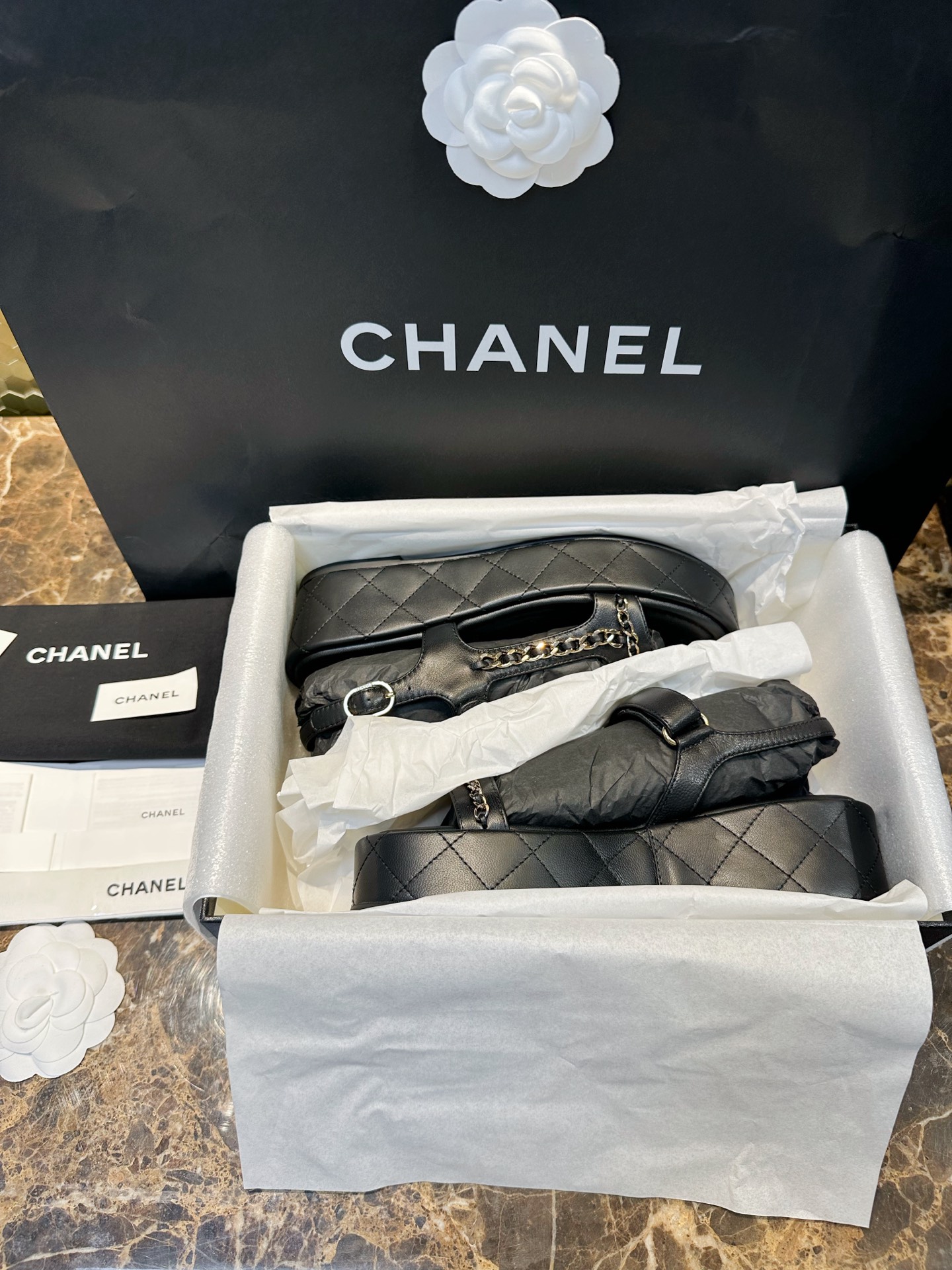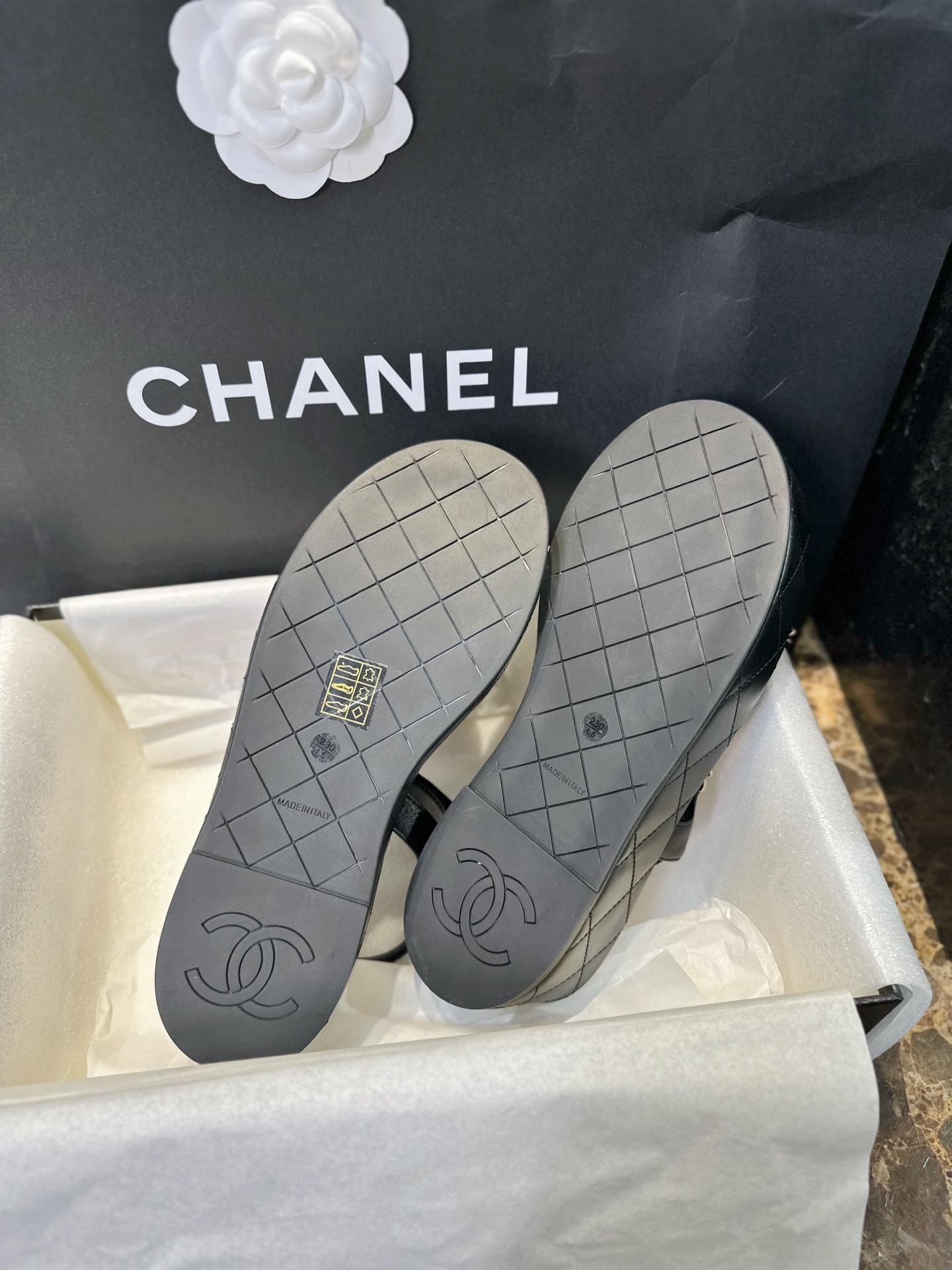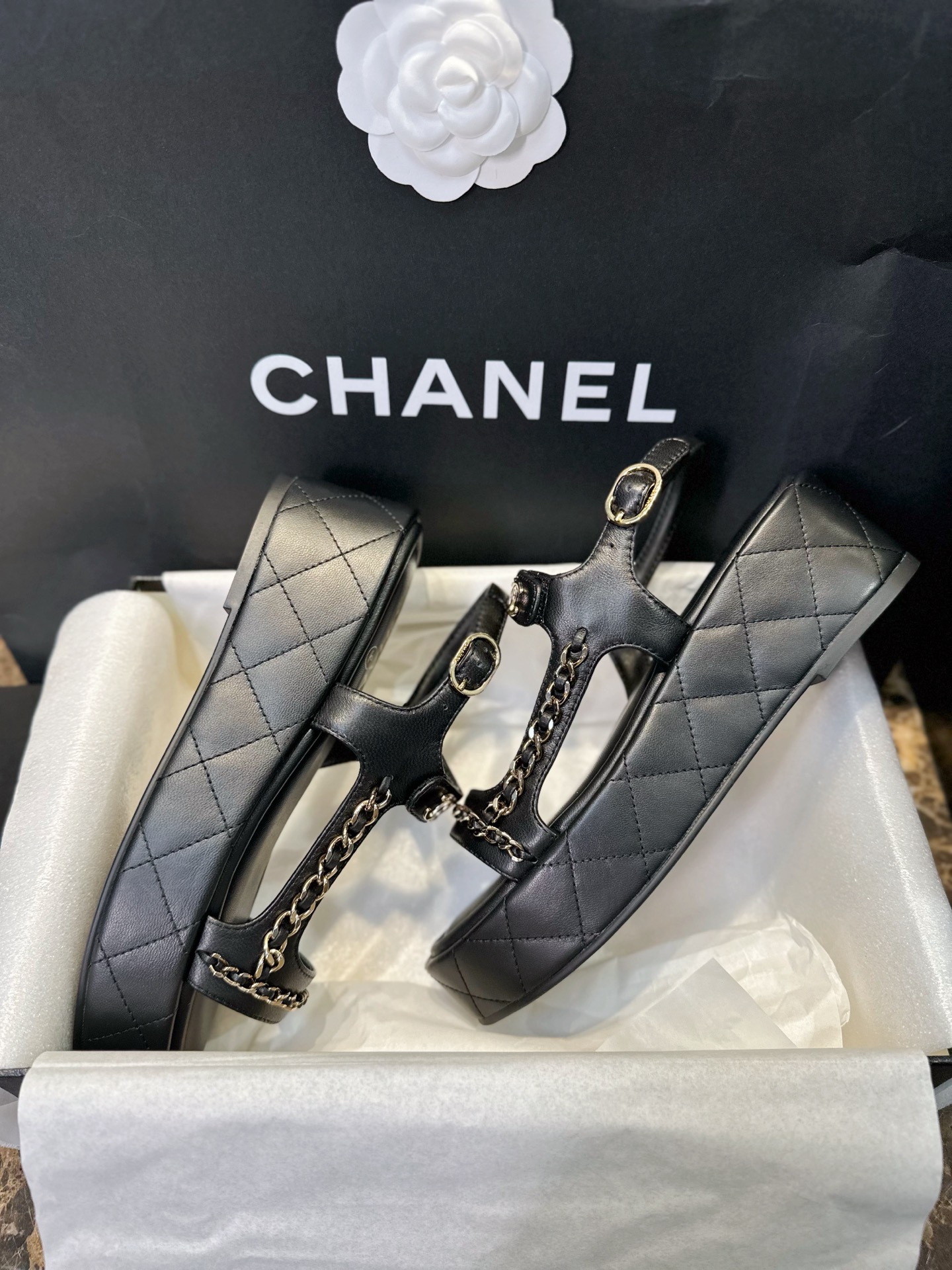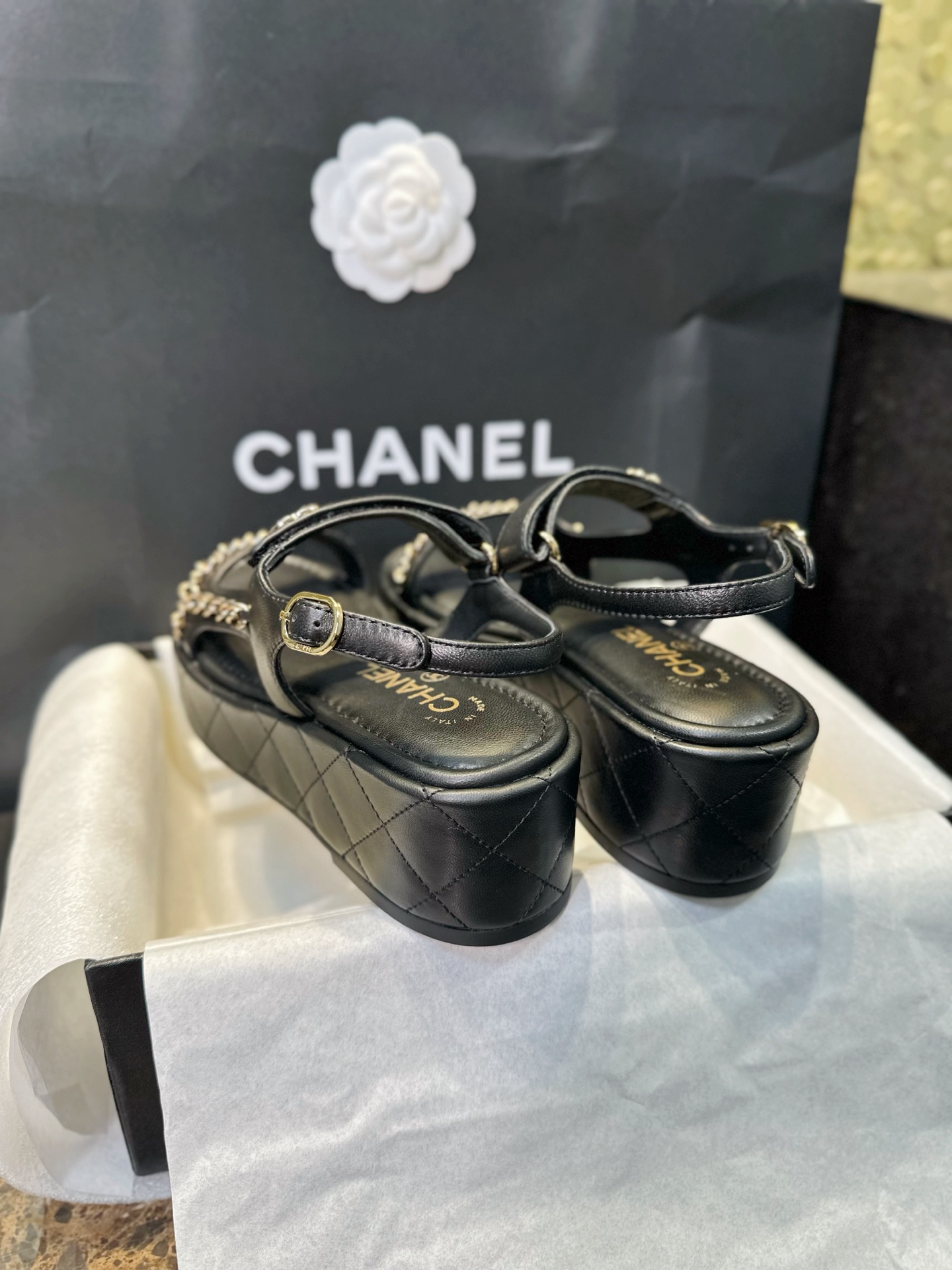 Chanel 25P Chunk Sole Chain Sandals. Trendy chunk sole sandals with signature chain detail from the 25P collection. Premium leather with modern design. Sizes 35-41.