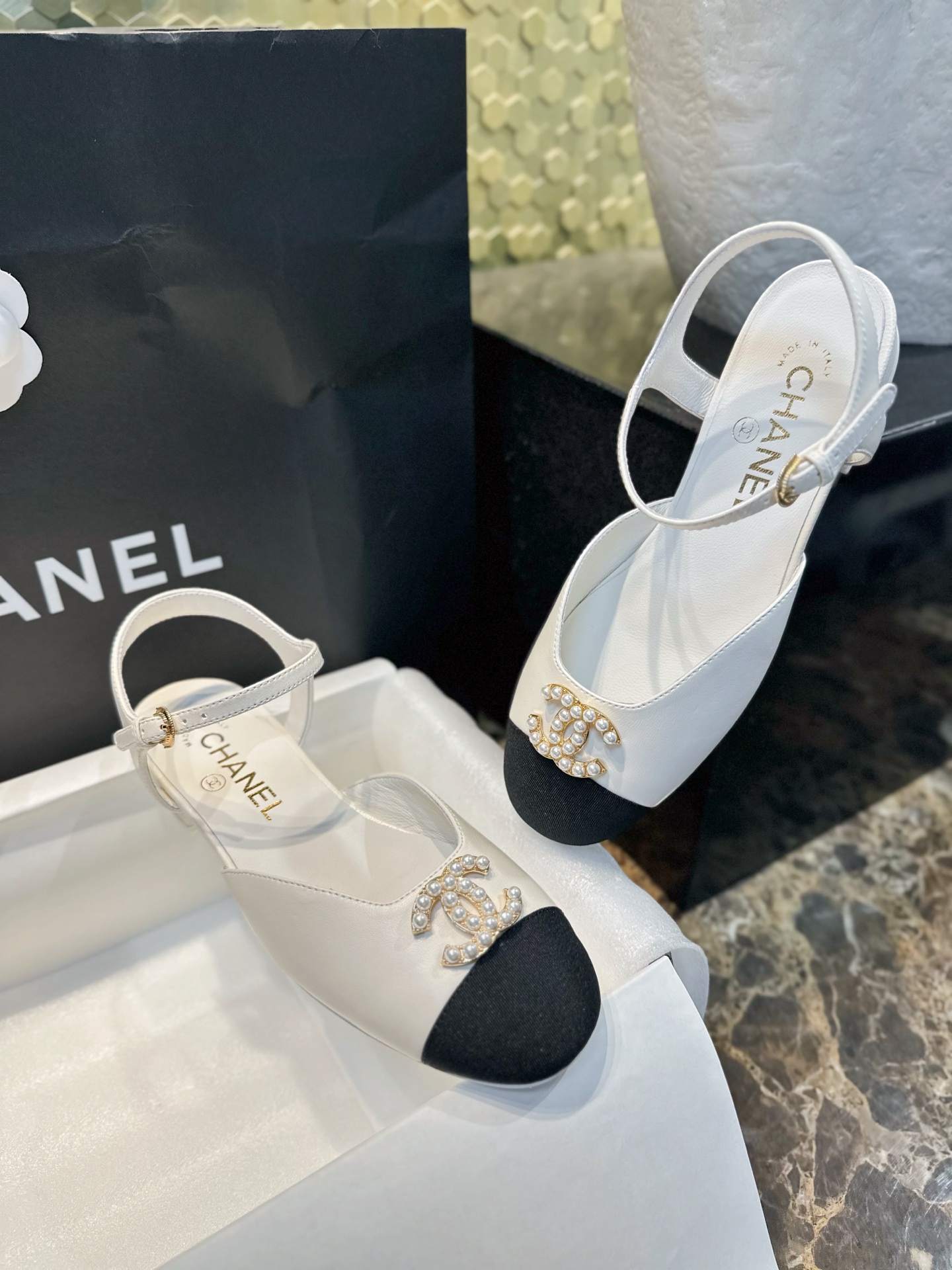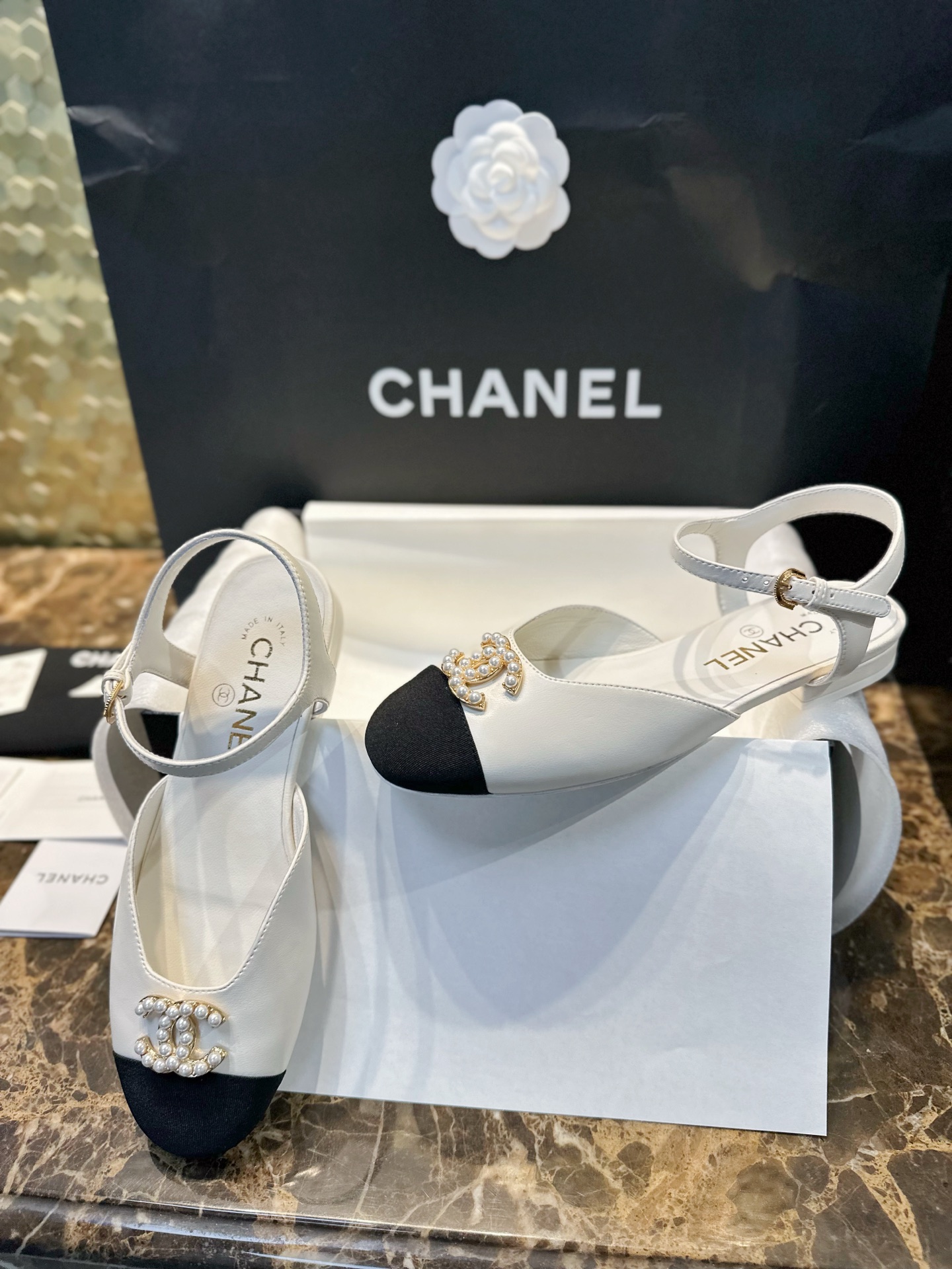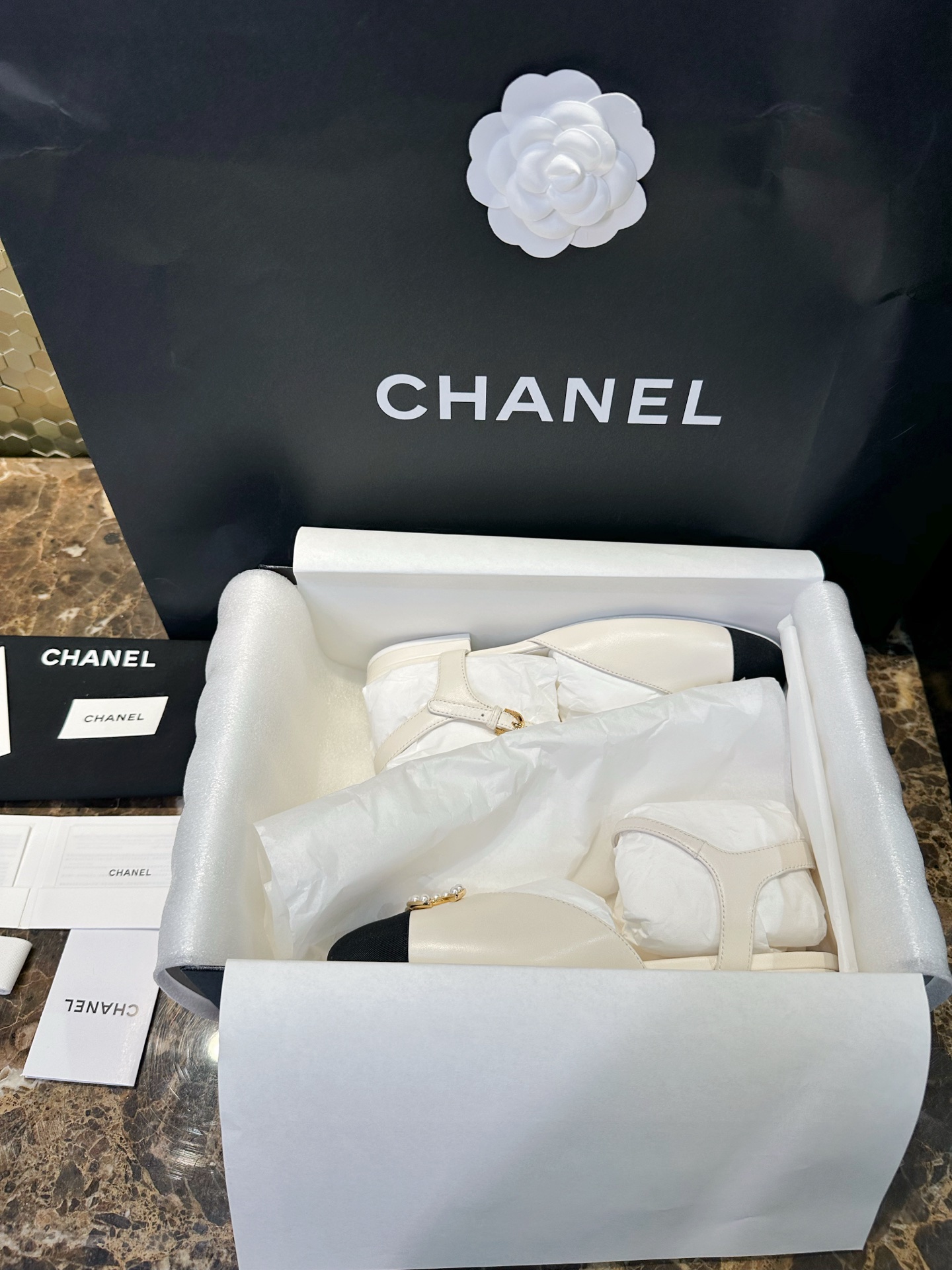 Chanel 25P Pearl Button Mary Jane Shoes. Signature pearl button closure with classic Mary Jane silhouette. Refined craftsmanship from the 25P collection. Sizes 35-41.