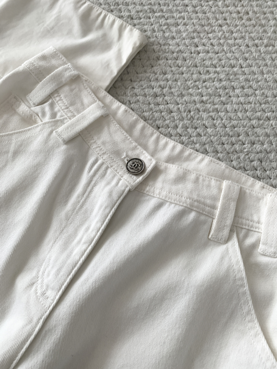 Chanel 26P White Denim CC Jeans Jennie Style
