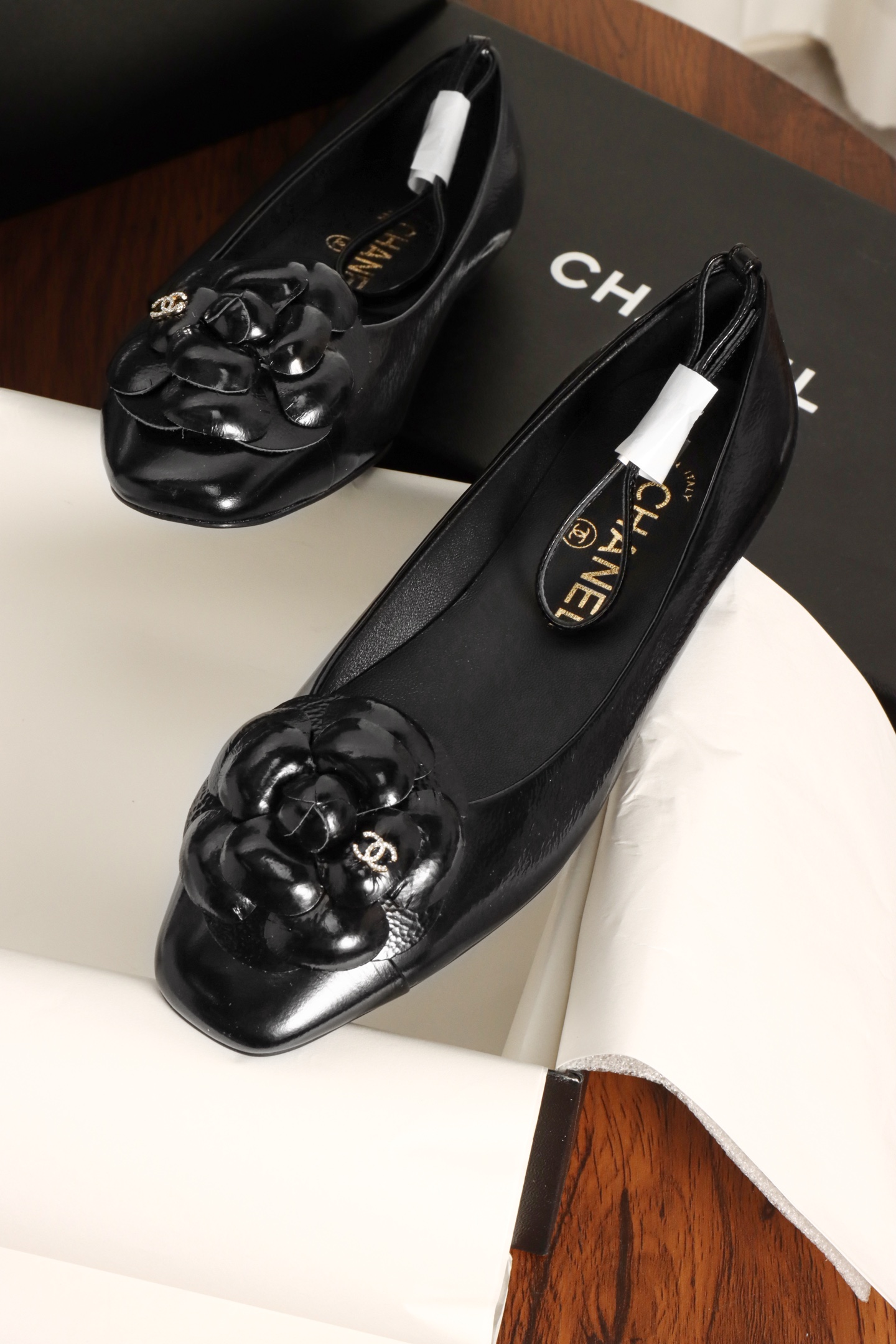 Chanel Camellia Lace Mary Jane. Elegant camellia decorated lace-up Mary Jane shoes with signature Chanel craftsmanship. Sizes 35-41.