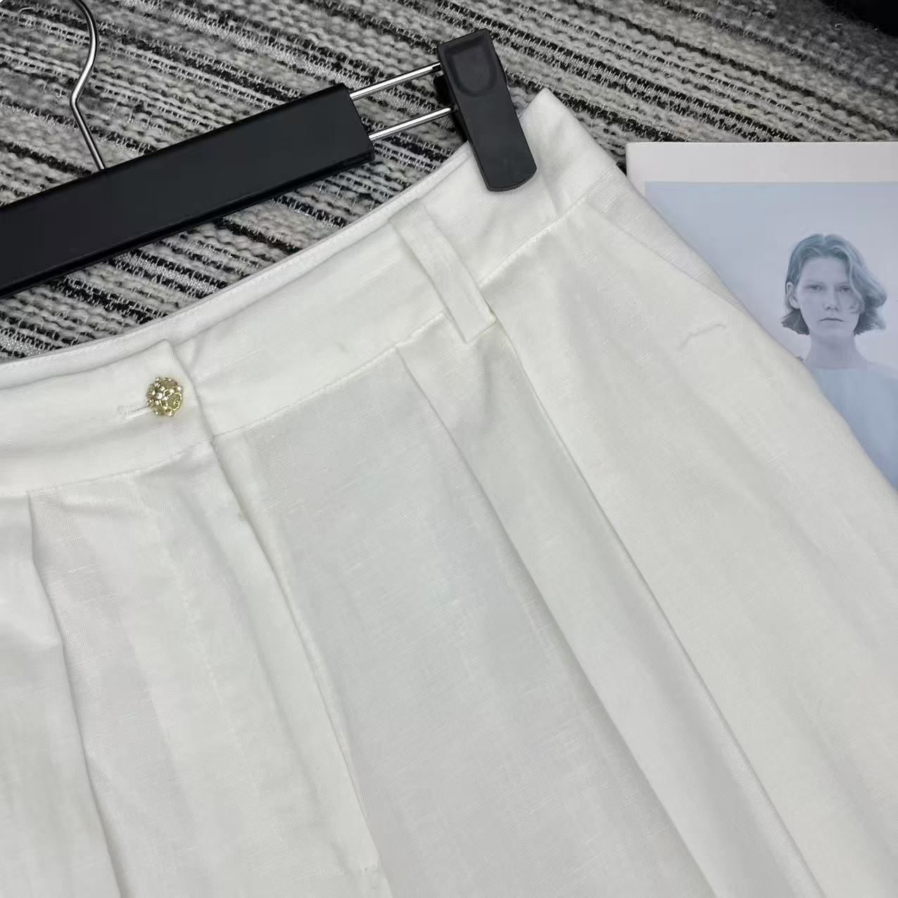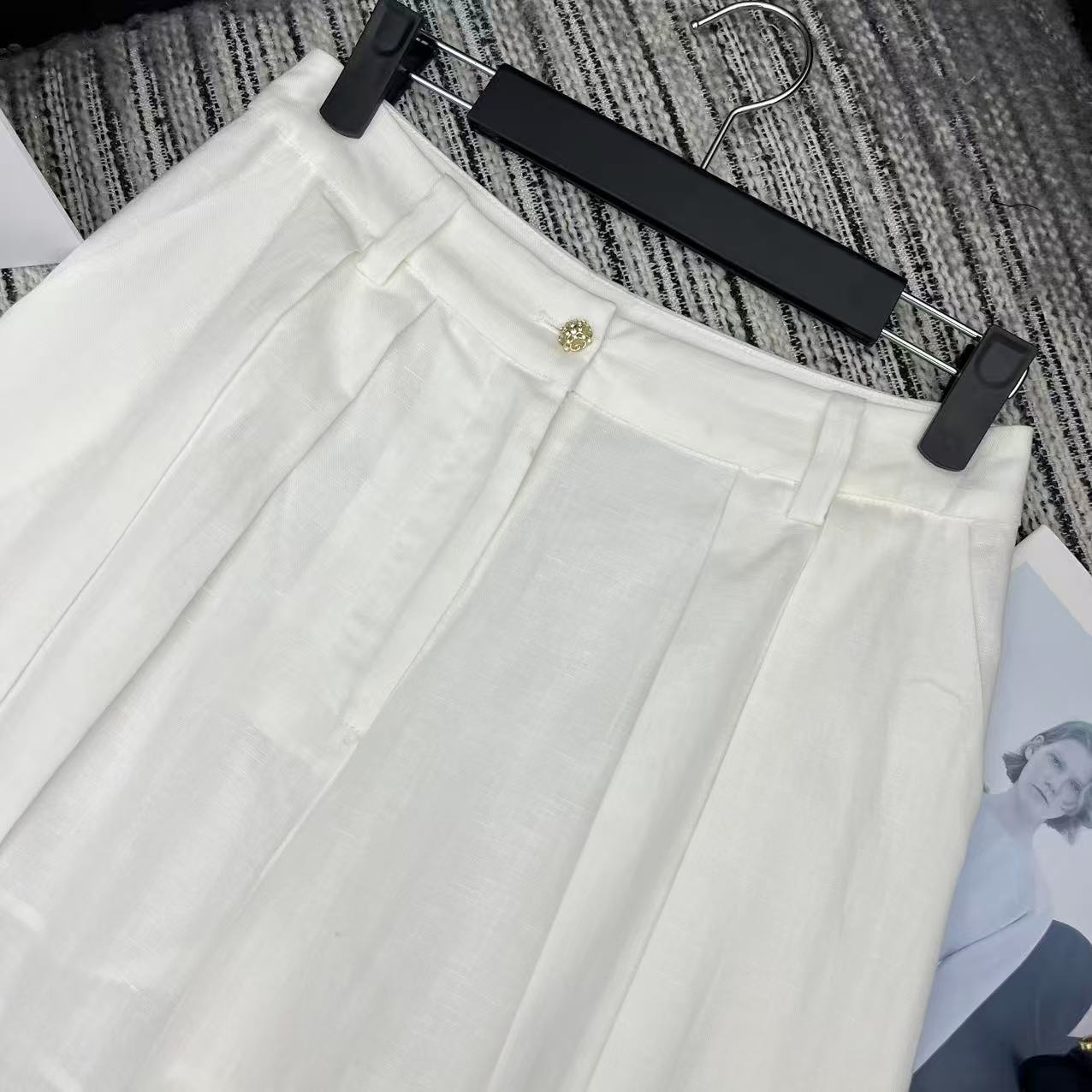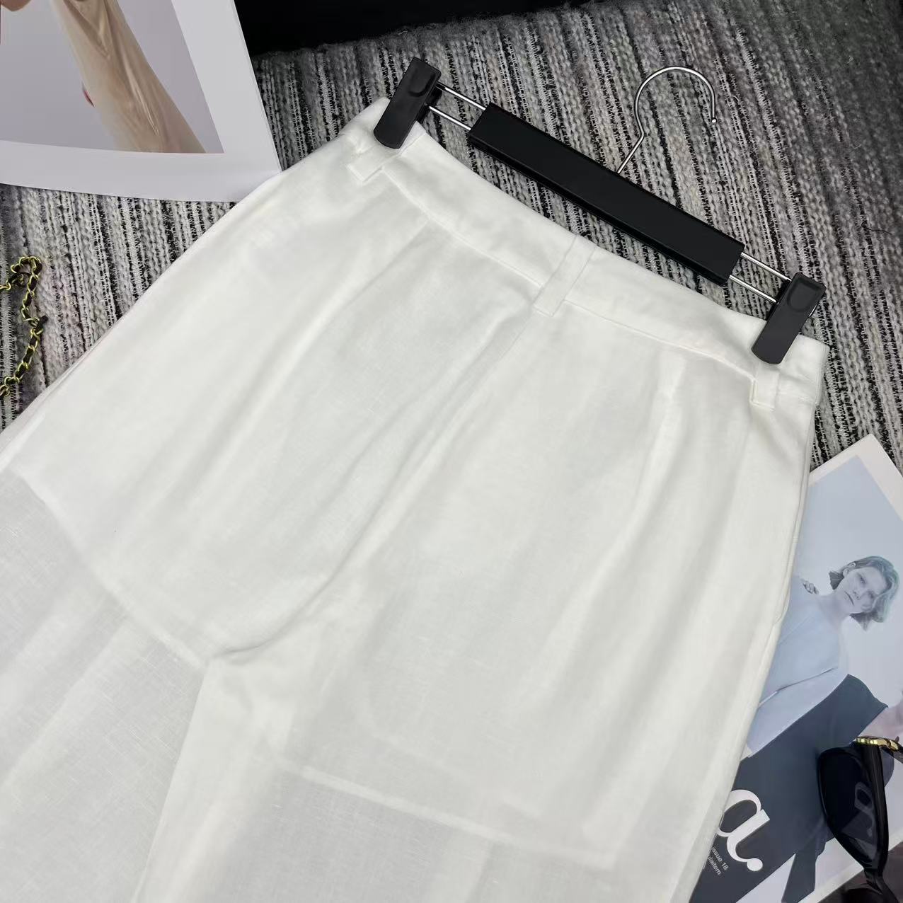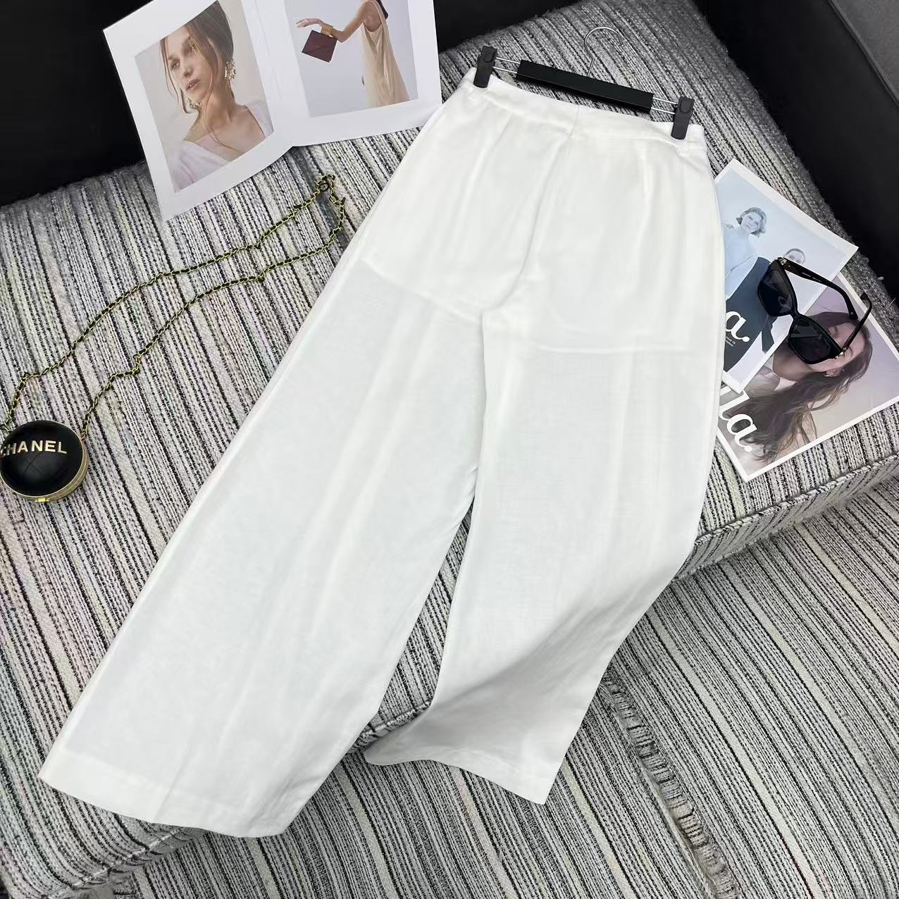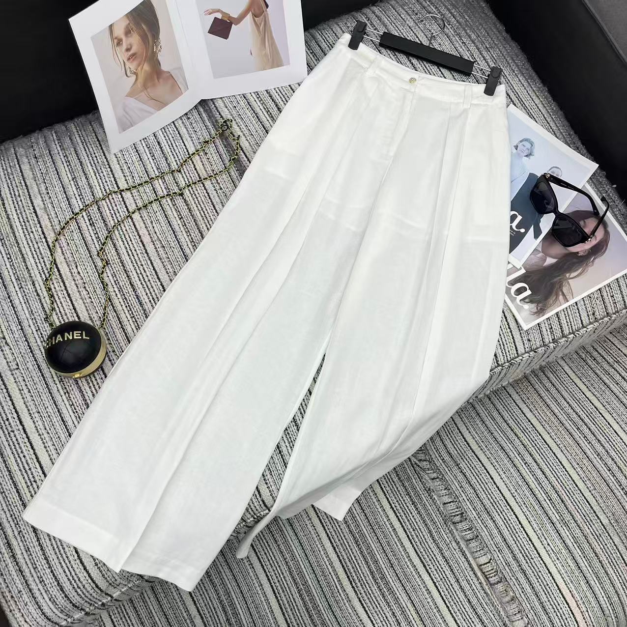 Chanel Linen Wide-Leg Suit Trousers. Authentic products, molded and supported, size exchange within 10 days, no returns or exchanges. Highly recommend the new 2026 Spring/Summer Chan* linen suit wide-leg trousers in sizes S, M, and L.
