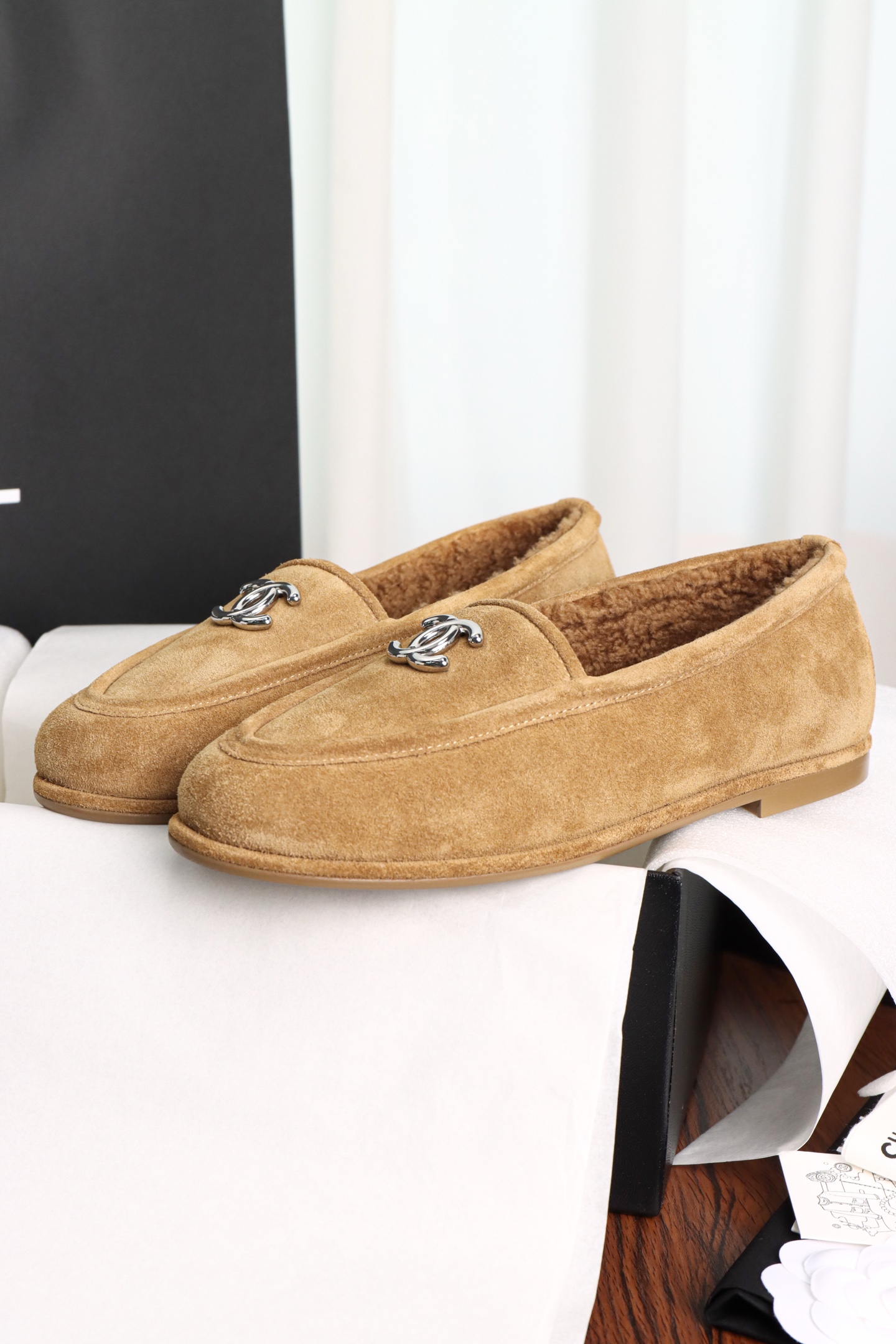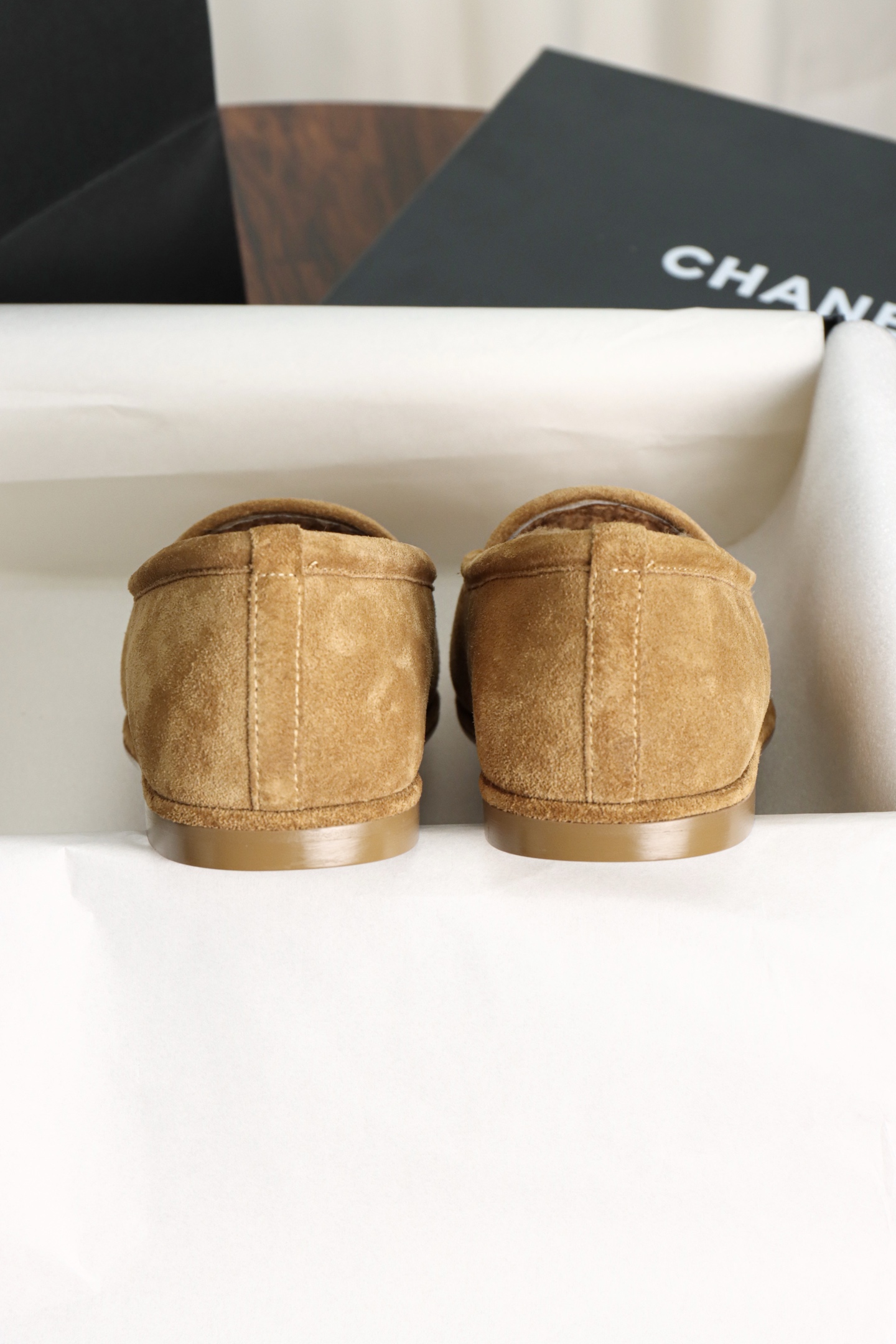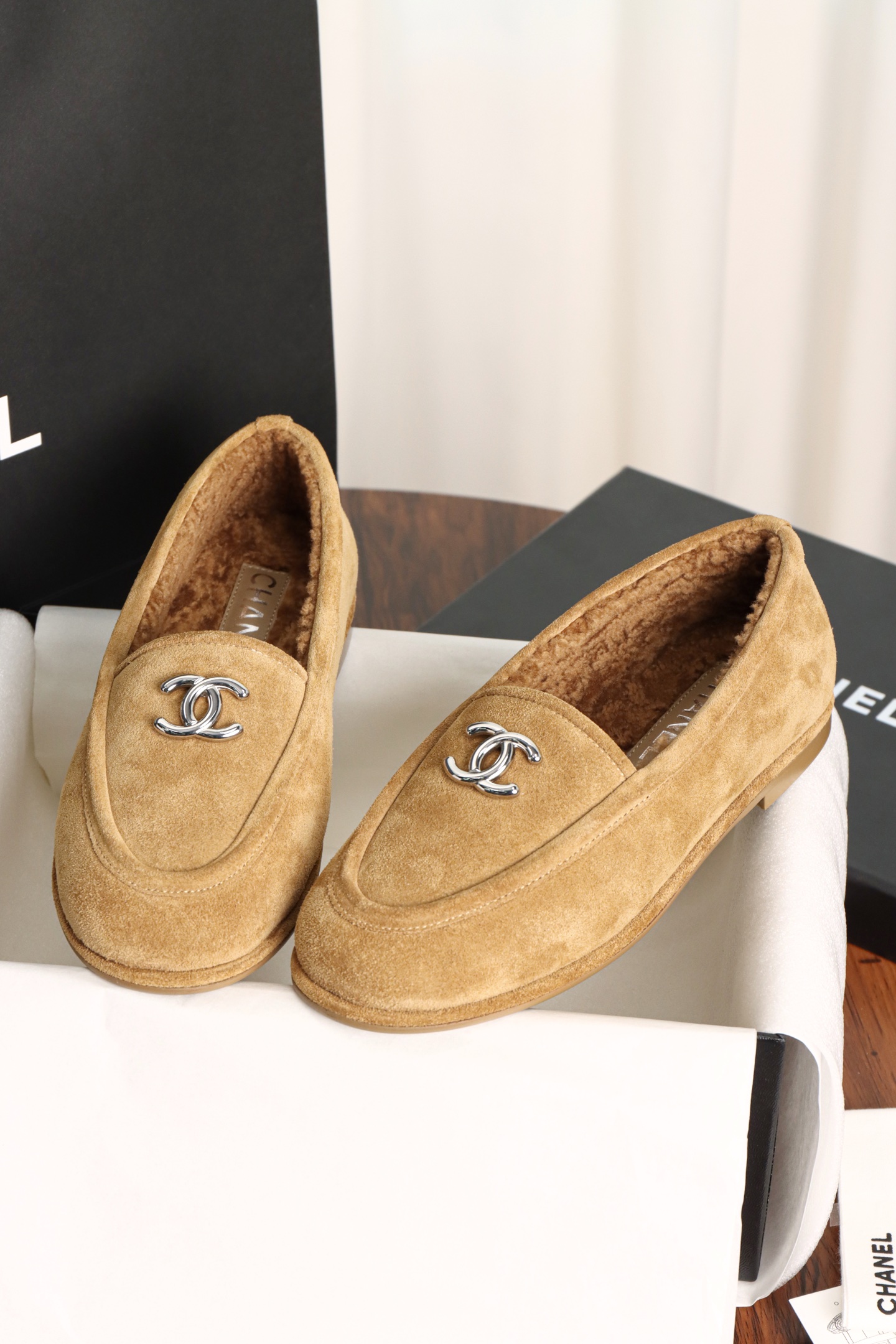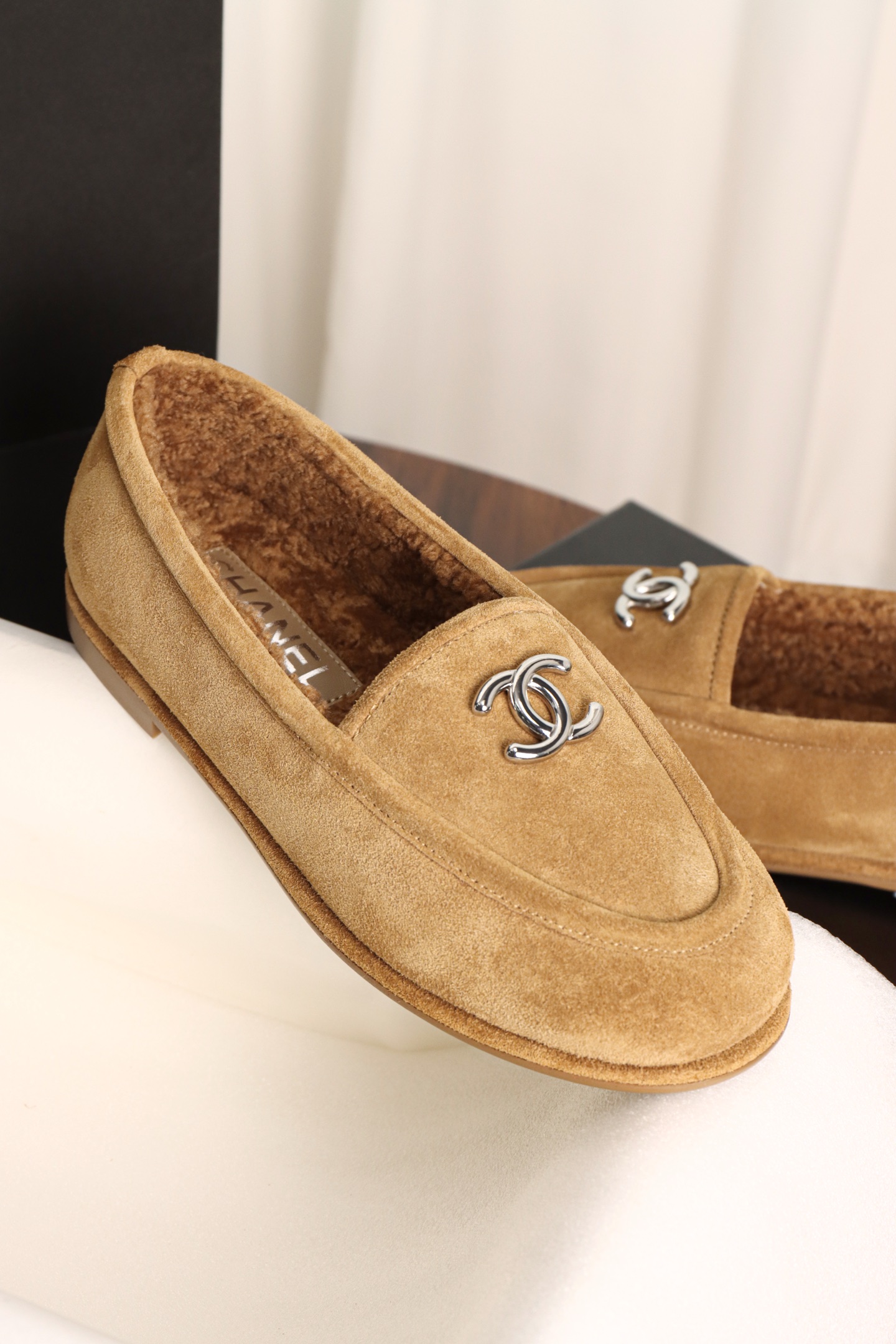 Chanel Maillard Fluffy Loafers. Warm Maillard brown fluffy loafers with signature Chanel craftsmanship. Premium materials. Sizes 35-41.