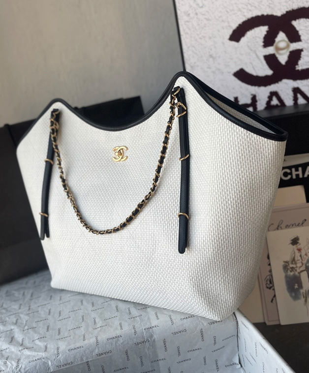 Chanel Maxi Shopping Bag crafted from braided raffia, calfskin and gold-tone metal. Elegant tote design with signature Chanel craftsmanship. Size: W36XH59XD13(cm). Material: Raffia.