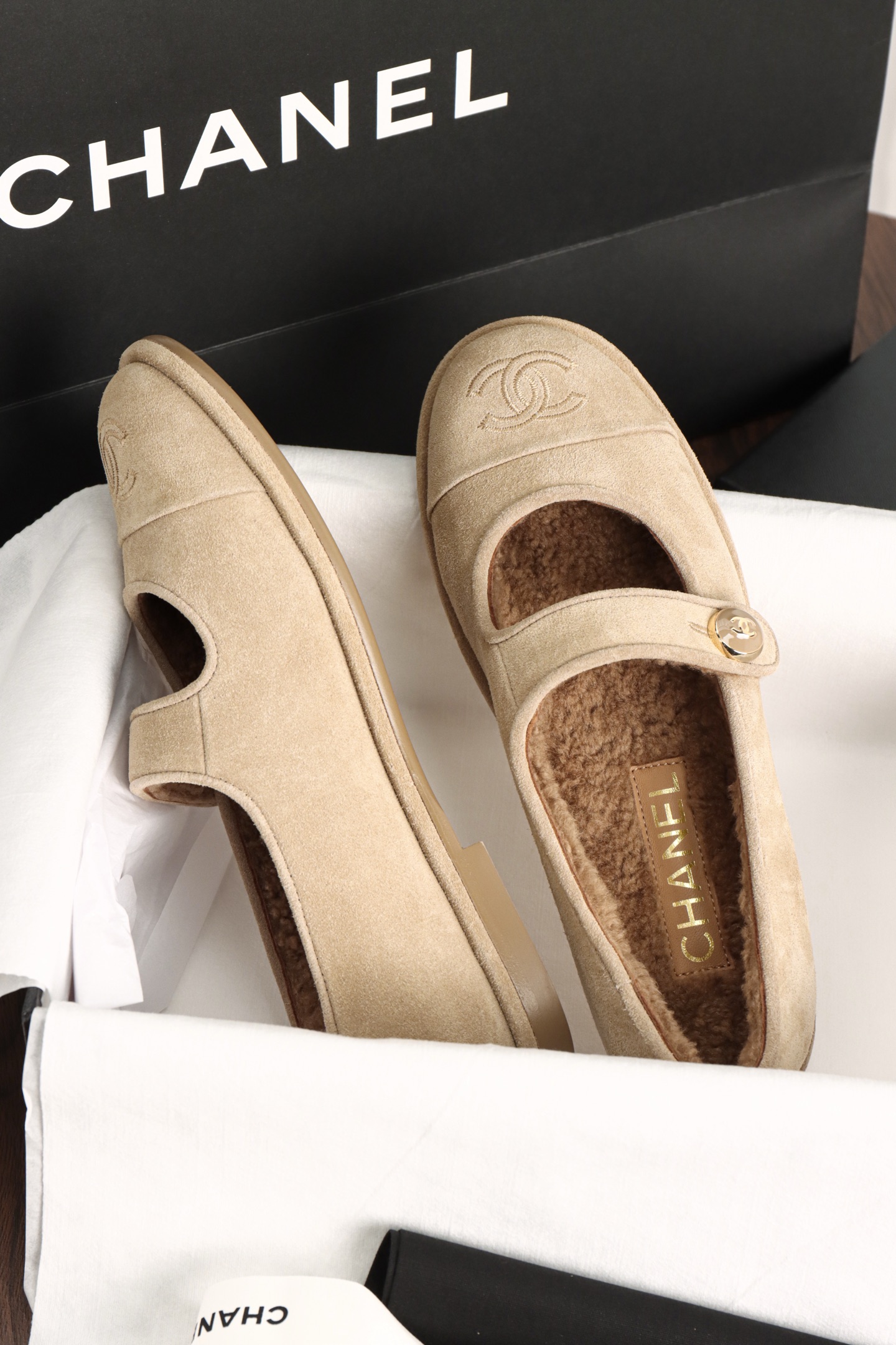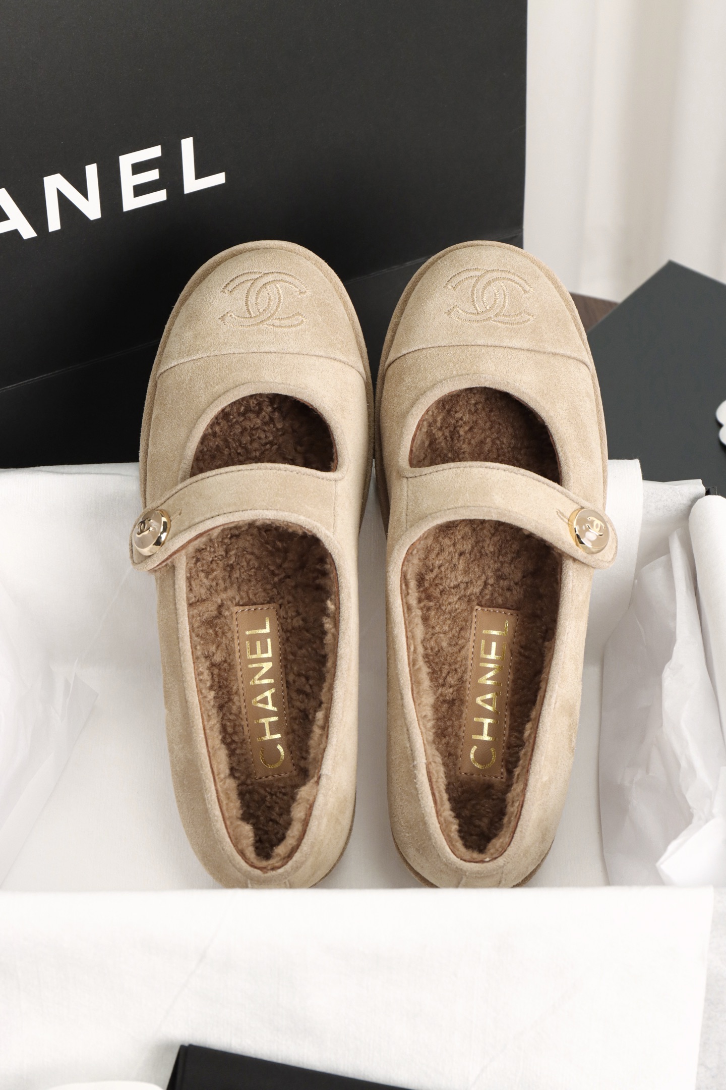 Chanel Teddy Fluffy Mary Jane. Luxuriously soft teddy fluffy Mary Jane shoes with signature Chanel detailing. Premium materials with cozy design. Sizes 35-41.