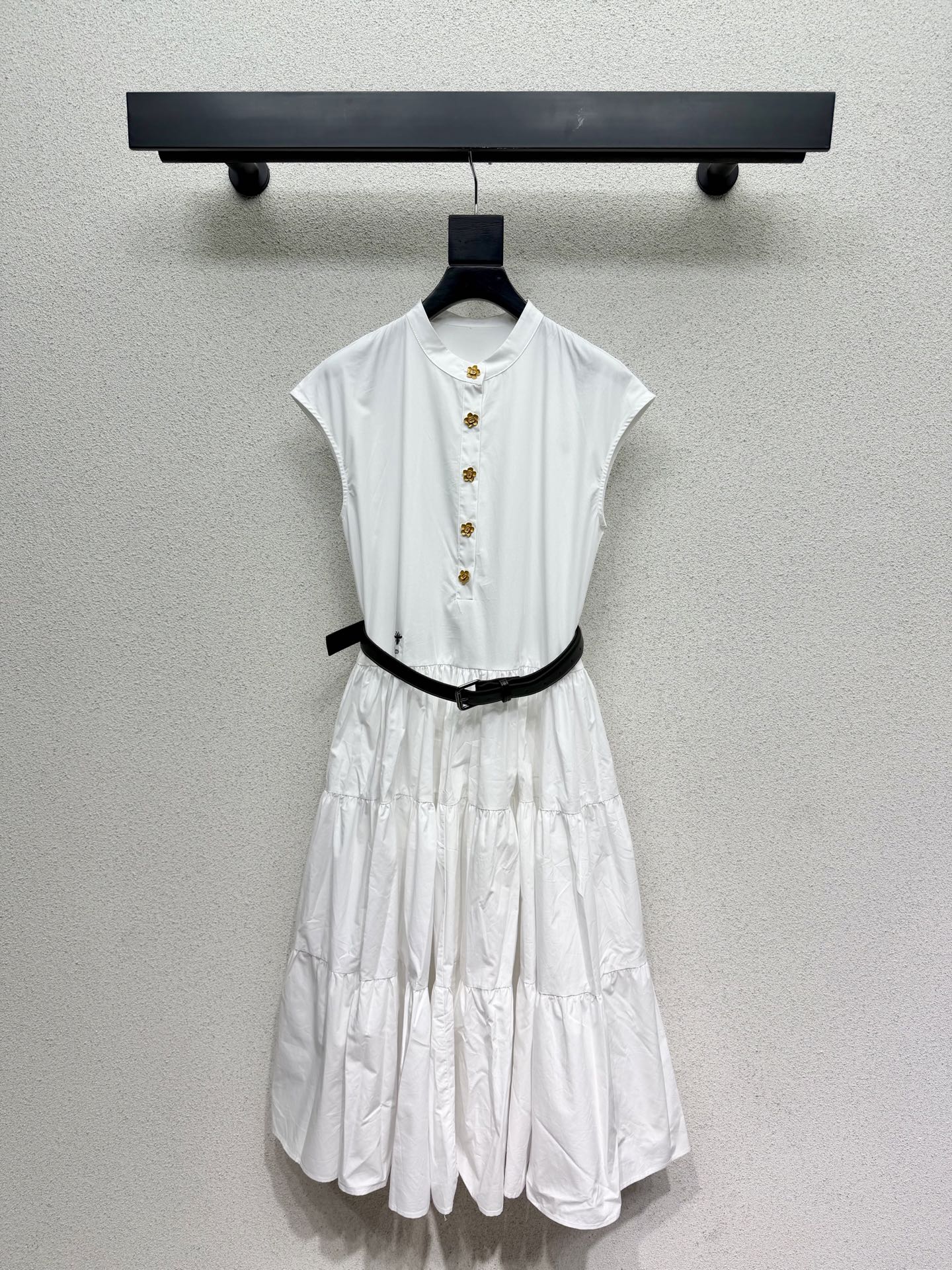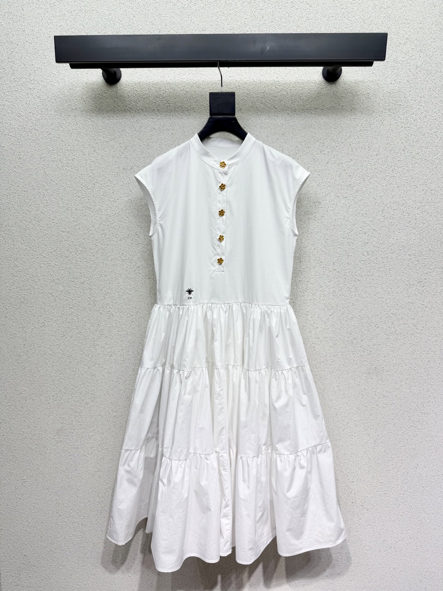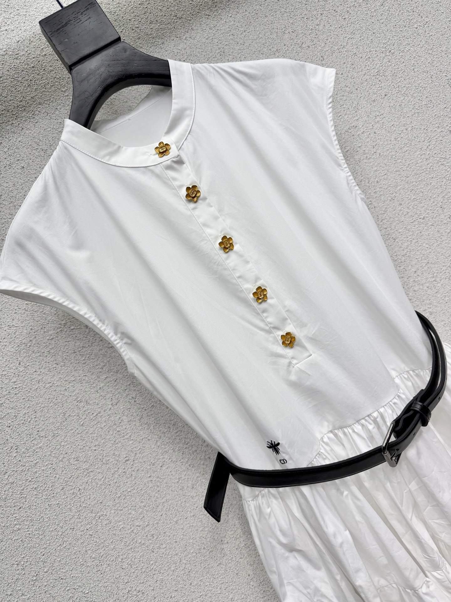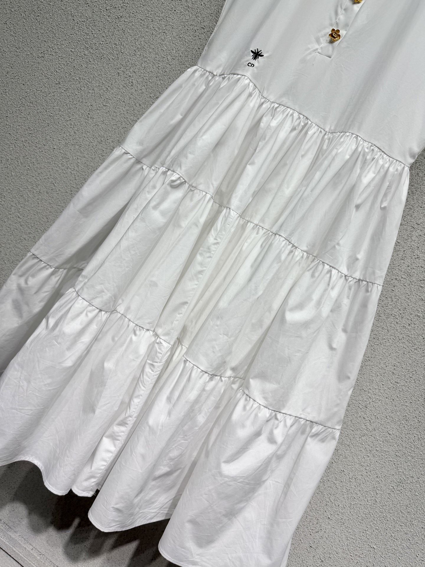 Dior bee-themed long dress with belt. Comfortable and stylish, elegant design suitable for everyday wear. High-quality ready-to-wear construction with exquisite details. Youthful, fashionable, and girly.