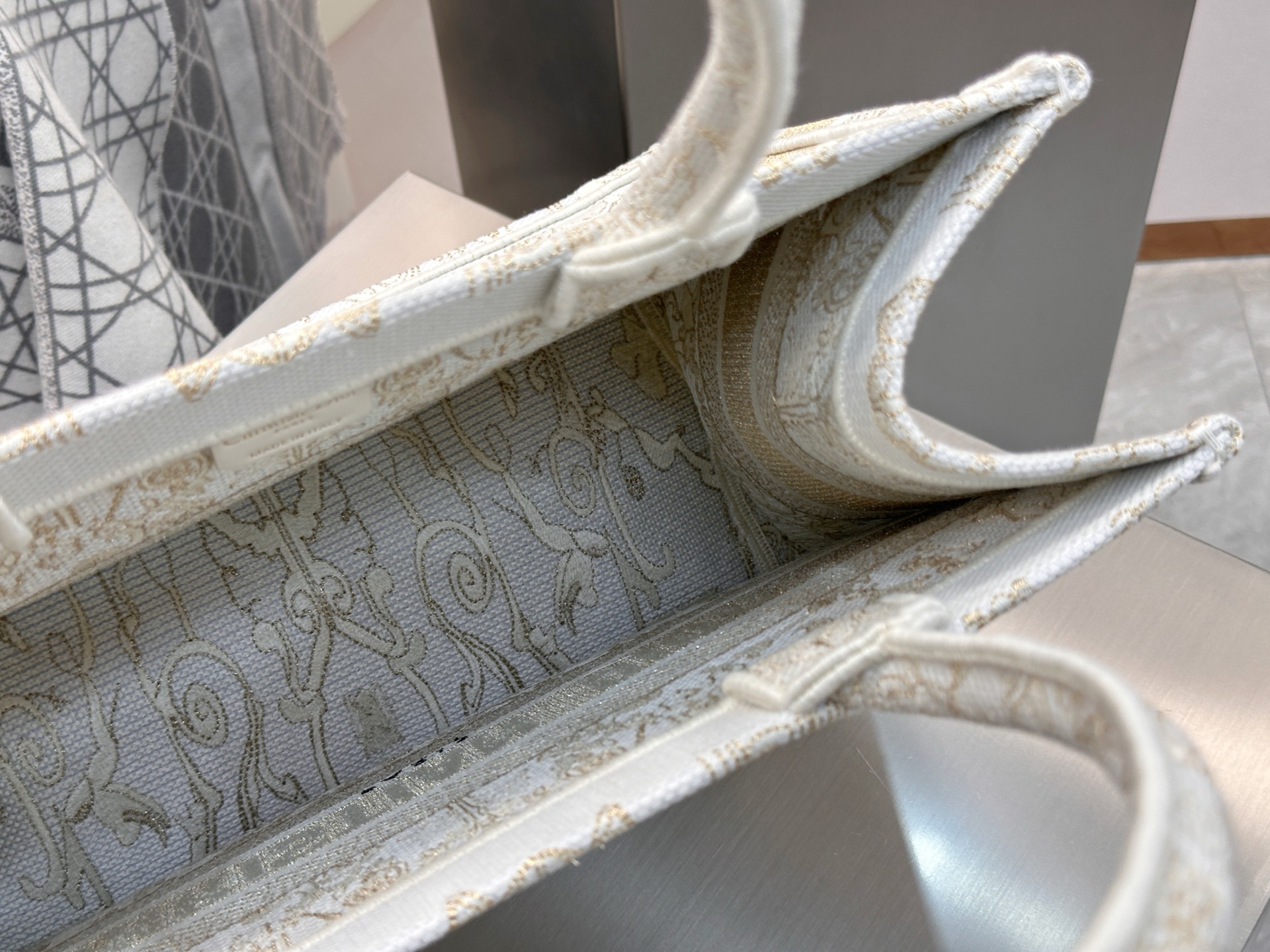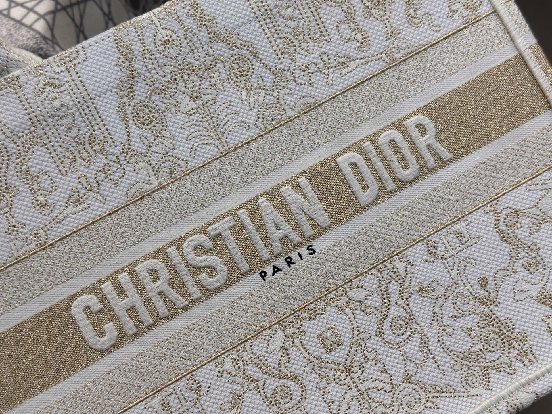Dior Book Tote medium tote. Gold star platinum pattern. Sparkling star embellishment, dreamy and luxurious. High-density embroidery, elegant. Medium size: 36*28*16cm.