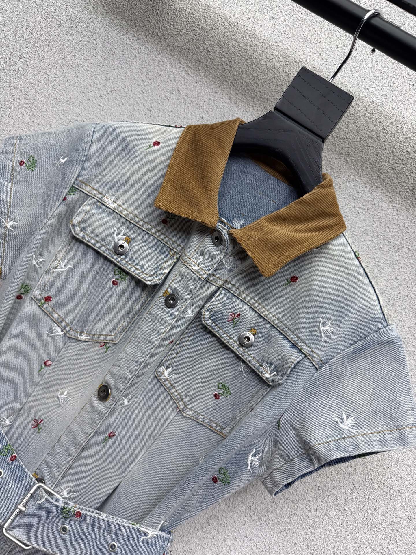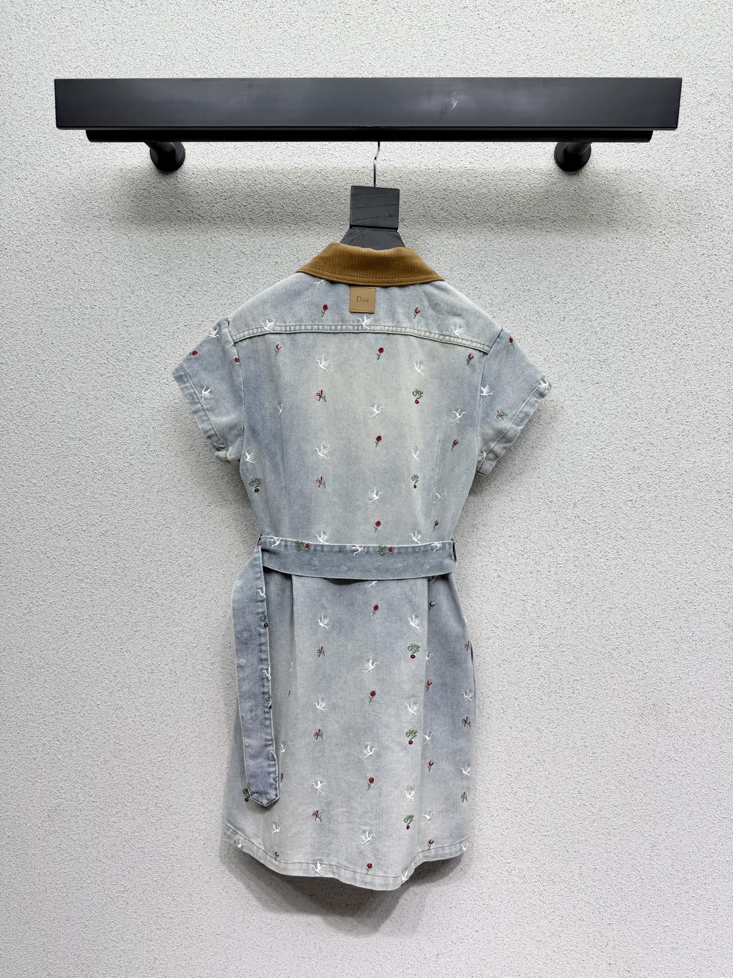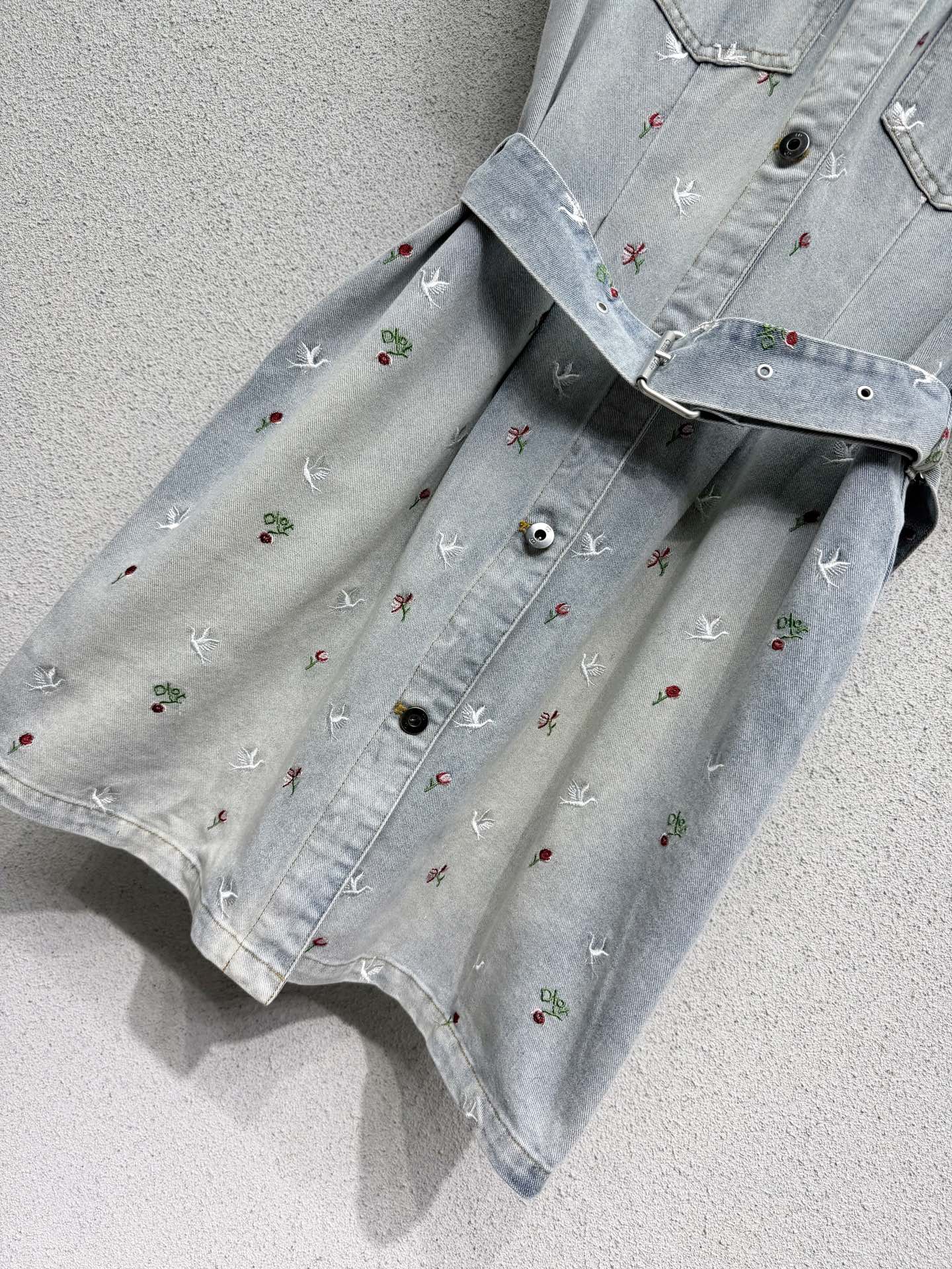 Dior heavy embroidery denim dress. Vintage style with distressed effect. Comfortable washed denim cotton fabric. Versatile and easy to match.