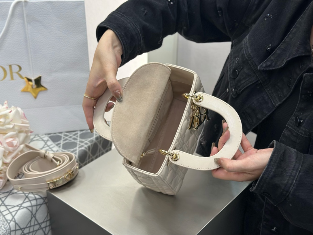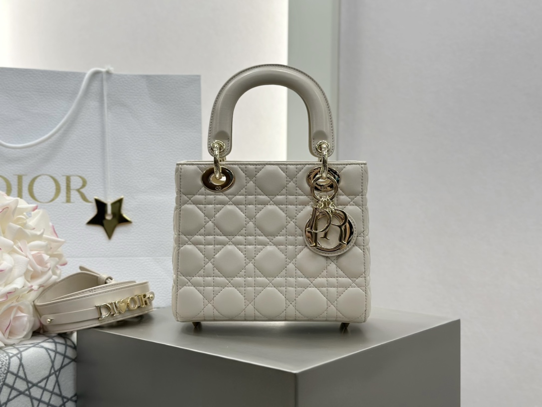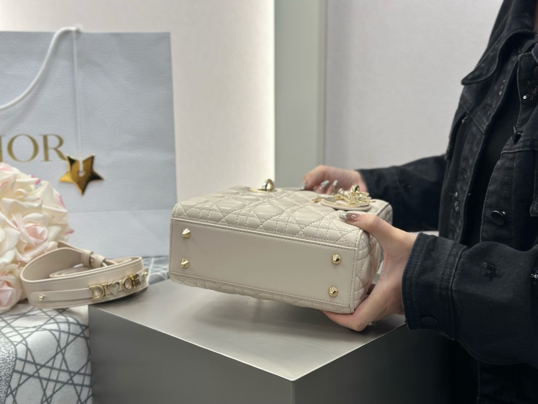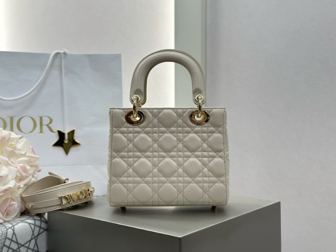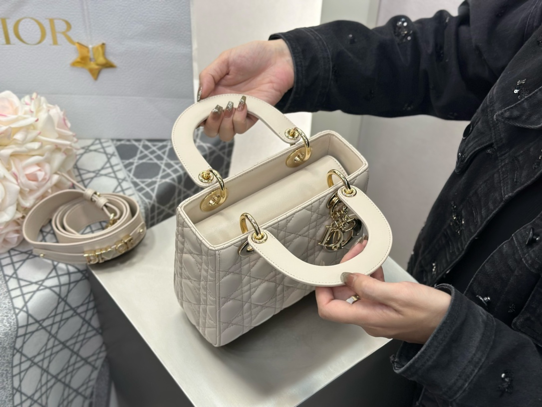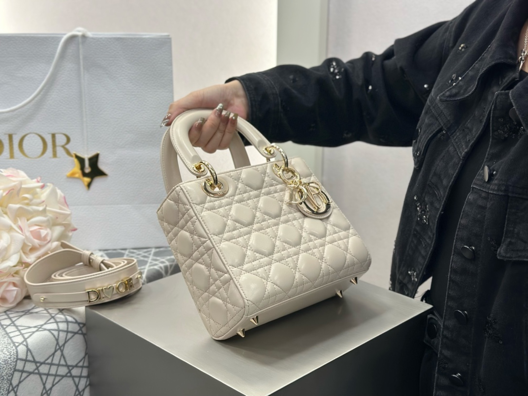 Dior Lady Dior four-grid bag in imported lambskin with light gold hardware. Classic Cannage quilted pattern. Size: 20*17*8cm.