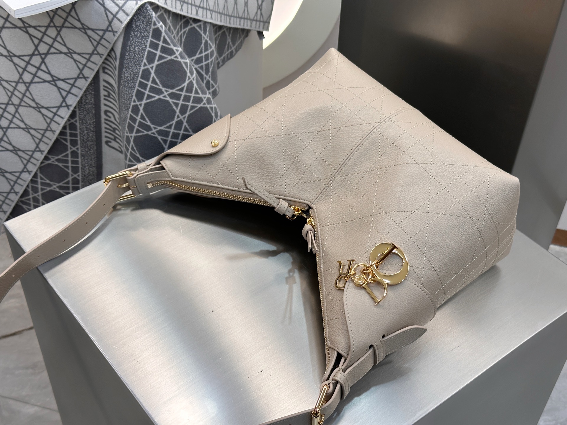 Dior Voyage medium bag in grainy calfskin with classic cannage quilting. Imported original grainy calfskin. Spacious design, perfect travel companion. Double zipper closure. Size: 28*18*12cm.