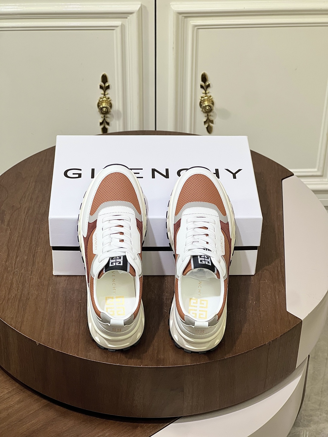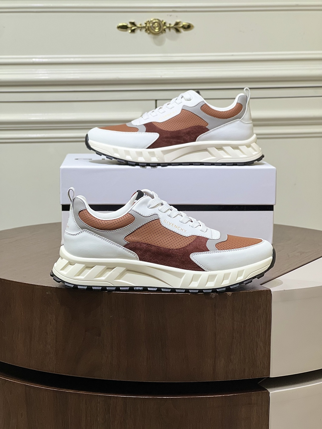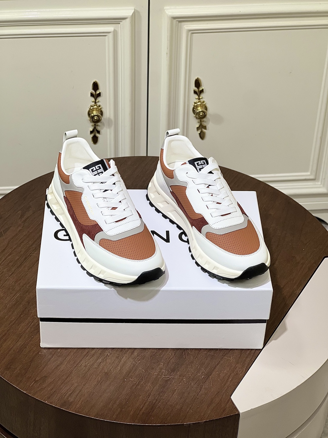 Givenchy men’s thick-soled platform casual sports shoes. Premium top-grain cowhide leather upper. 5CM height increase platform design. Two-tone color blocking with 4G logo and 3D GIVENCHY branding. Lightweight TPU foam outsole for comfortable wear.