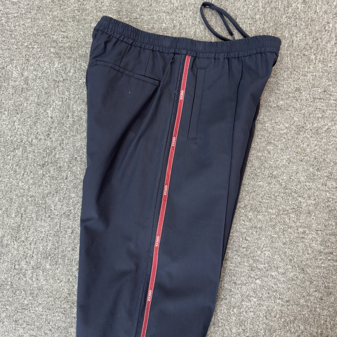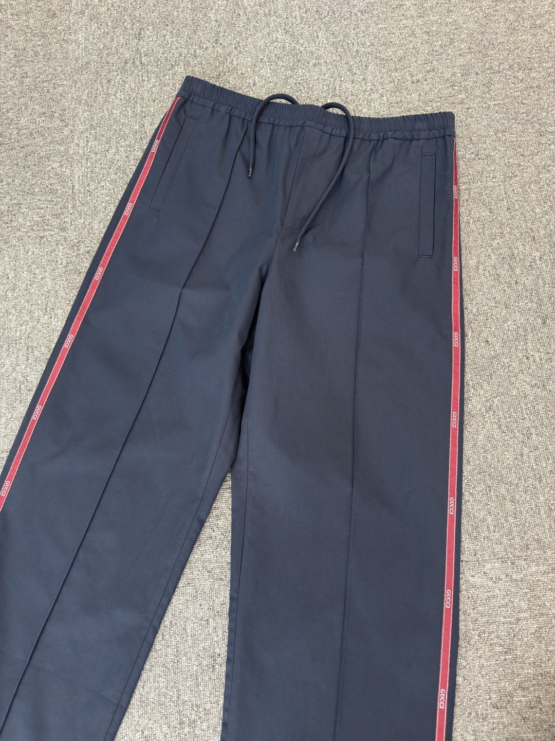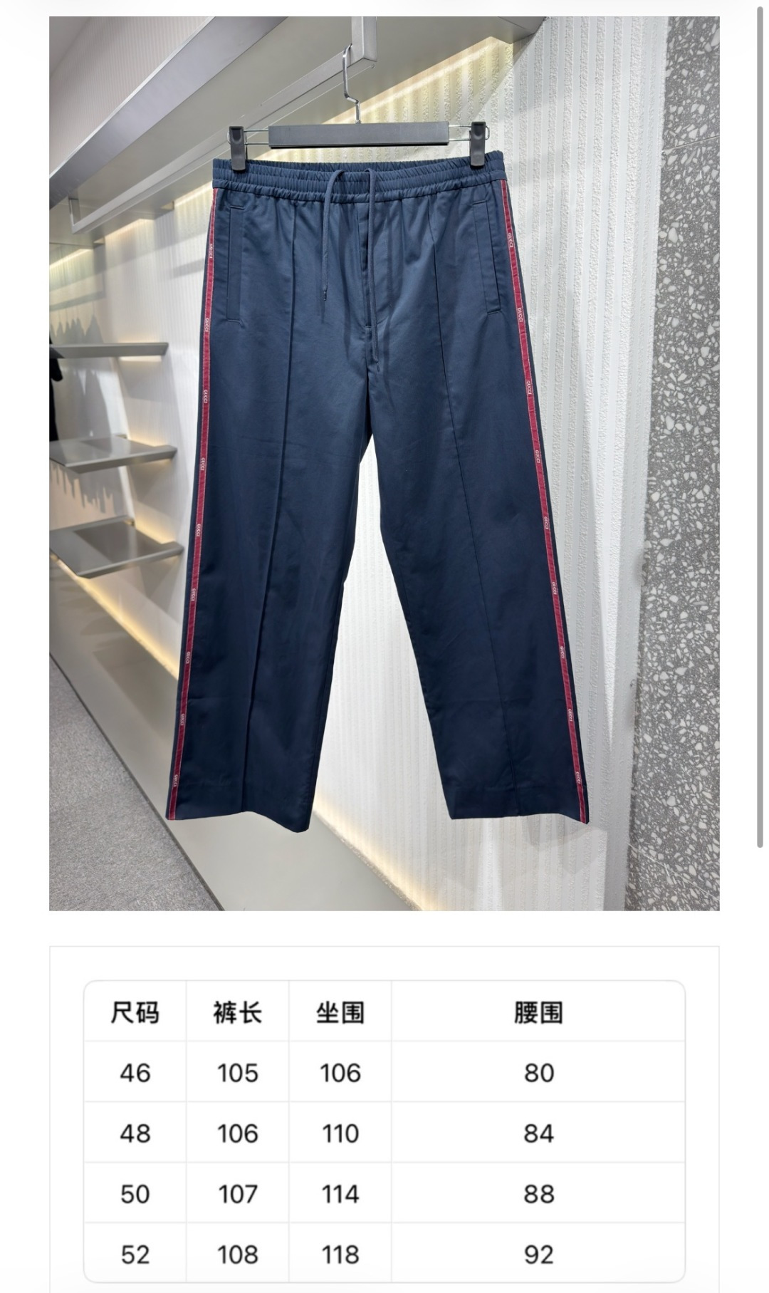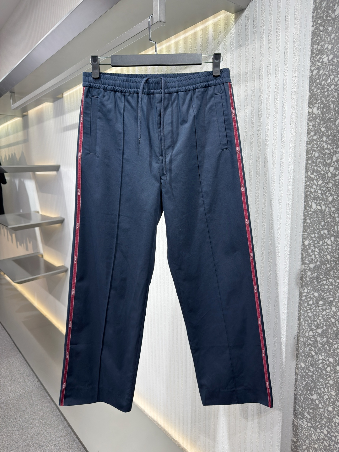Gucci 26ss Selvedge Cotton Casual Trousers feature a selvedge hem that perfectly blends exquisite craftsmanship with a unique visual effect, a hallmark of ingenuity. These casual trousers are made from selvedge cotton and adorned with the signature selvedge hem detail, woven on a shuttle using traditional techniques to create a distinctive and continuous edge that reinforces the brand’s design philosophy.