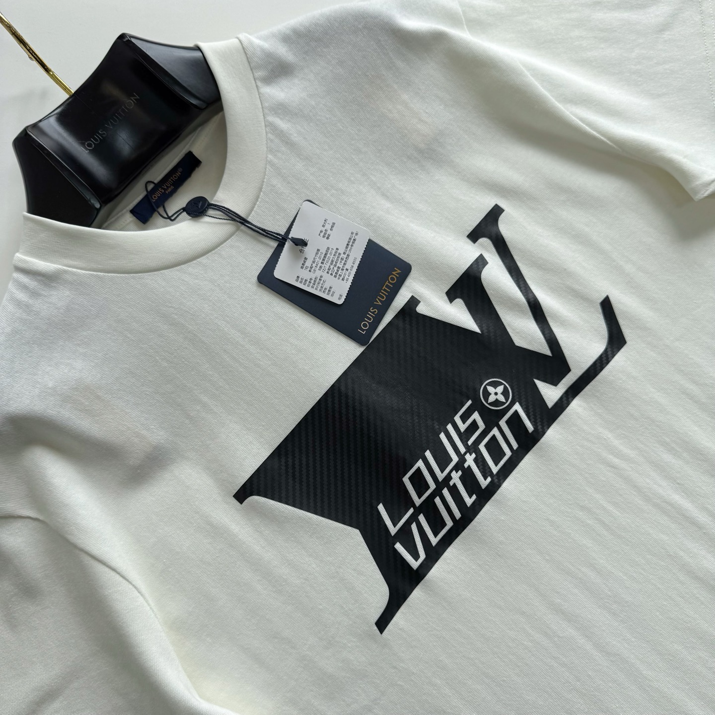 Louis Vuitton 26SS carbon fiber embossed round neck T-shirt. 230g premium cotton. 3D carbon fiber illusion print.