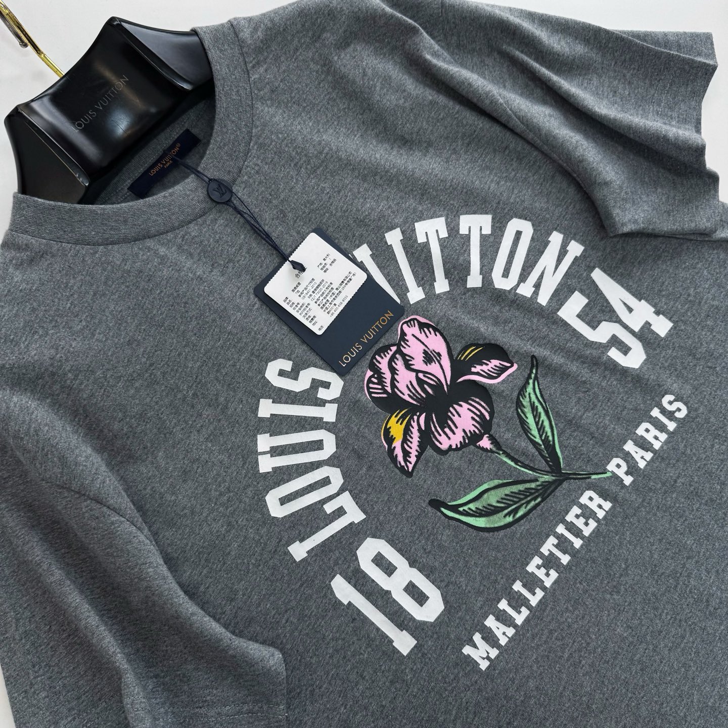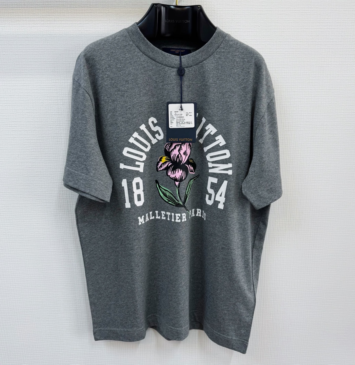 Louis Vuitton 26SS iris flower round neck T-shirt. 185g mercerized cotton. Academic style logo with iris pattern.