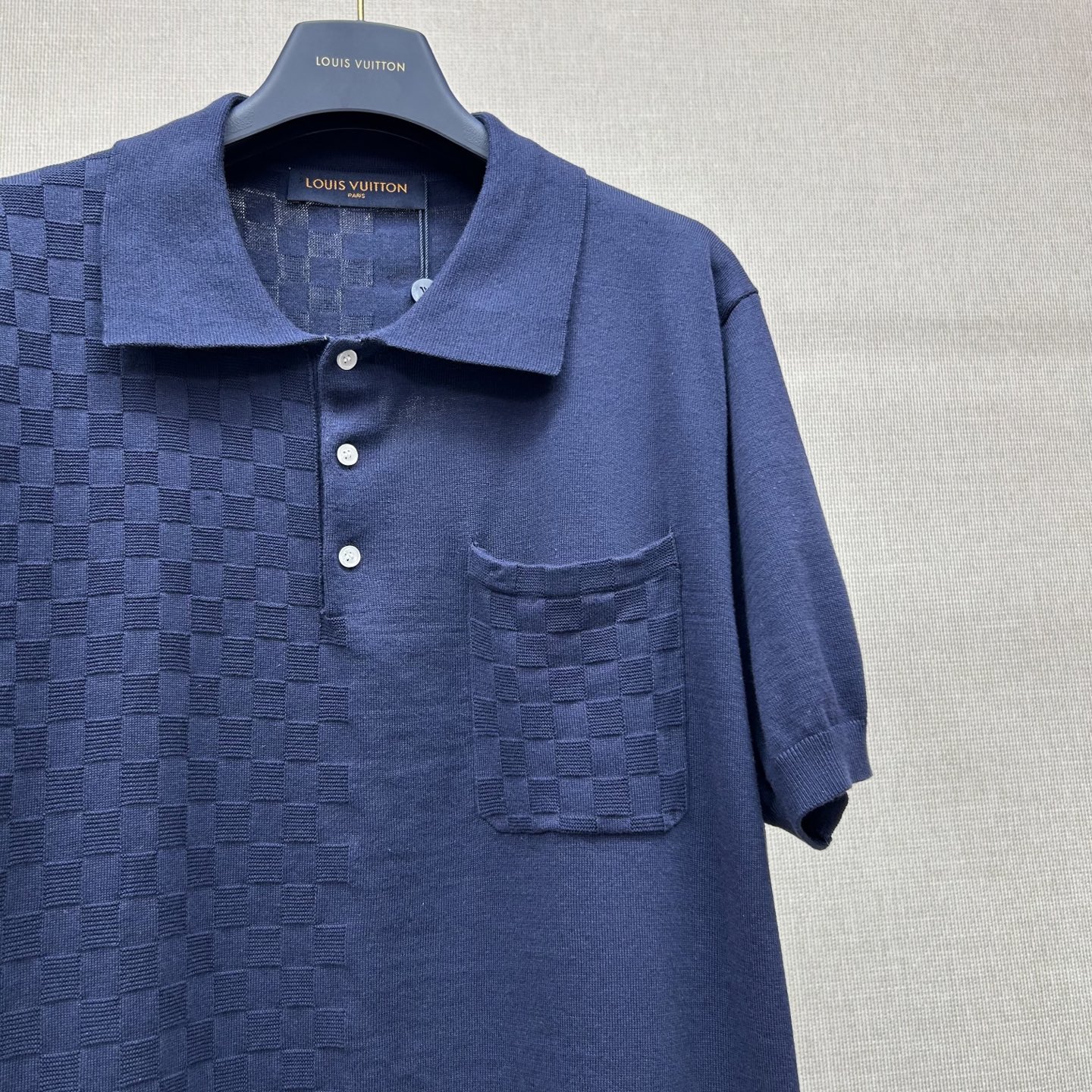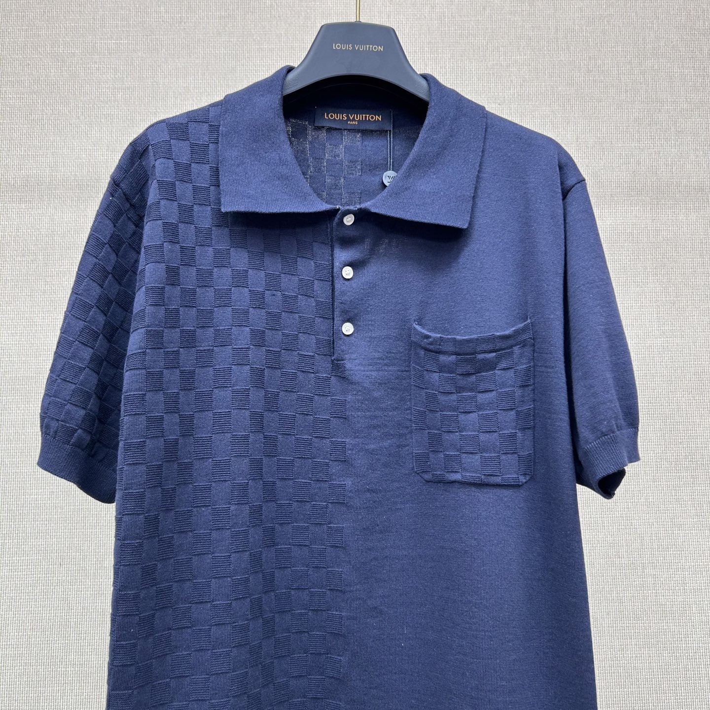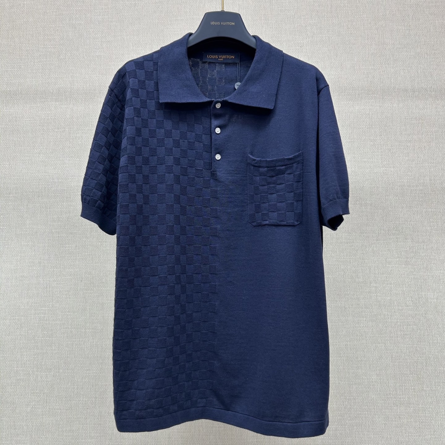 Louis Vuitton patchwork knit polo shirt. Premium quality knit fabric with unique patchwork design.