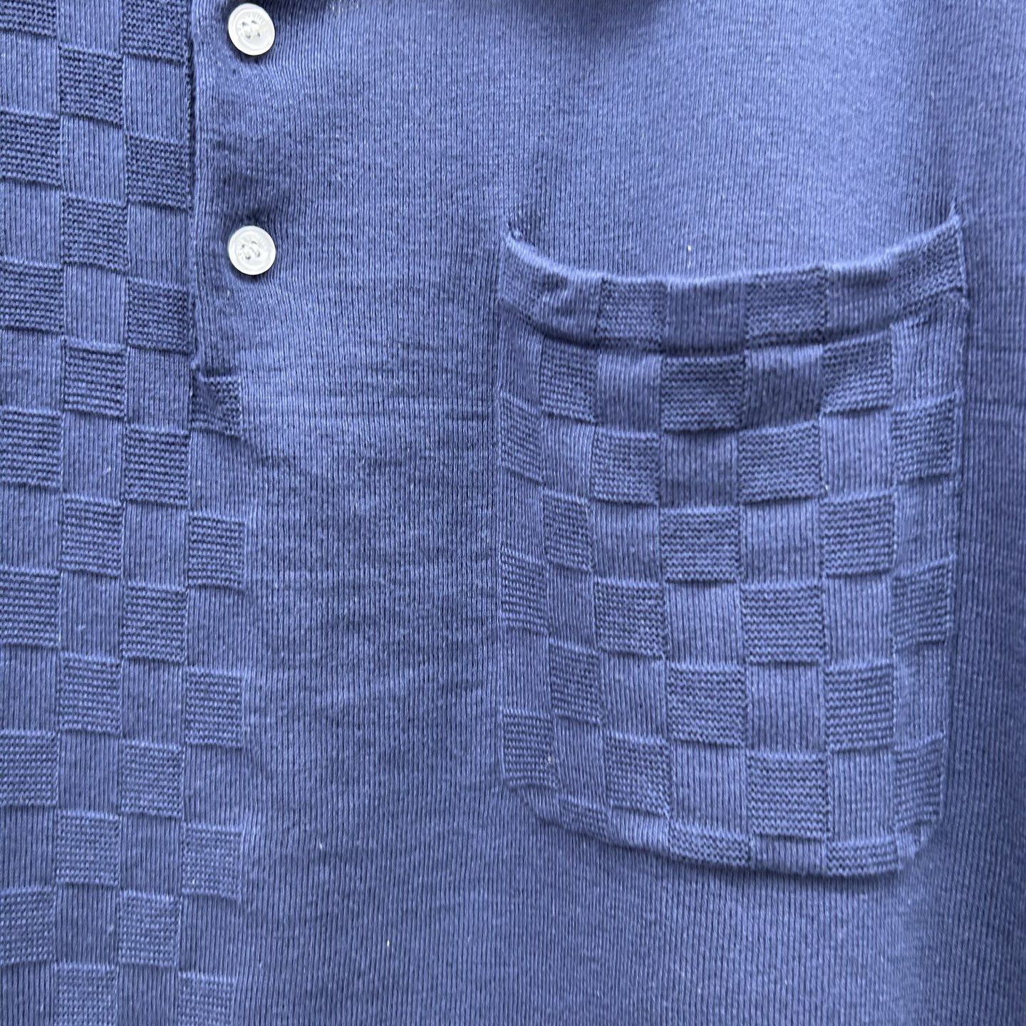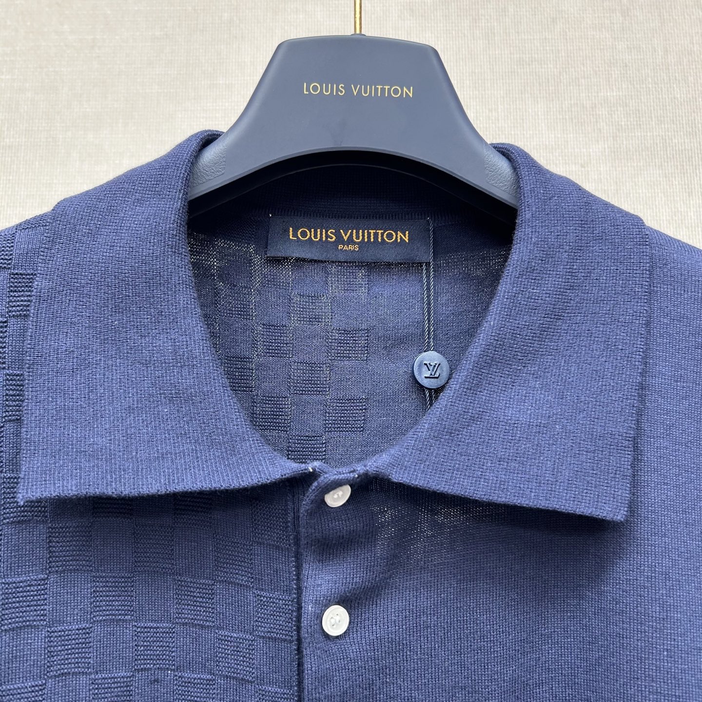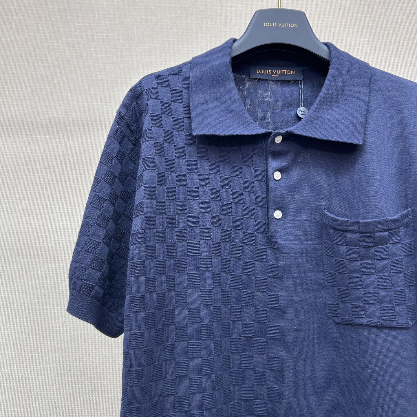 Louis Vuitton patchwork knit polo shirt. Premium quality knit fabric with unique patchwork design.