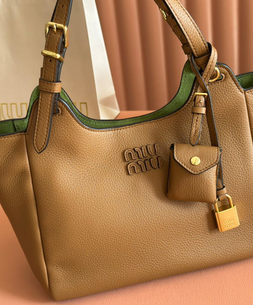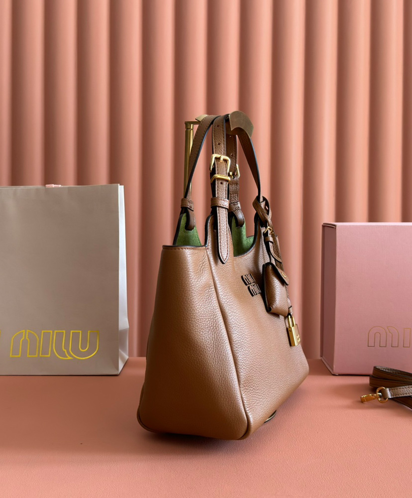 Minimalist multi-functional handbag with adjustable handle. Contrasting colors and textures of supple Nappa leather and suede. Sliding leather handles, detachable shoulder strap, gold-tone hardware. Size: W25.5XH20XD13(cm).