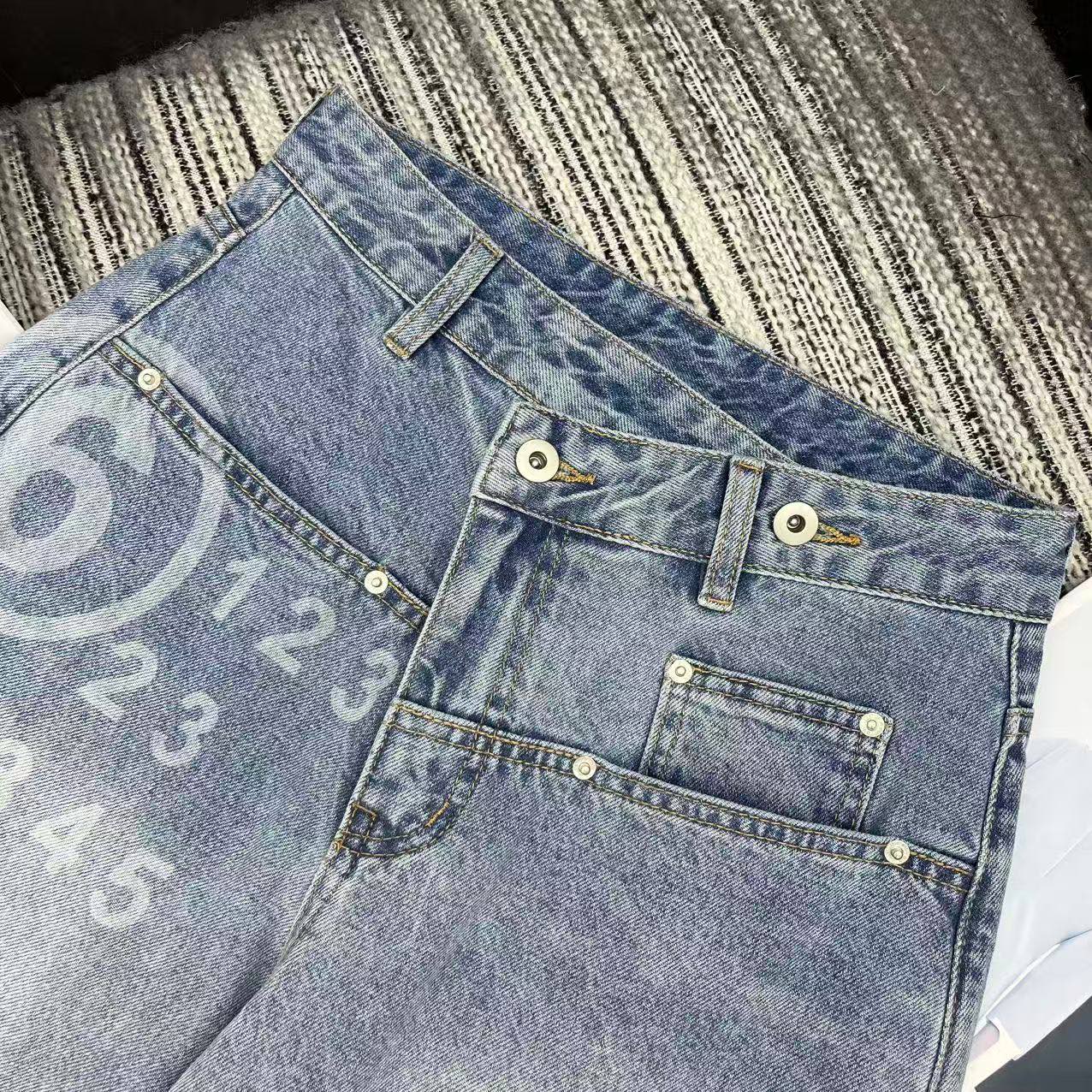 MM6 2026 Spring/Summer Series New Number Print Curved Wide-Leg Jeans. Unique wash color design. Size exchange within 10 days. Available in S/M/L/XL.