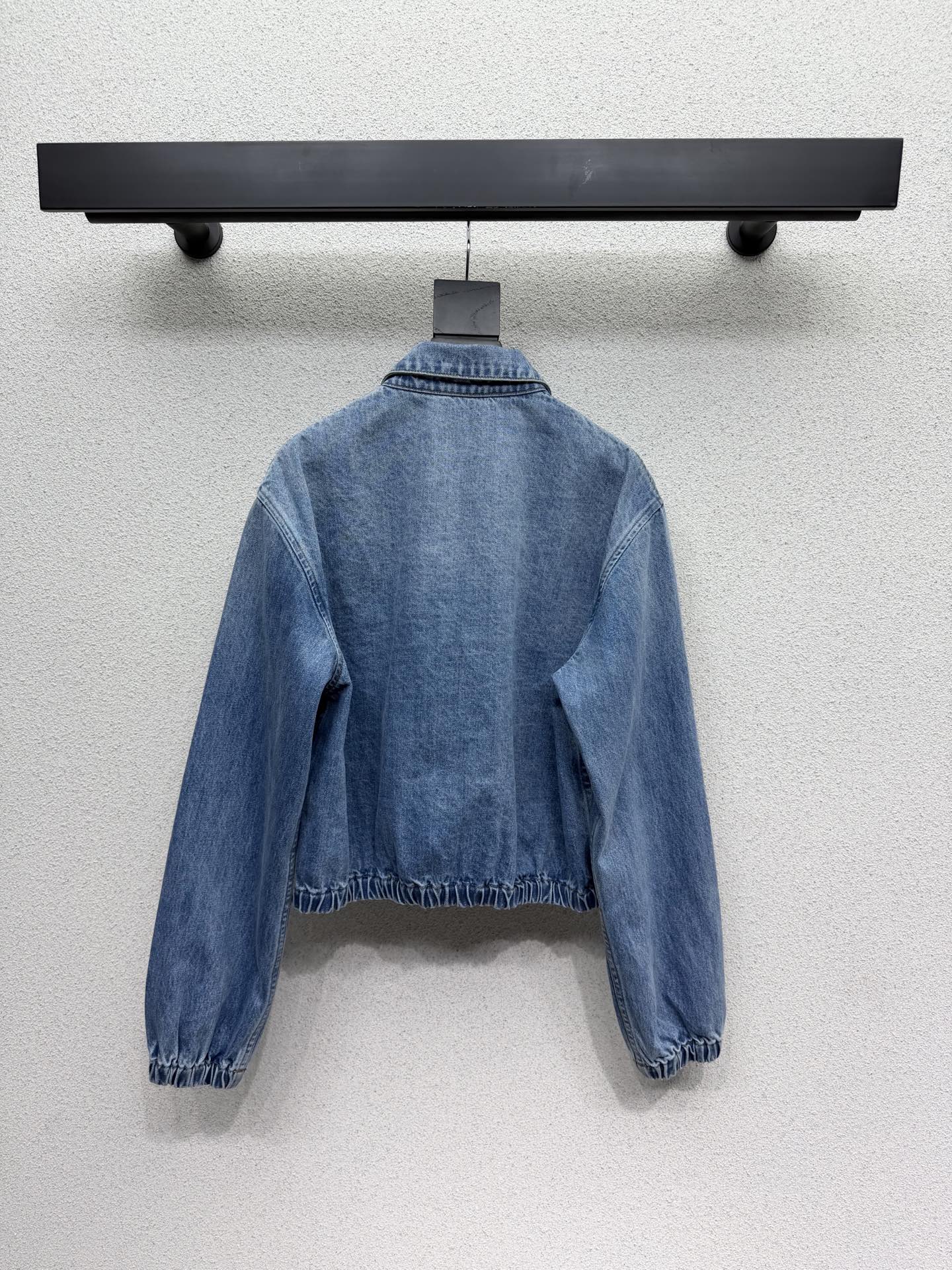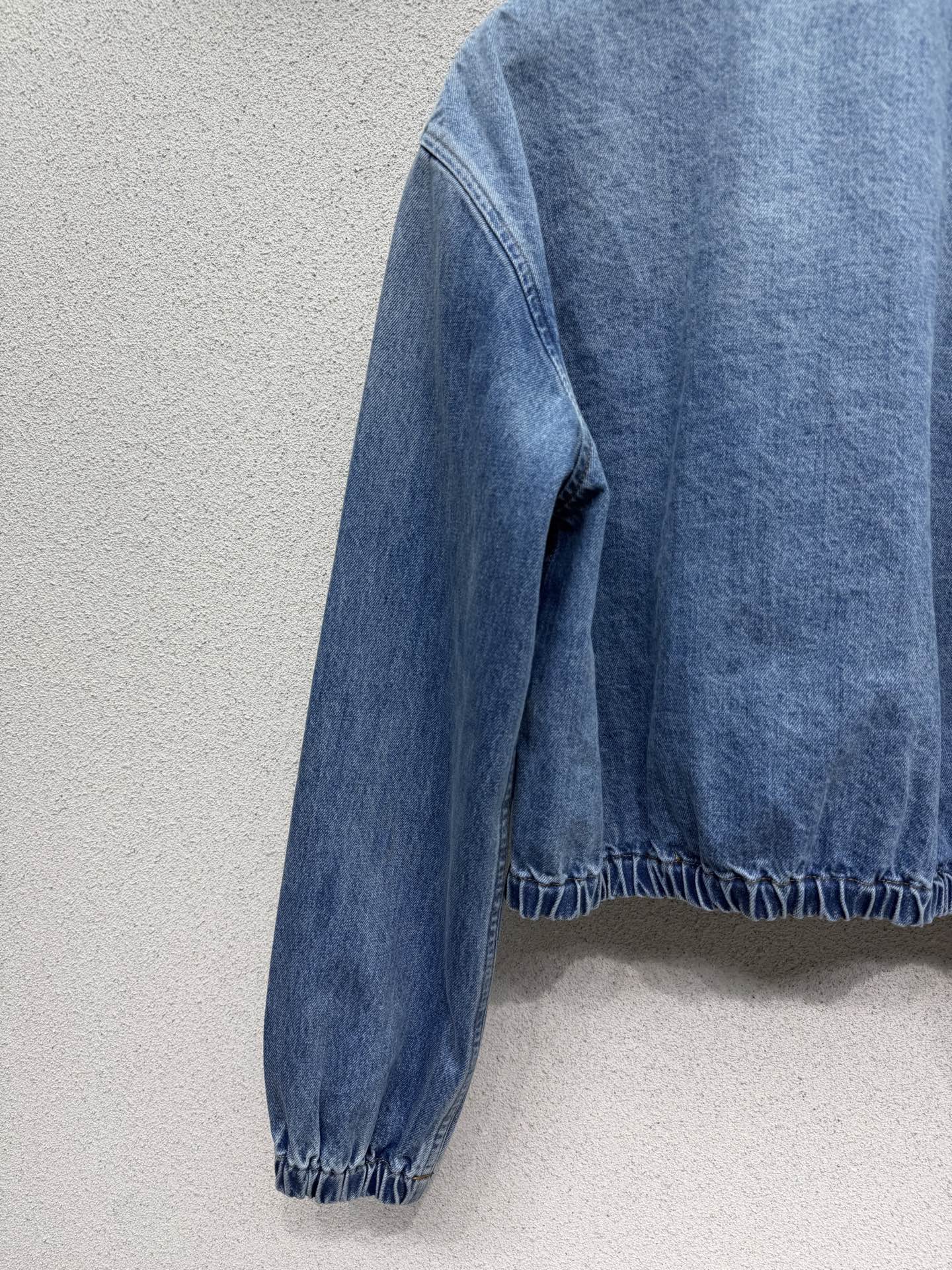 Prada 2026 New Arrival Classic Triangle Logo Denim Jacket. Washed retro fabric with versatile color scheme. Premium cotton material with soft and delicate touch. Durable craftsmanship with neat stitching. High-quality construction. Size: S/M/L.