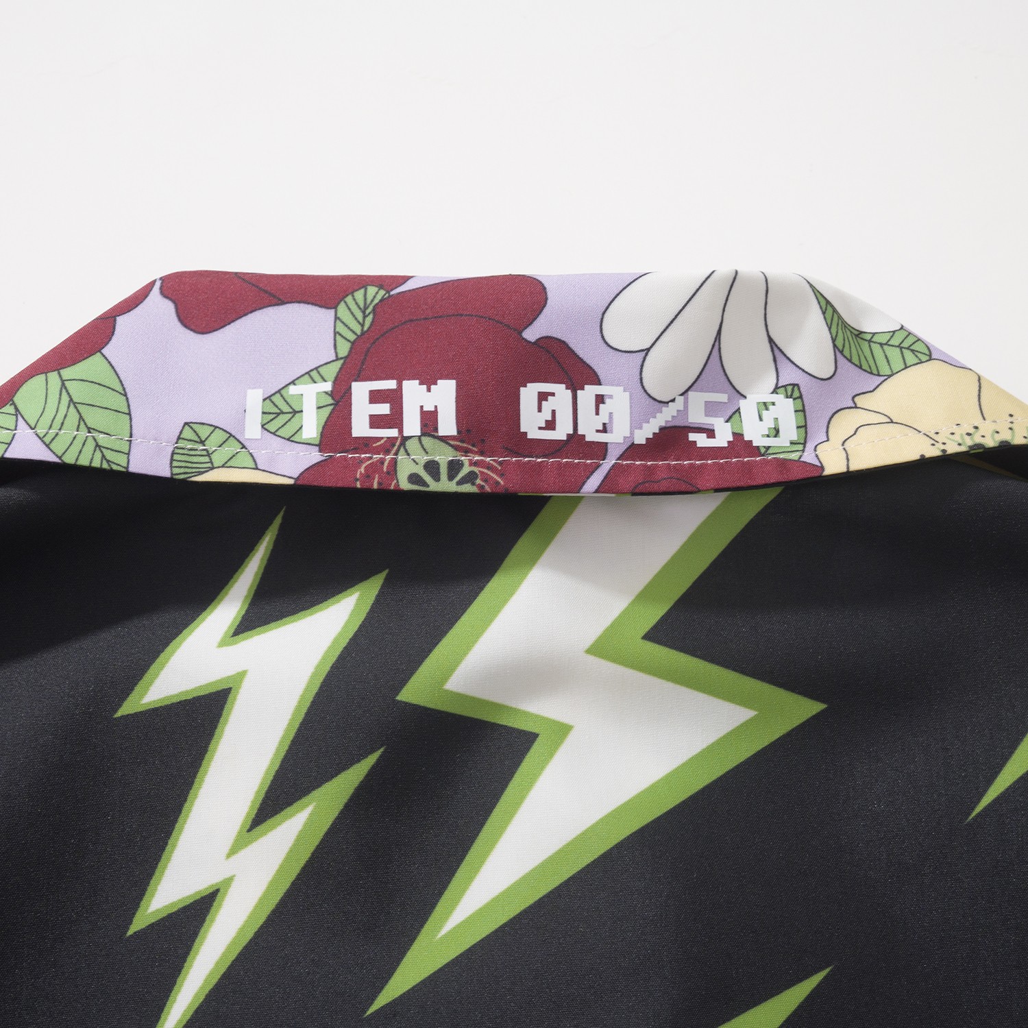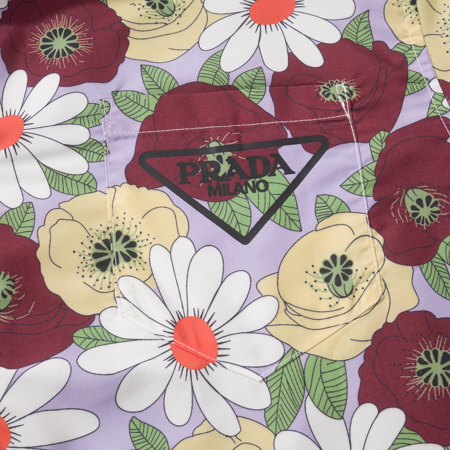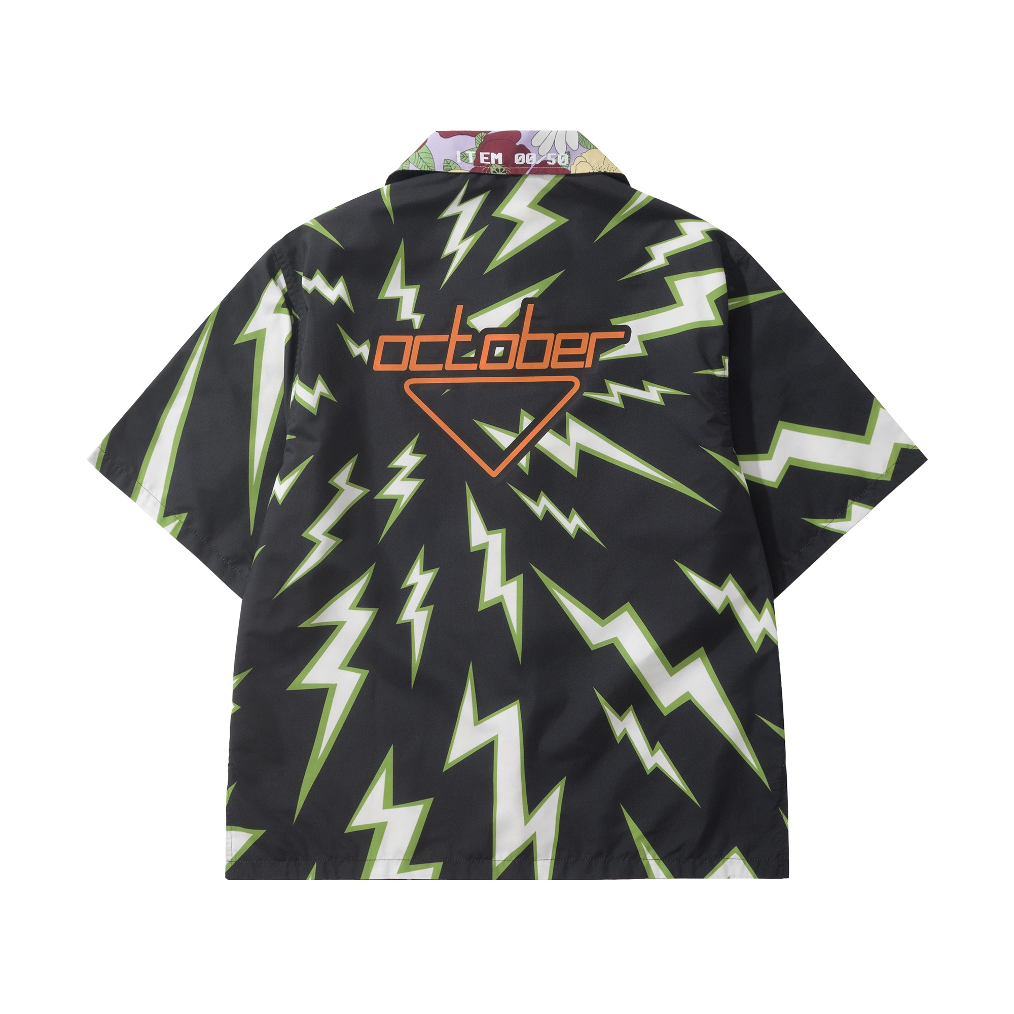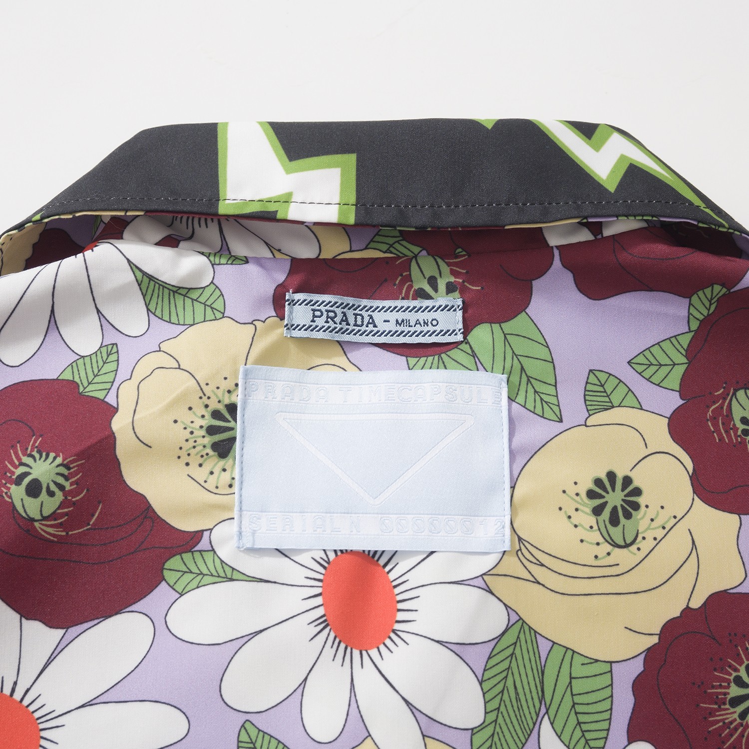 Prada Lightning printed Timecapsule Shirt For Men. Reversible lightning and flower pattern. 100% cotton. Size: S/M/L/XL.