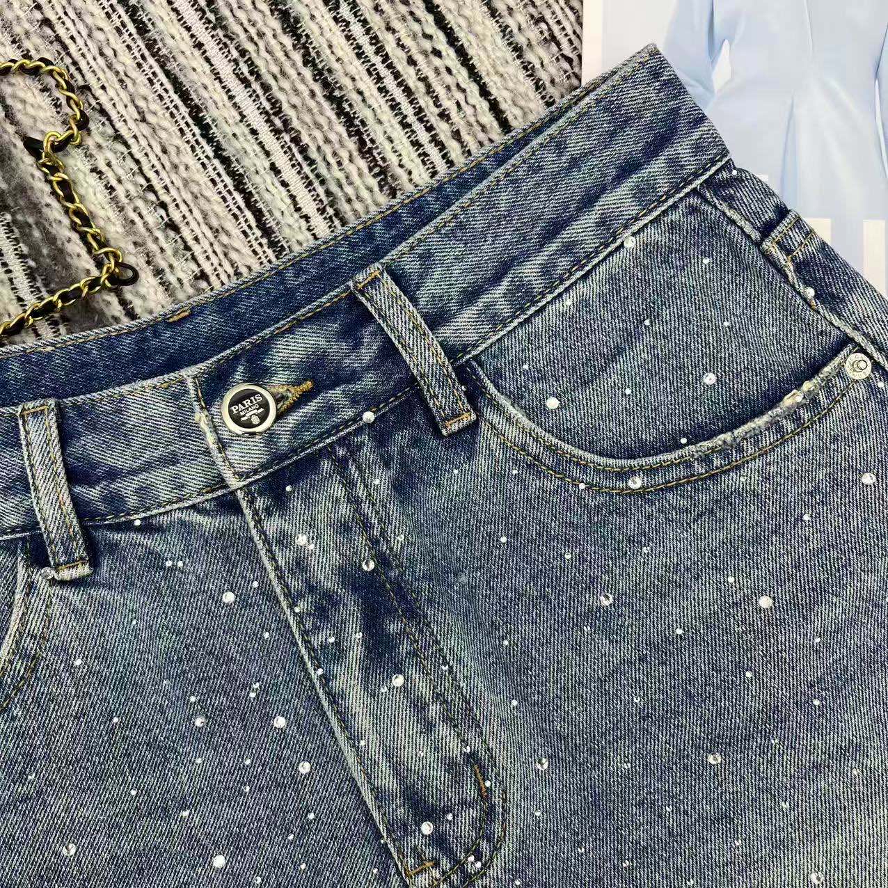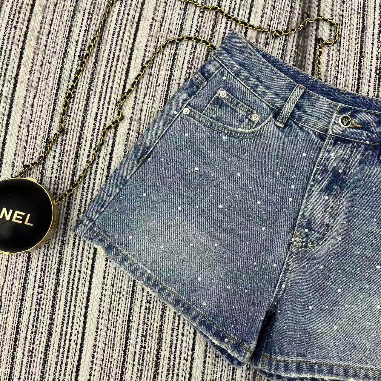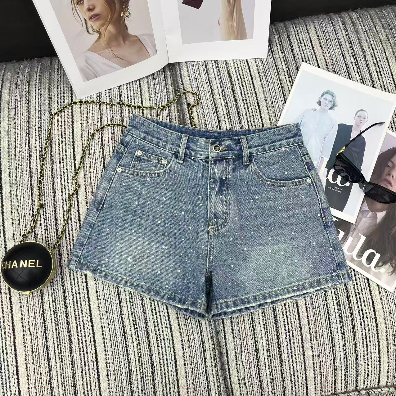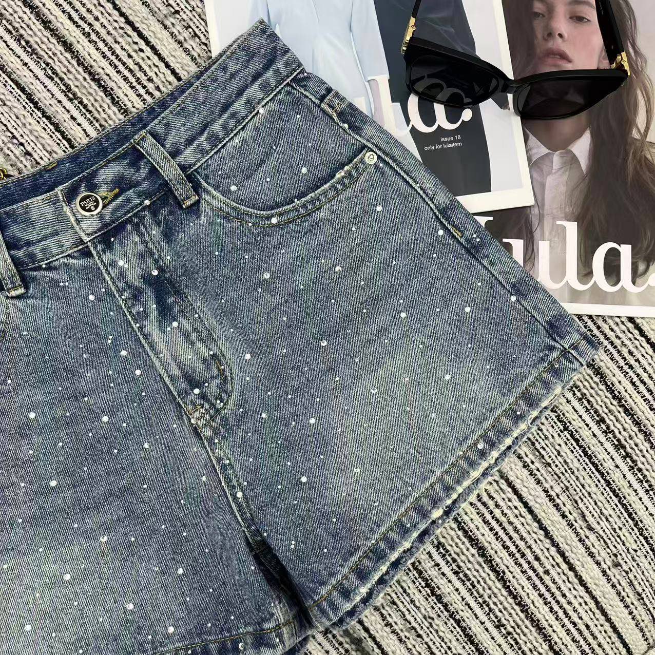 Prada Rhinestone Denim Shorts. 2026 Spring/Summer Collection.