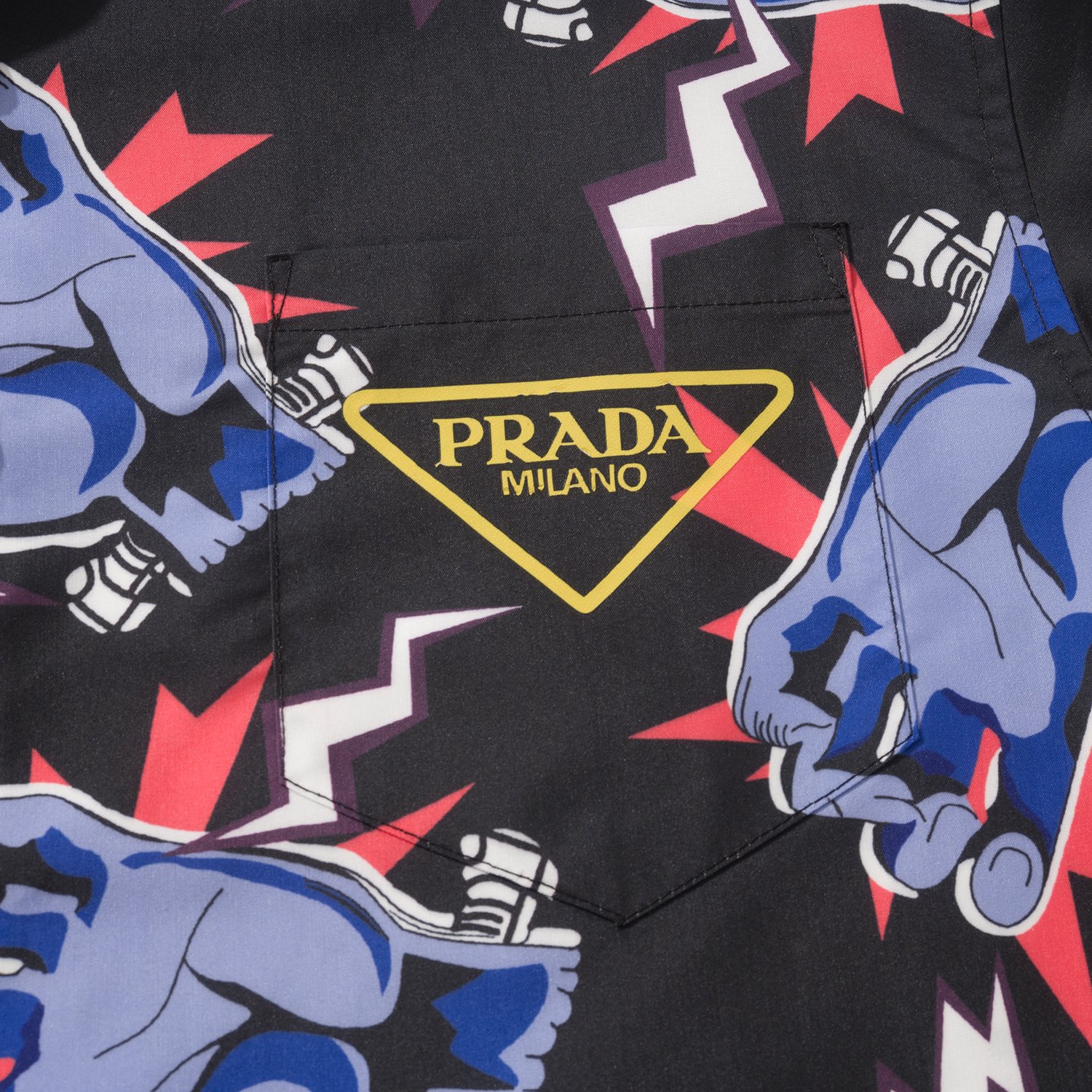 Prada Timecapsule Frankenstein Print Reversible Shirt For Men. Hand-printed and colored. Bowling collar. 100% cotton. Size: S/M/L/XL.