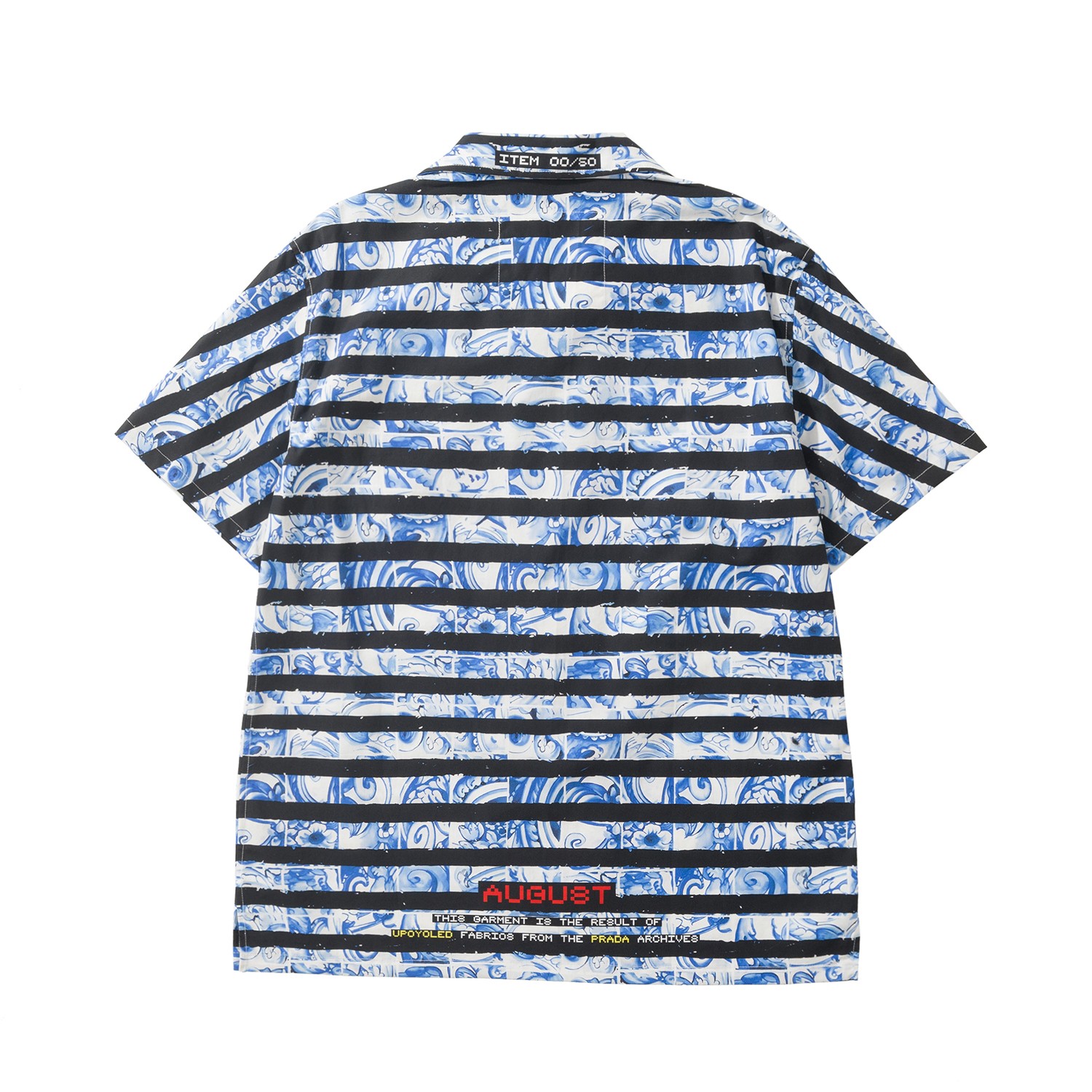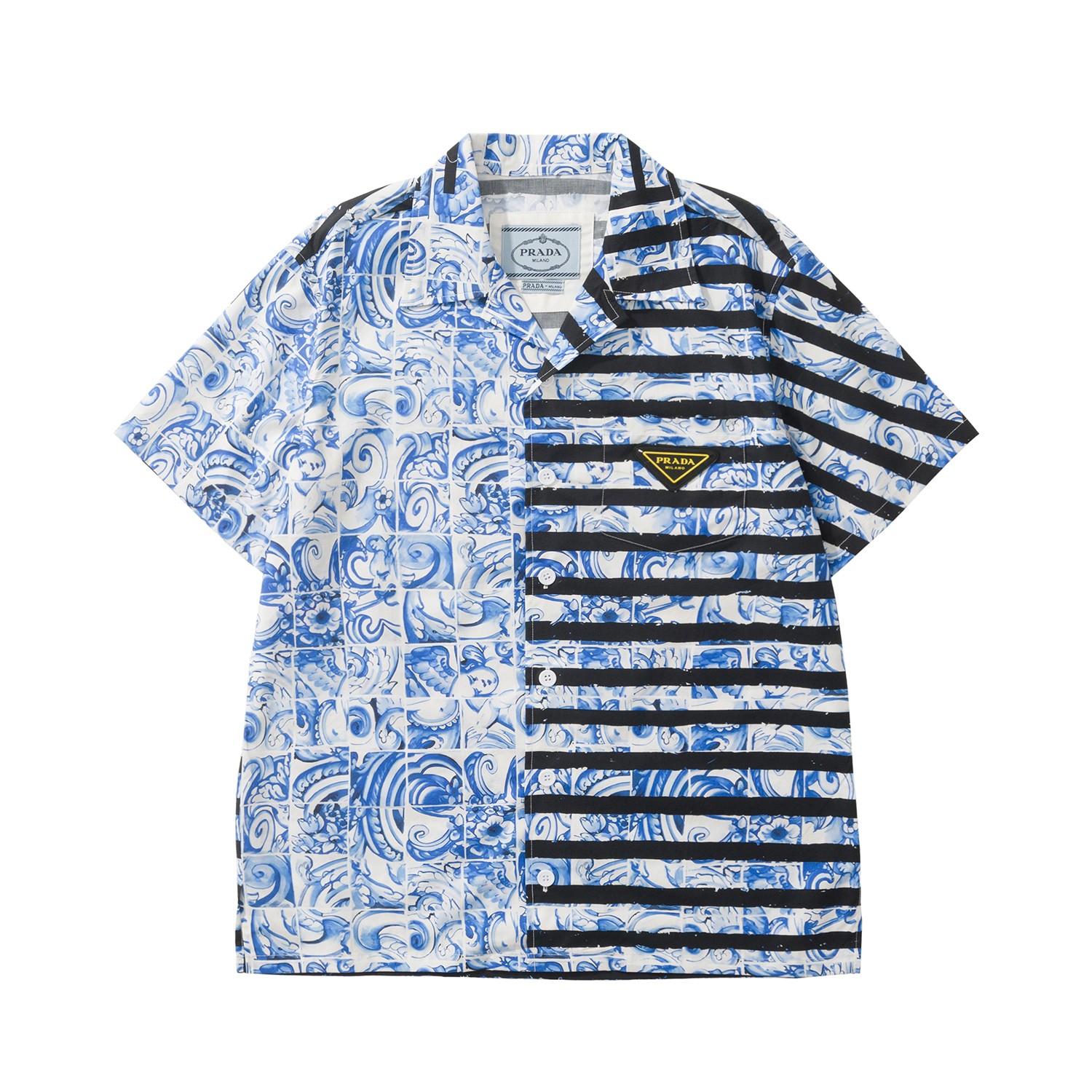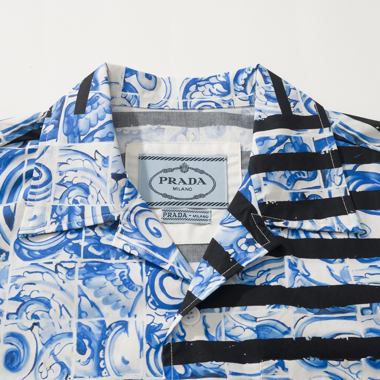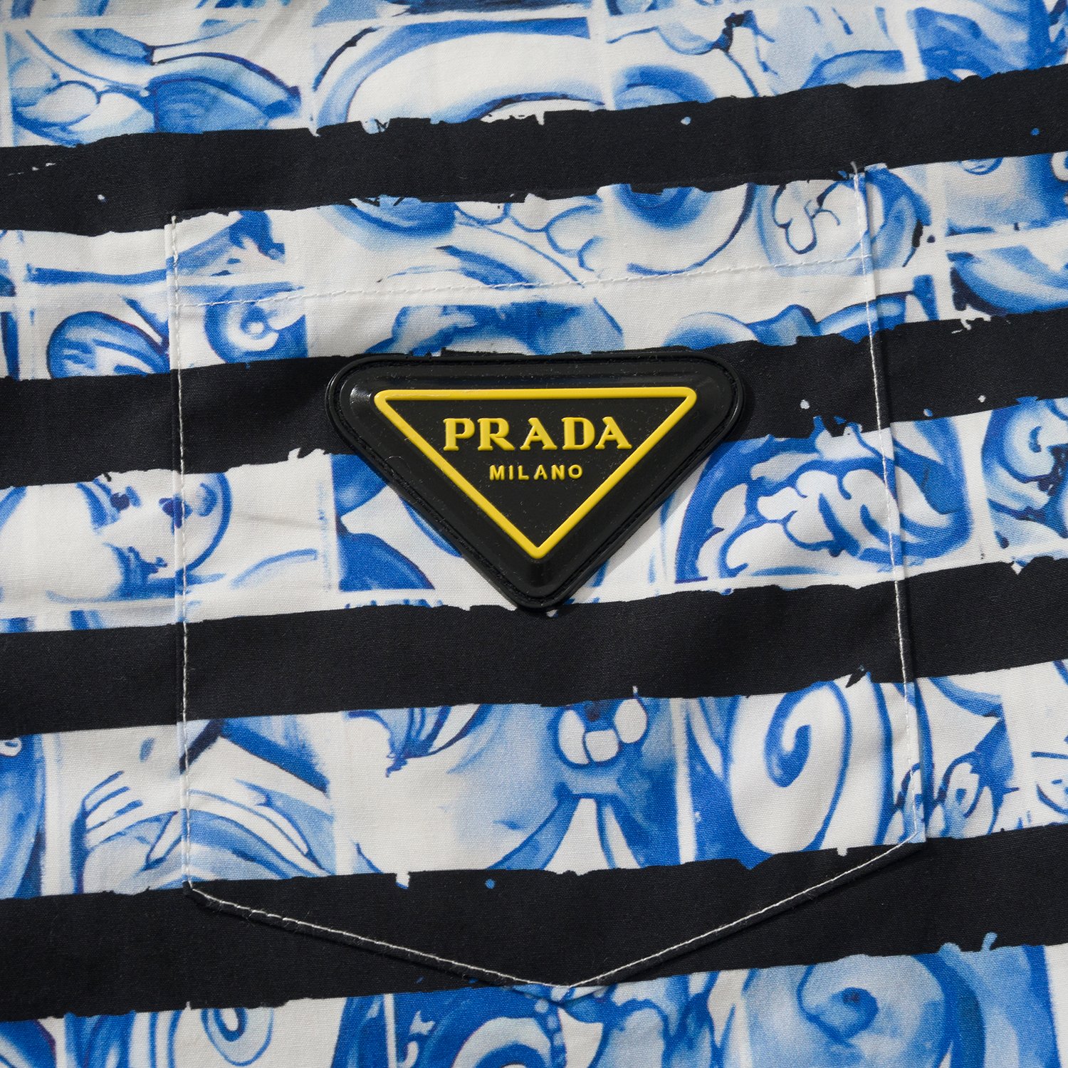 Prada Timecapsule printed cotton shirt For Men. Striped wave print short sleeve shirt. 100% cotton. Size: 46/48/50/52.