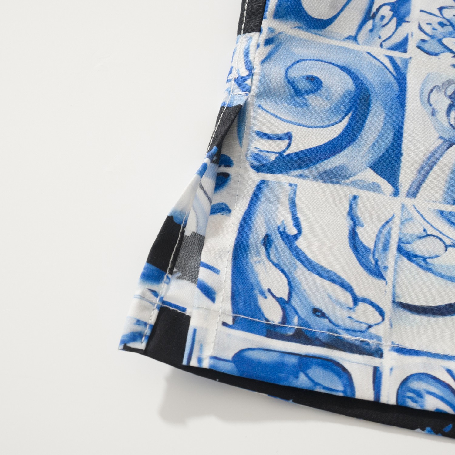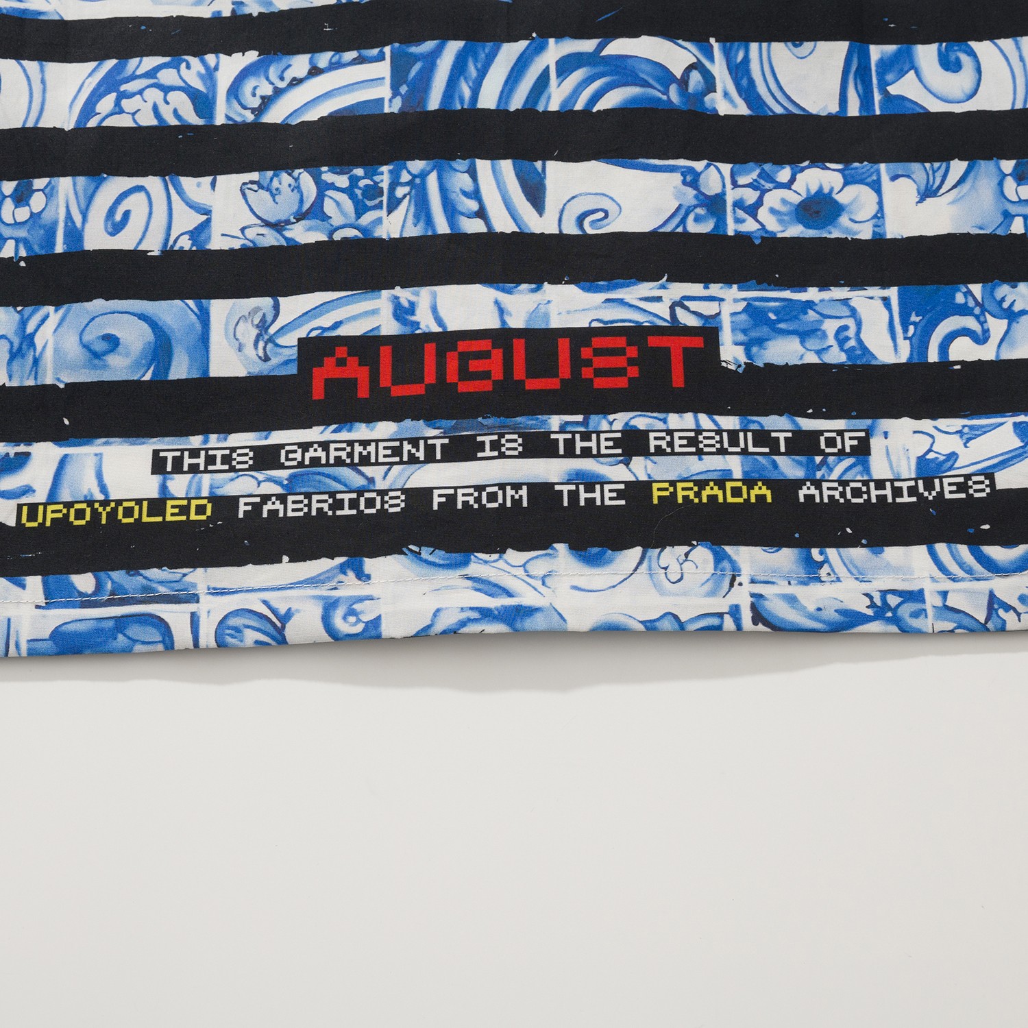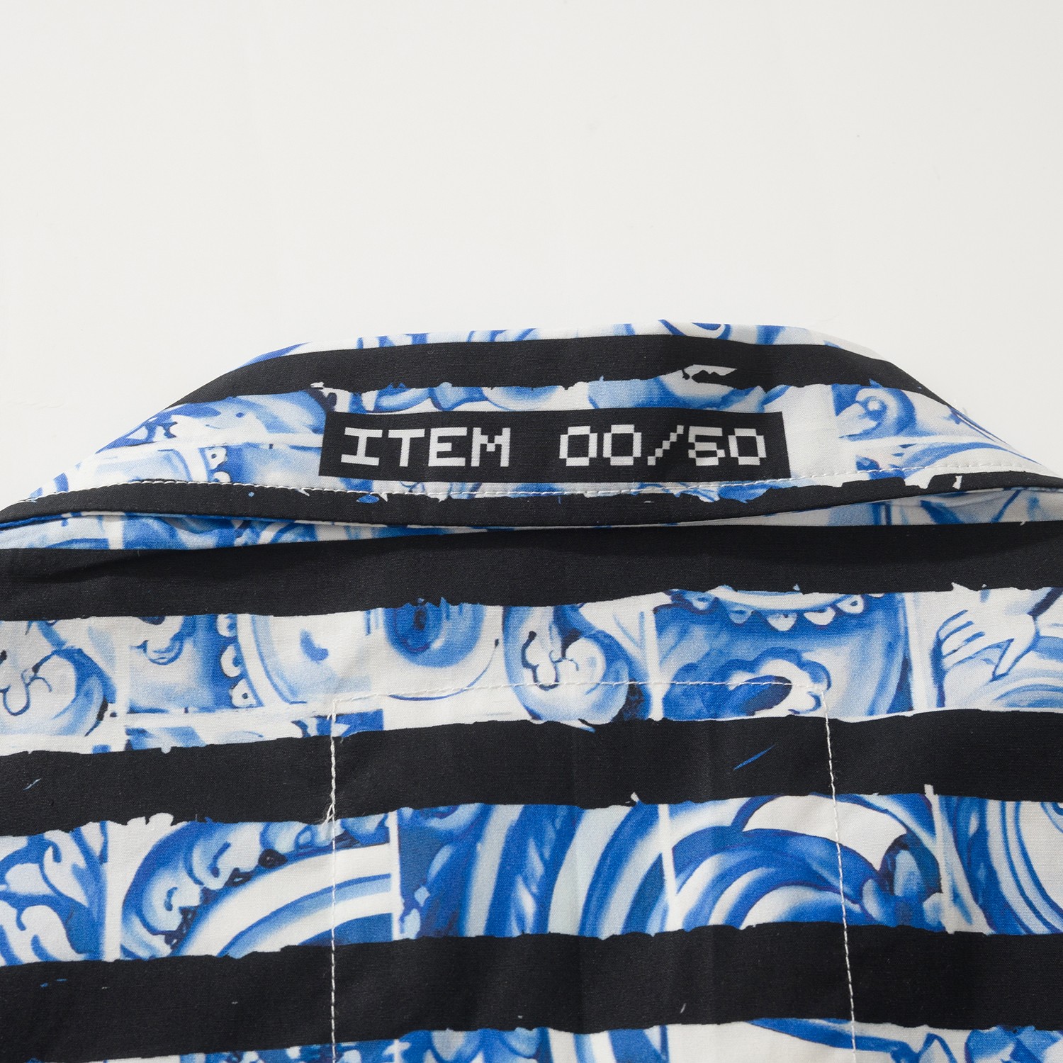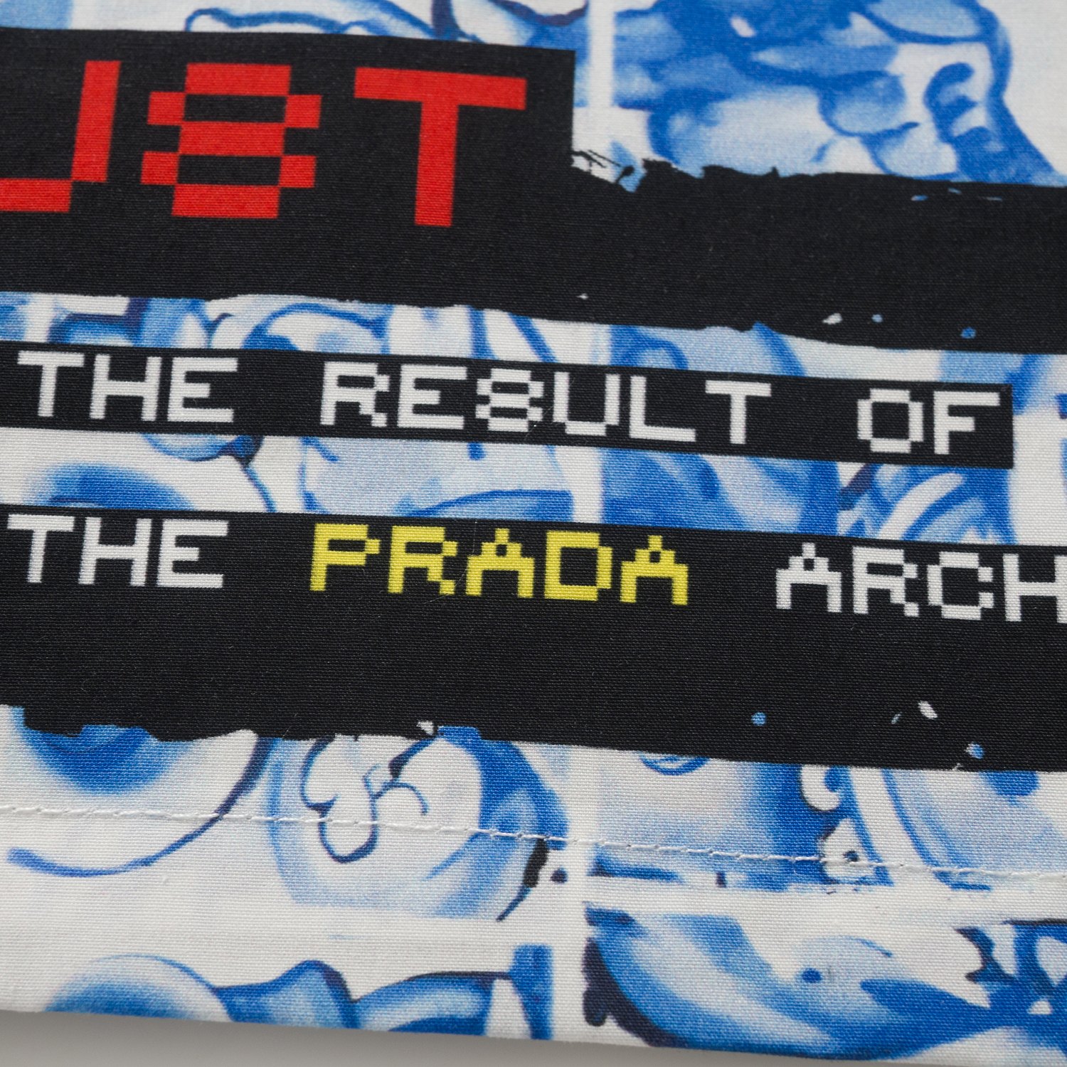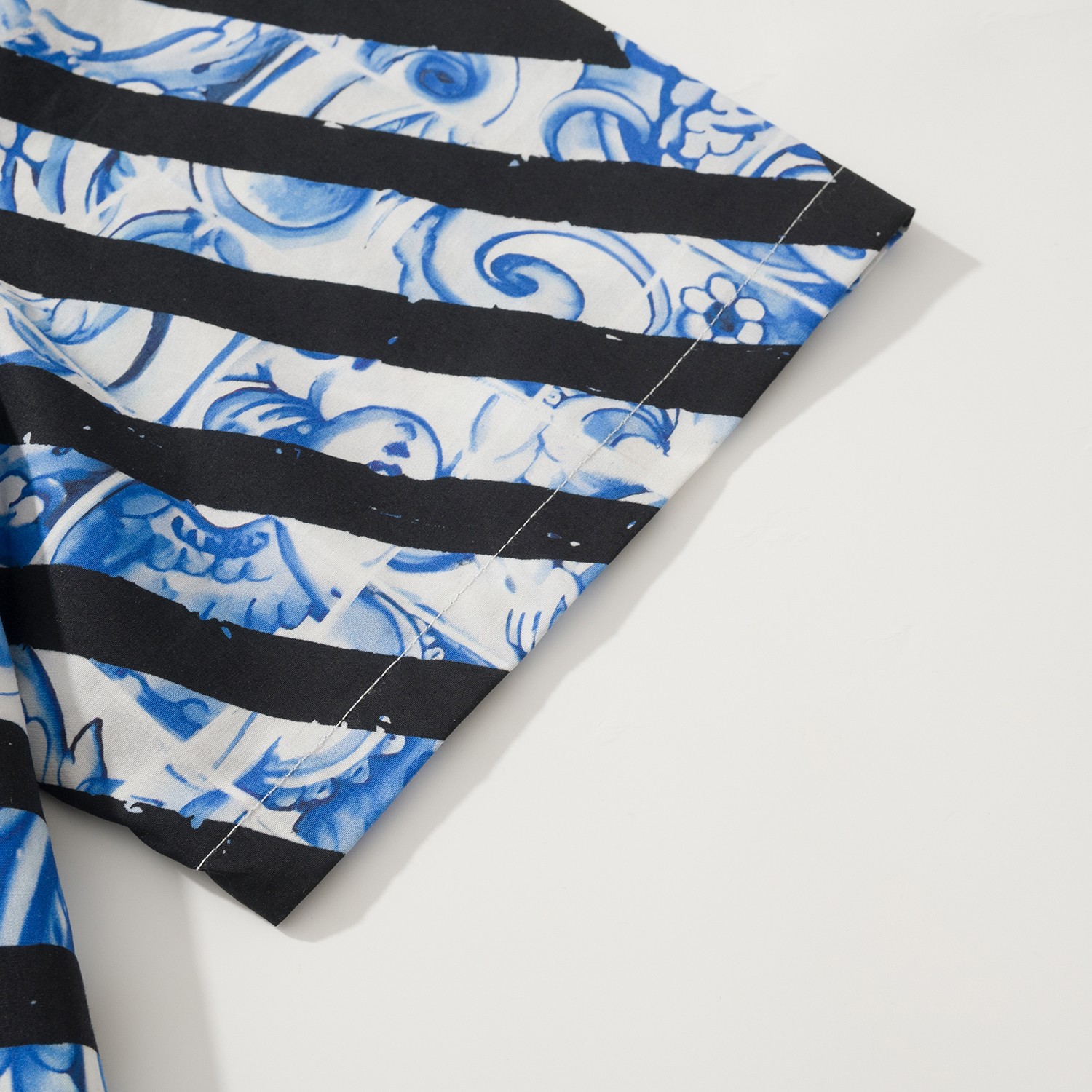 Prada Timecapsule printed cotton shirt For Men. Striped wave print short sleeve shirt. 100% cotton. Size: 46/48/50/52.