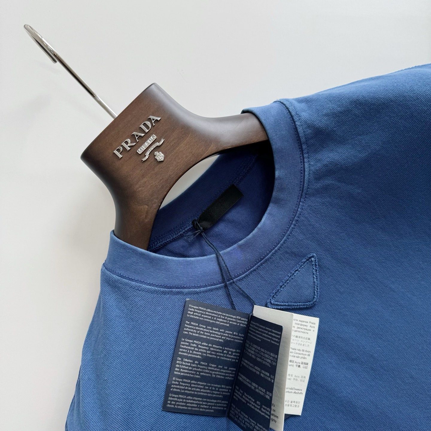 Prada 26SS triangle logo wash long sleeve. 230g premium cotton. Wash distressed vintage finish.