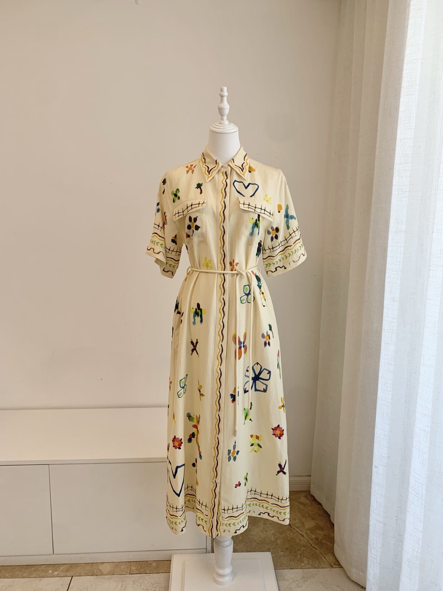 Alem rayon linen shirt dress. Premium artificial silk and linen blend fabric. Elegant shirt dress design. Available in sizes 6, 8, 10, 12.