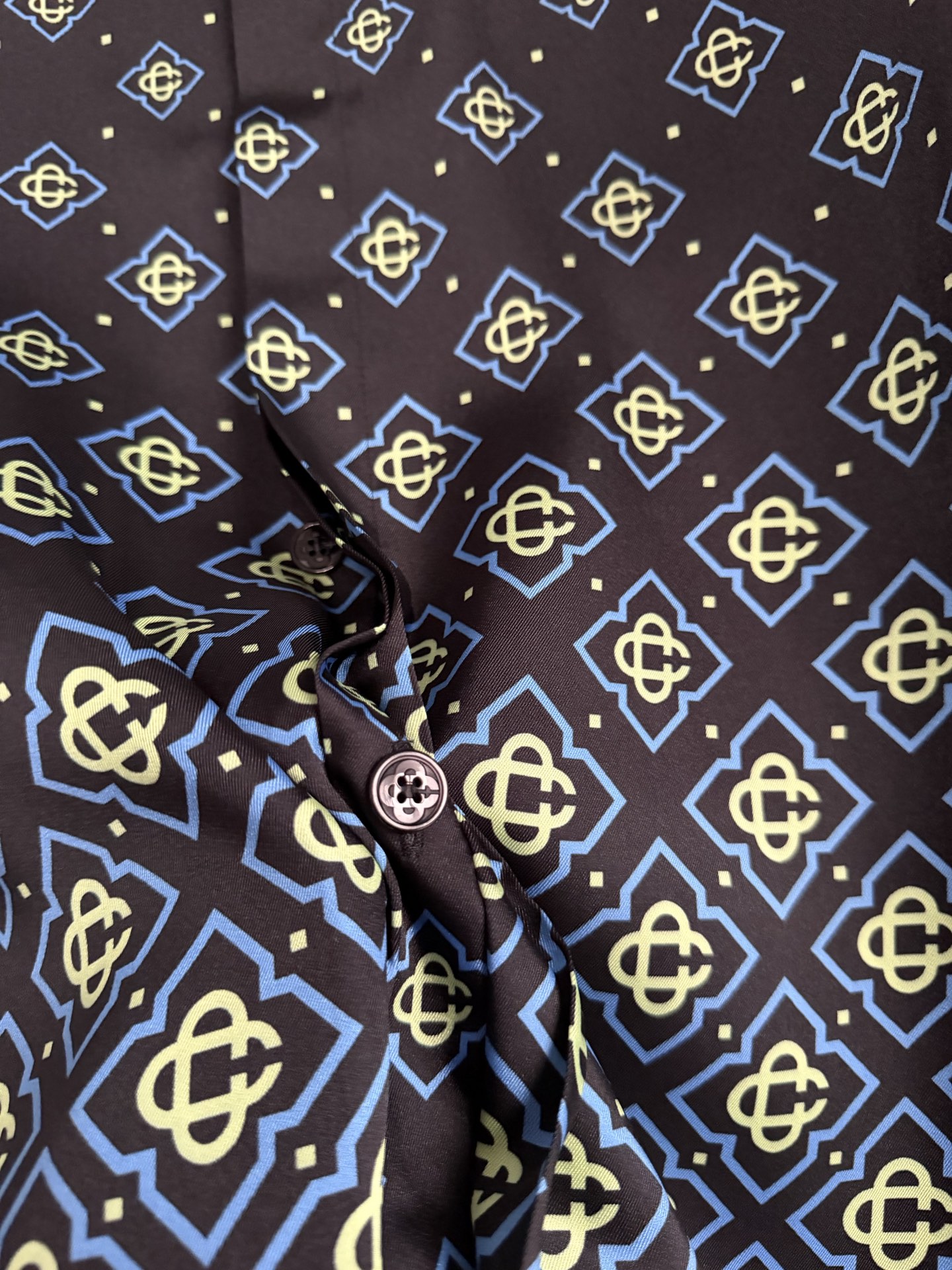 CASA BLANCA 2026SS cross-pattern silk short-sleeve shirt. Custom silk fabric with high-definition digital directå–·print, laser positioning cutting, custom buttons. Recommended dry clean or hand wash. Elegant and stylish summer shirt.