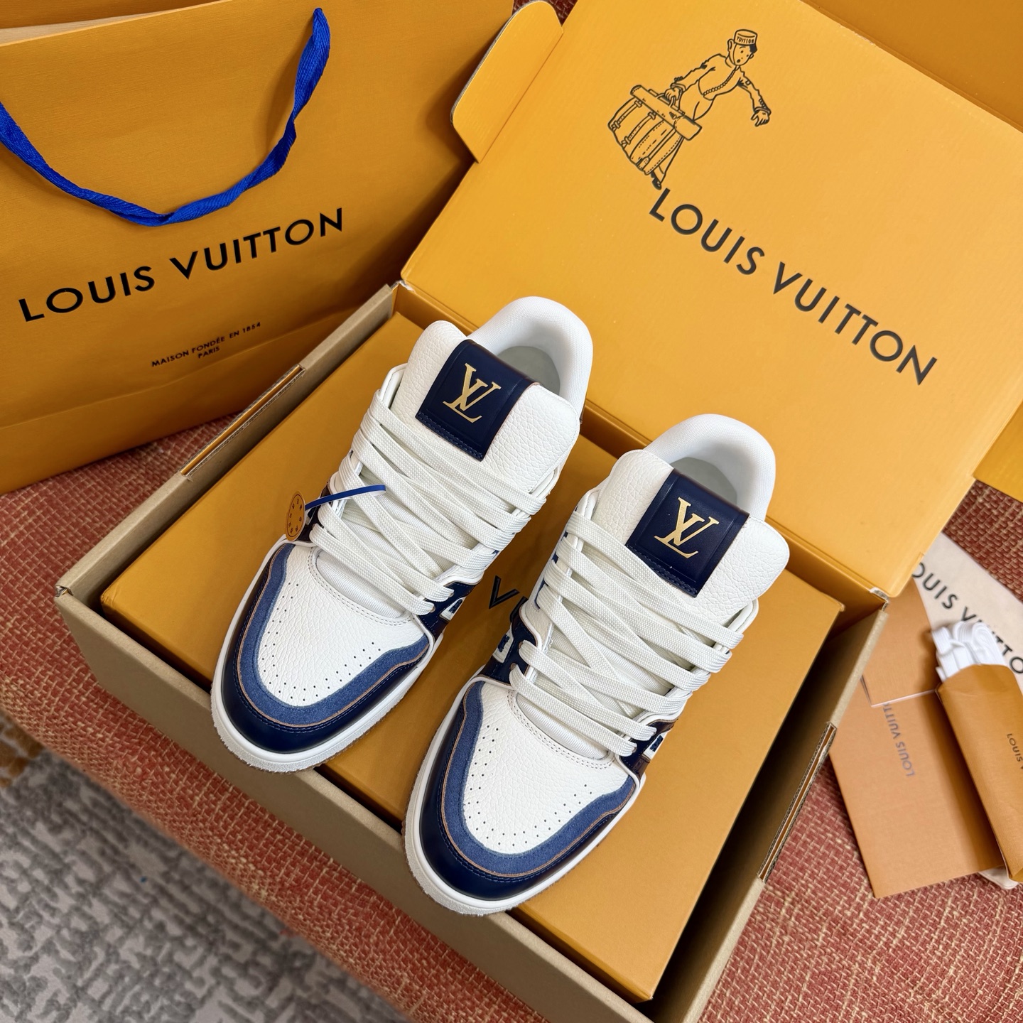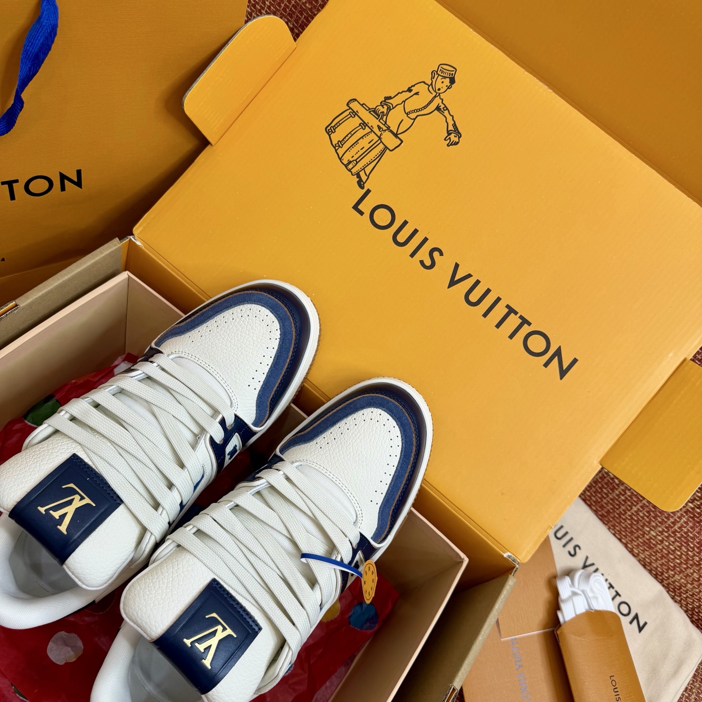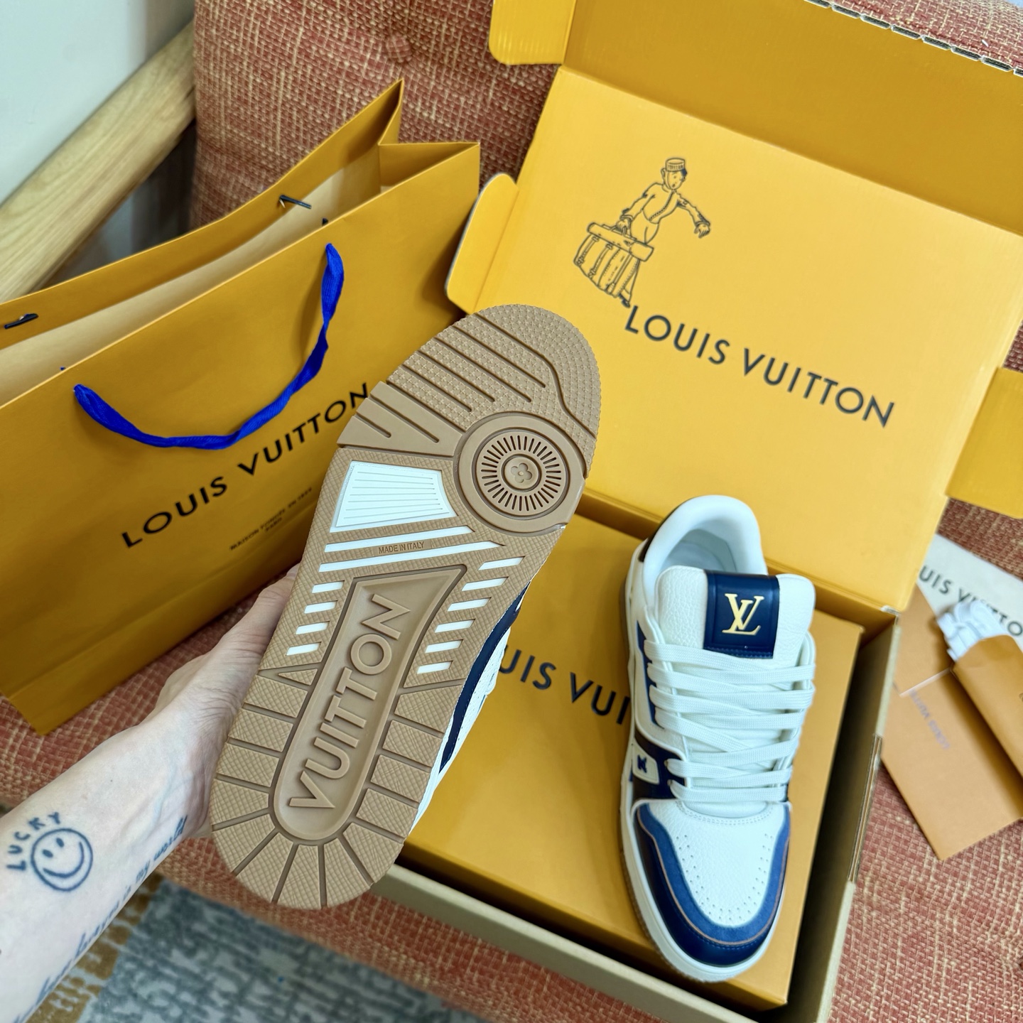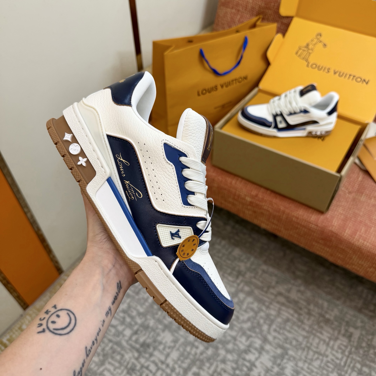Louis Vuitton Trainer sneakers. Top quality replica, original pattern research for 3 months. Various wash and color treatment techniques. Each square position matches original.