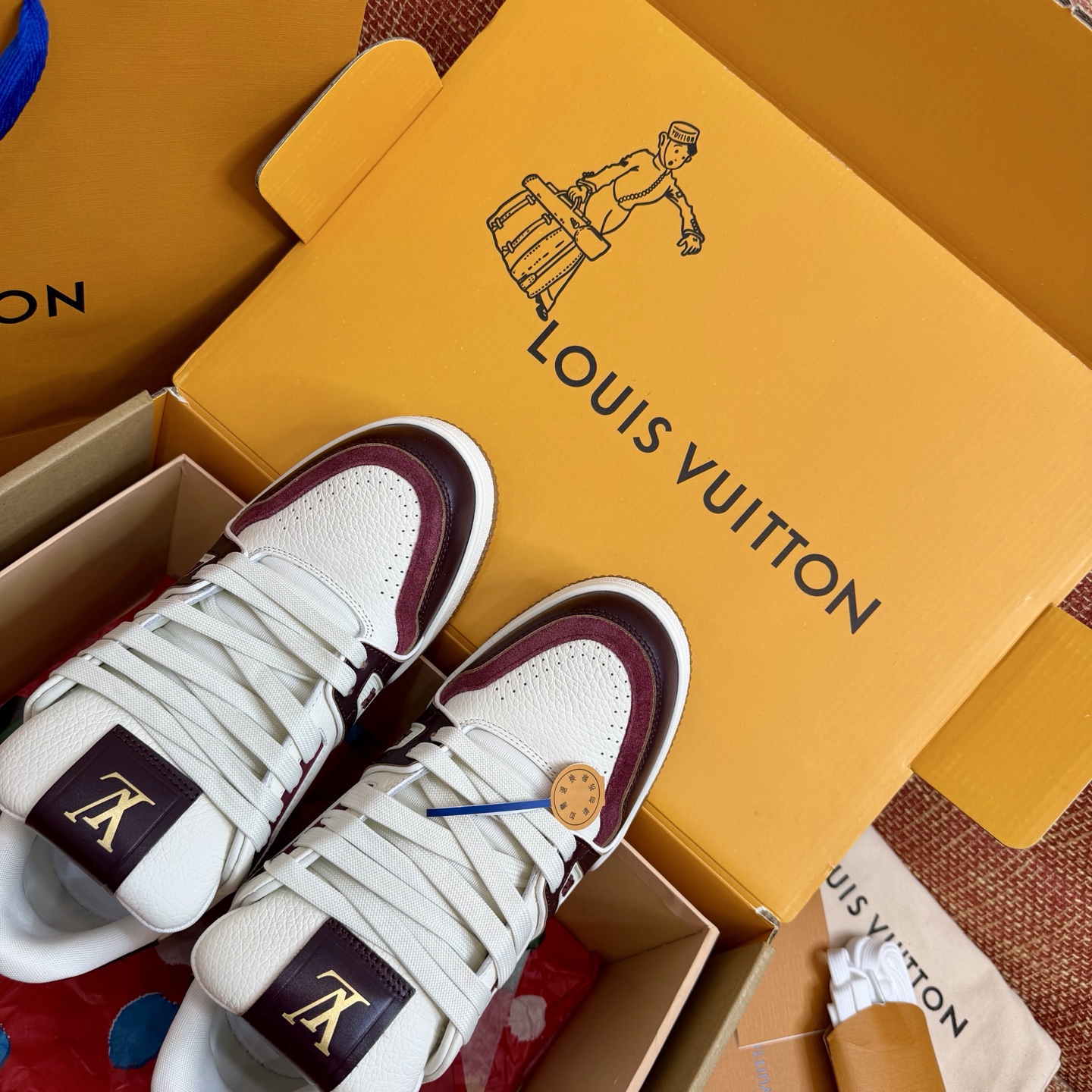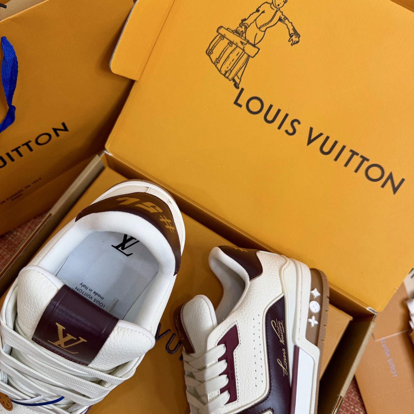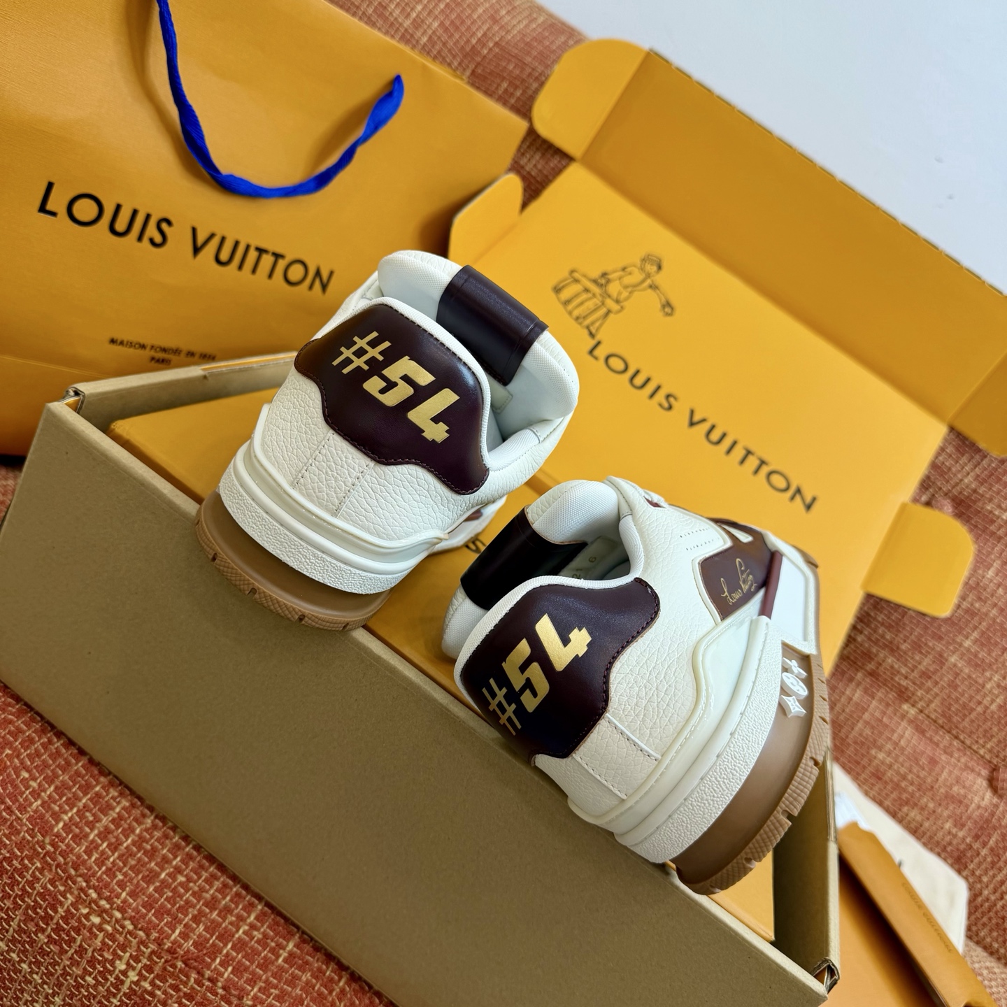 Louis Vuitton Trainer sneakers. Top quality replica, original pattern research for 3 months. Various wash and color treatment techniques. Each square position matches original.