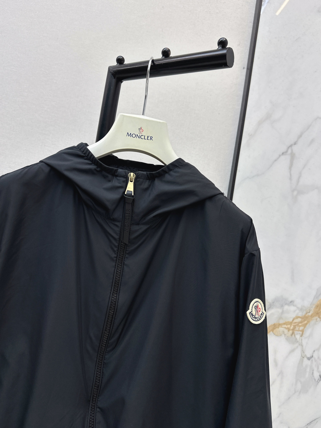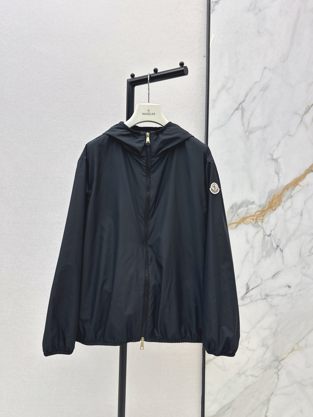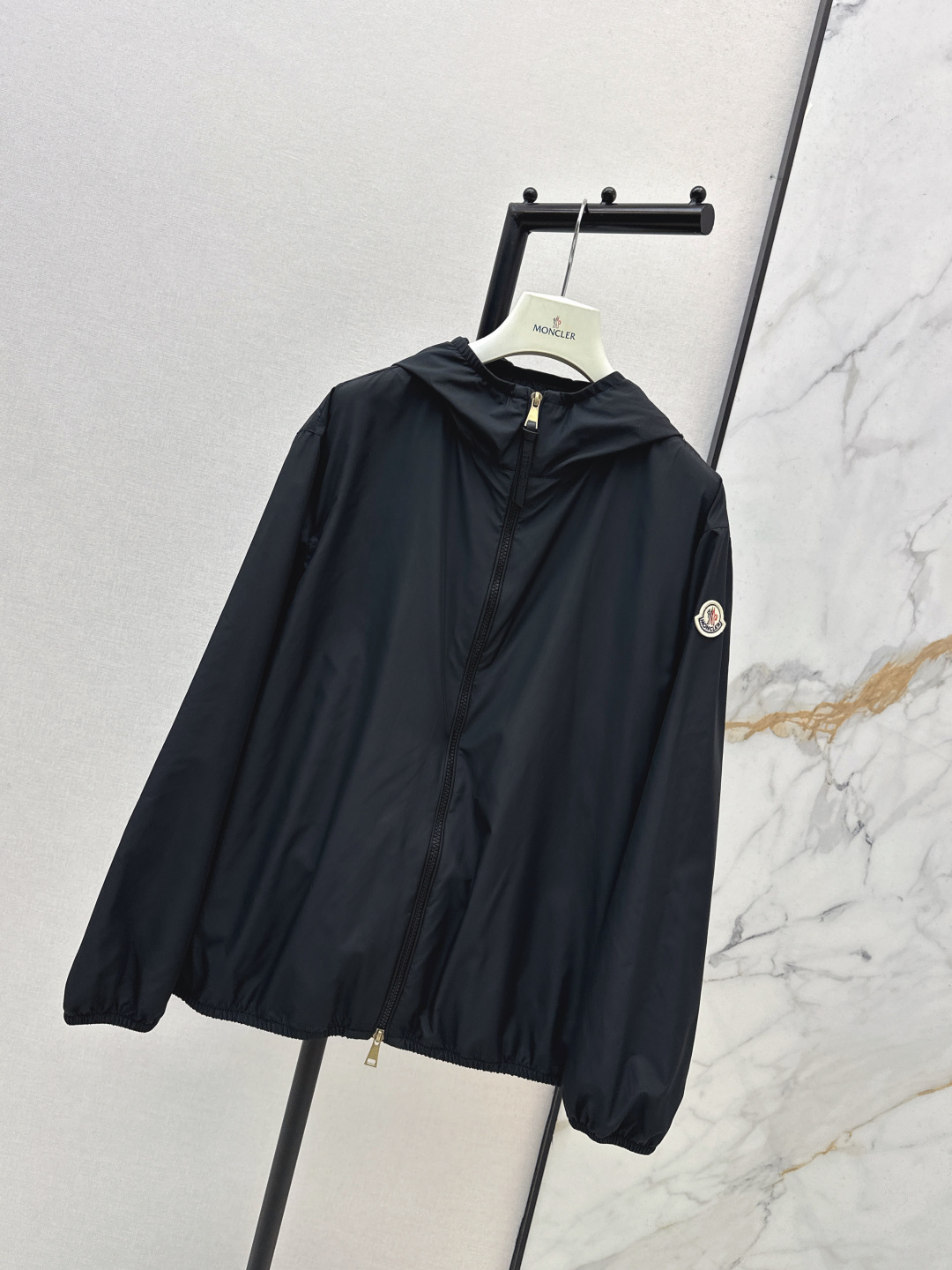 Replica Moncler 26SS hooded windbreaker jacket for women. Black colorway. Lightweight and practical windbreaker fabric. Stylish and versatile, perfect for daily wardrobe. Sizes: 0 / 1 / 2.