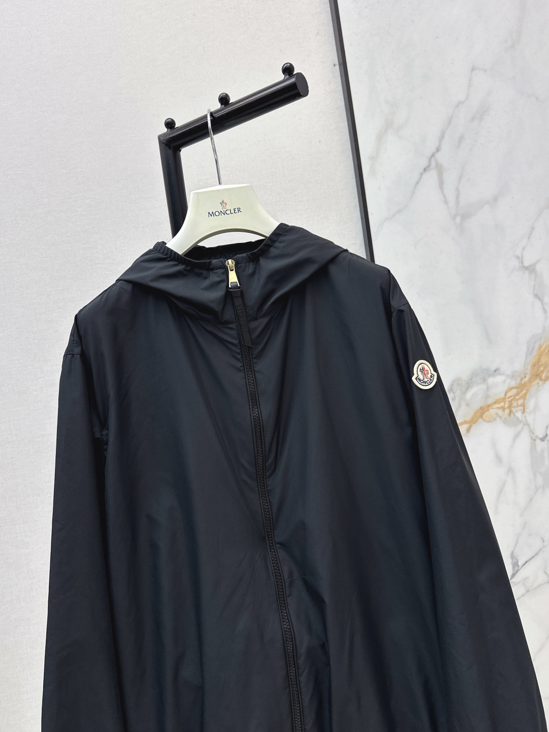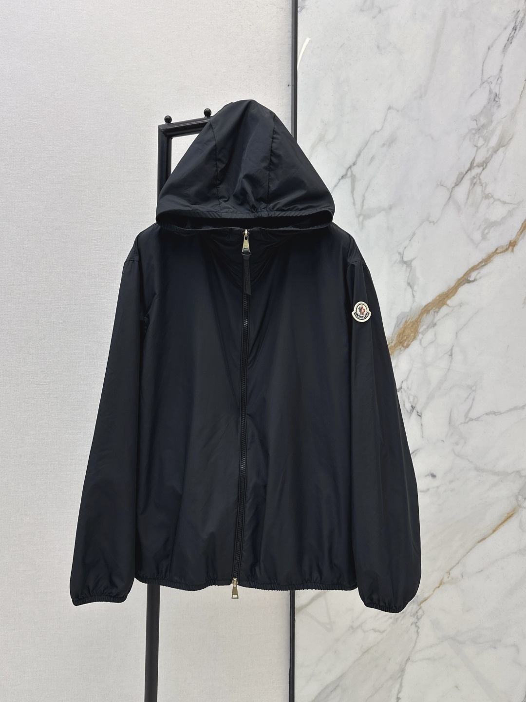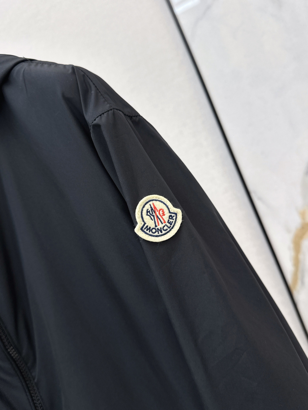 Replica Moncler 26SS hooded windbreaker jacket for women. Black colorway. Lightweight and practical windbreaker fabric. Stylish and versatile, perfect for daily wardrobe. Sizes: 0 / 1 / 2.