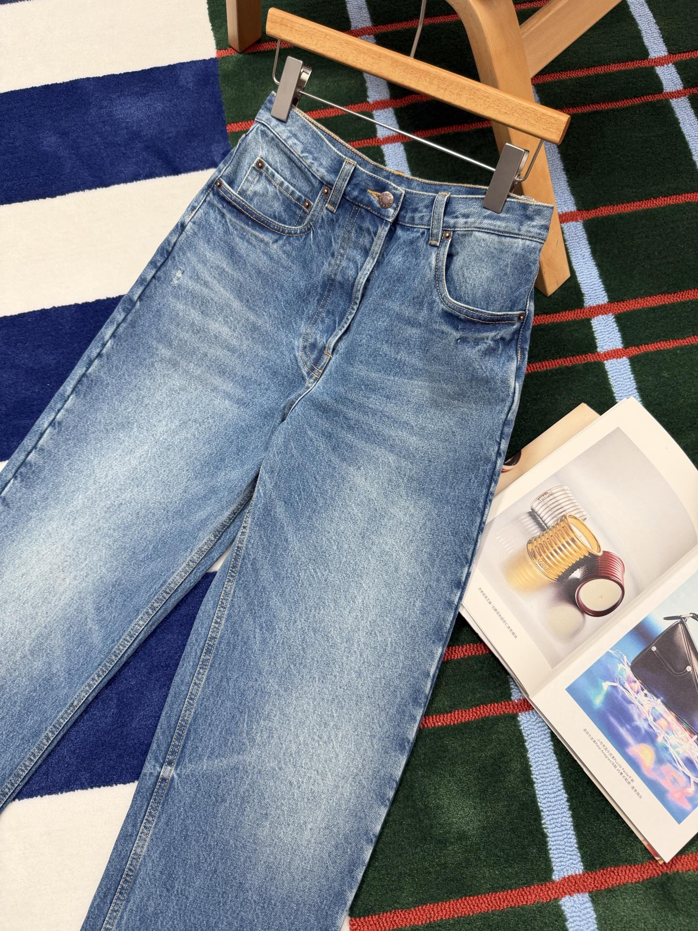 Replica Prada Wide-leg denim jeans For Women. Size: S/M/L.