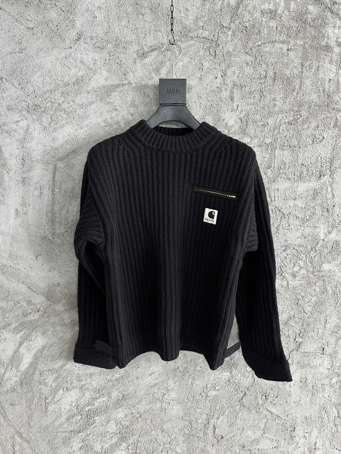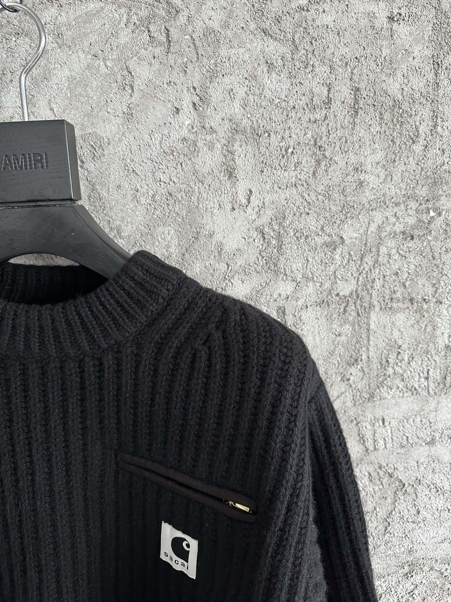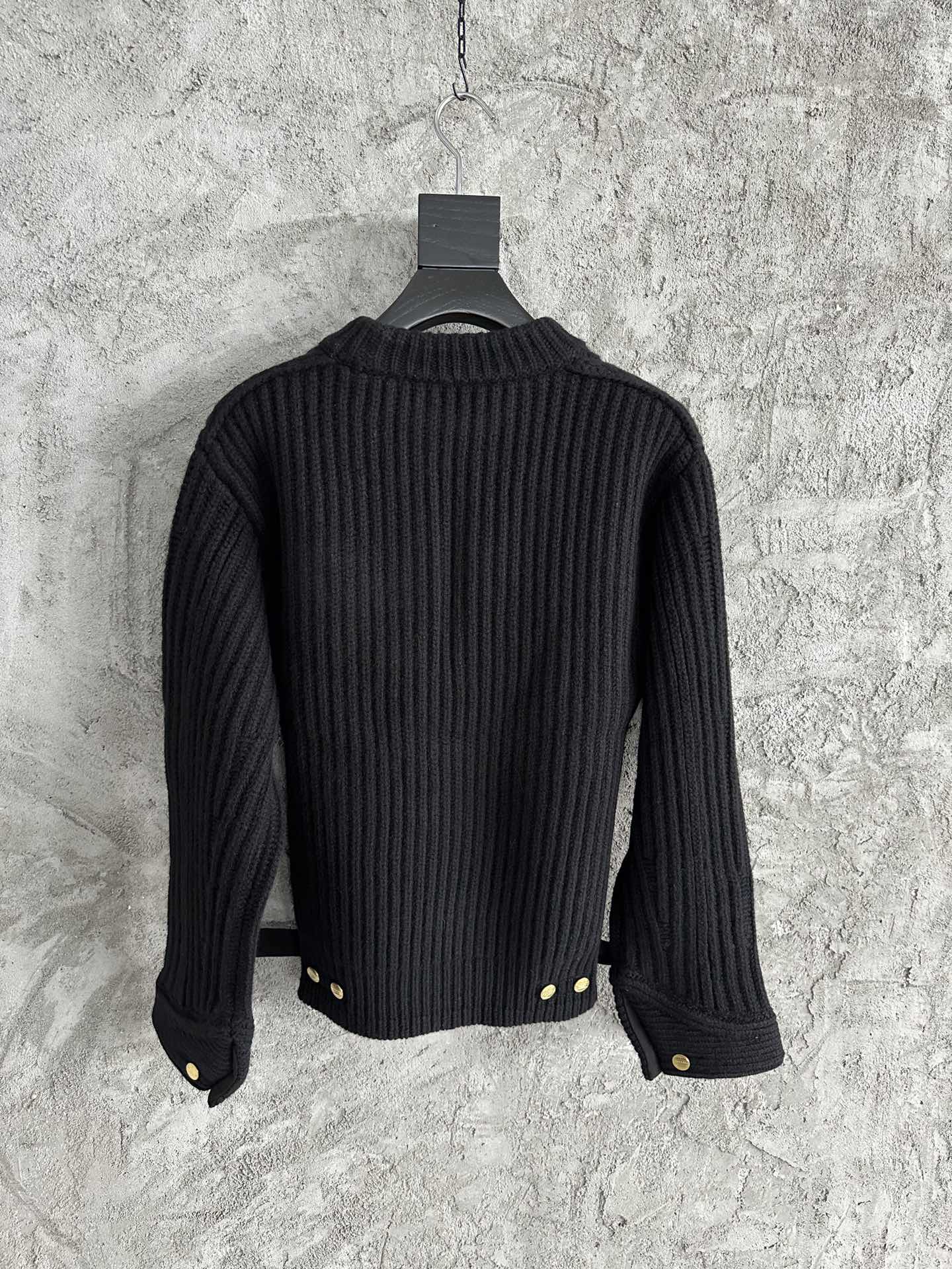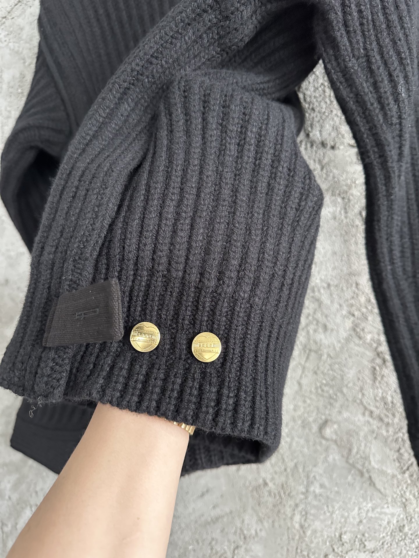 Sacai 2024SS collaboration pure wool knit sweater. Custom 100% pure wool fabric with imported machine-knitted thicker knit. Molded metal buttons. Excellent warmth.